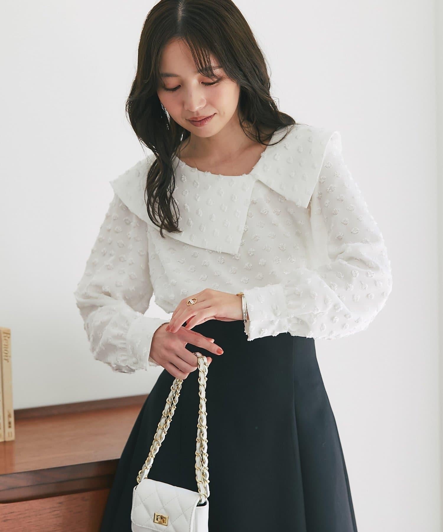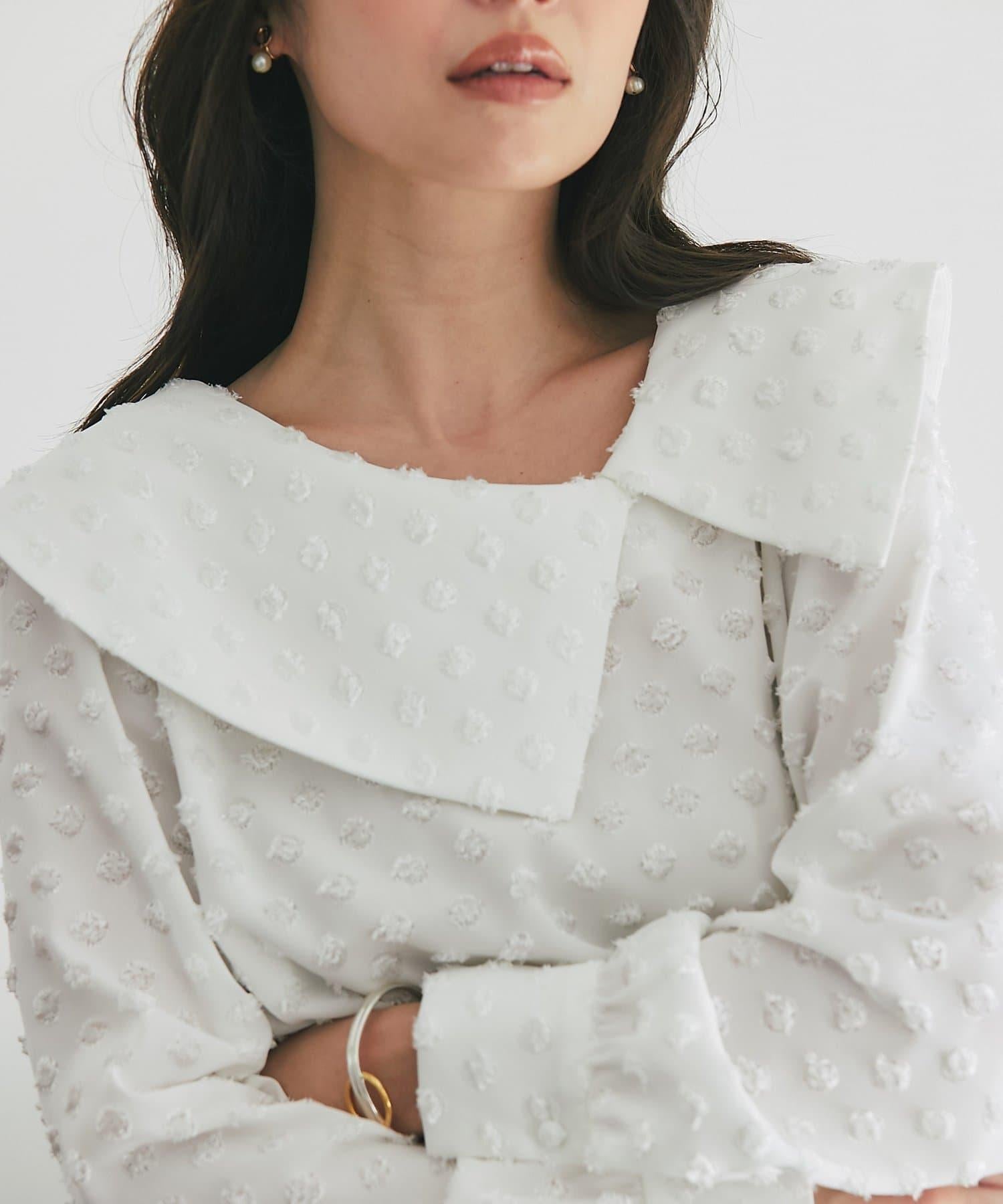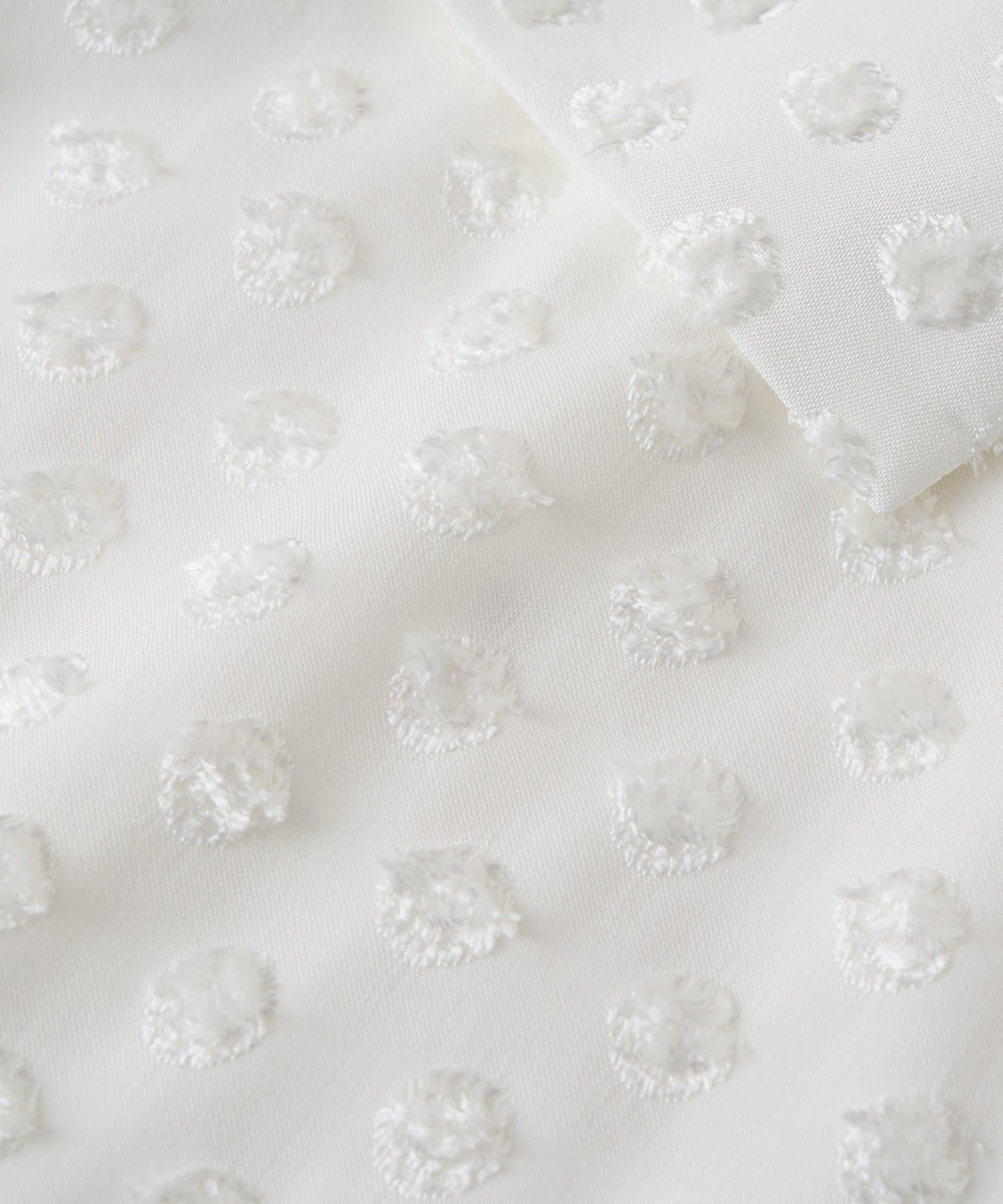 低調而不失時尚感的圓點提花面料和經典的衣領設計營造出精緻的氛圍。