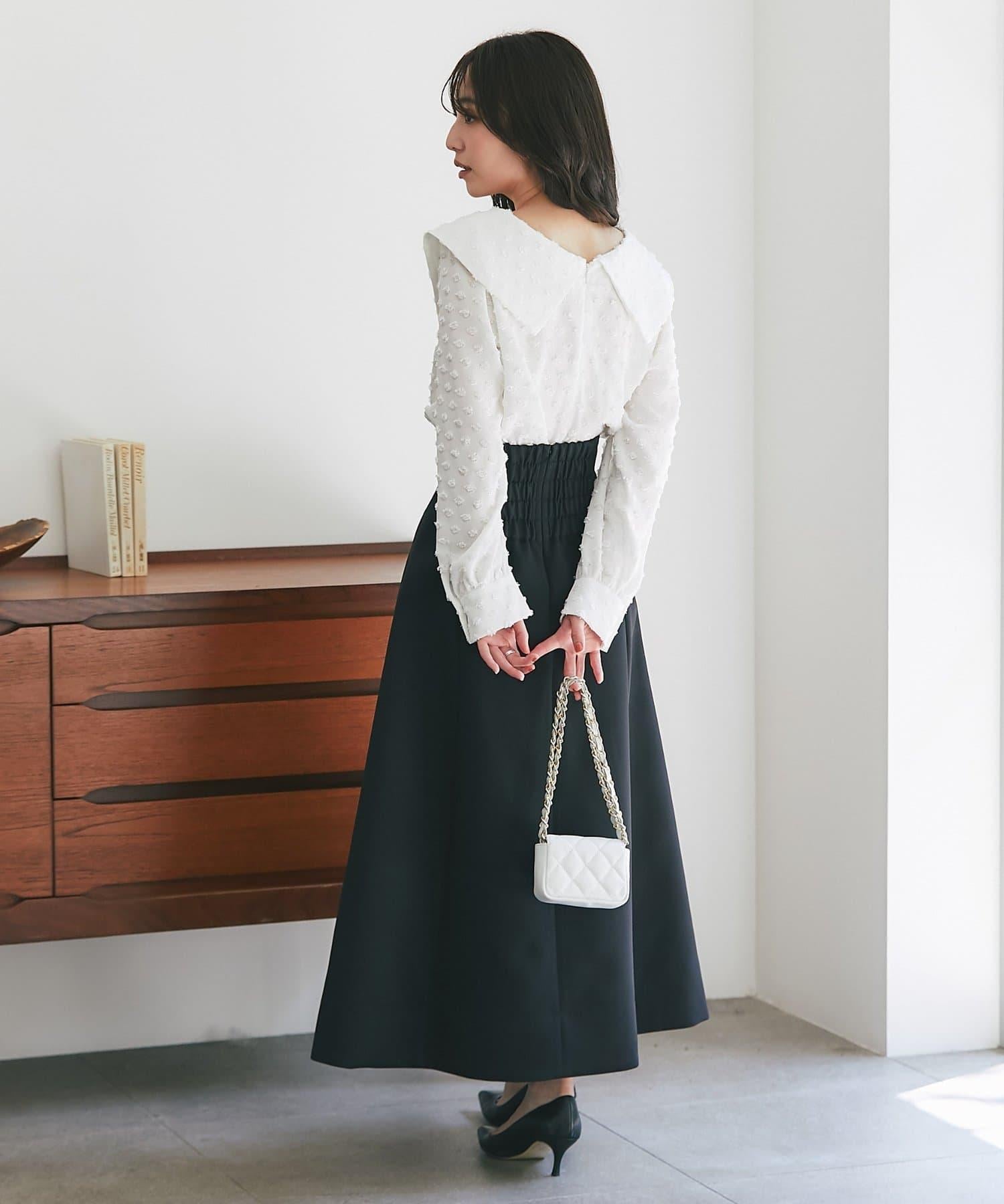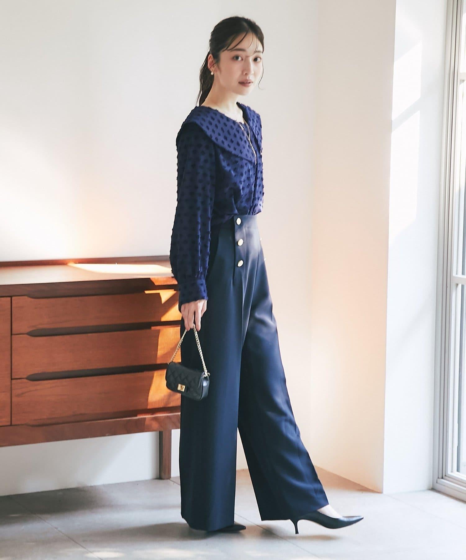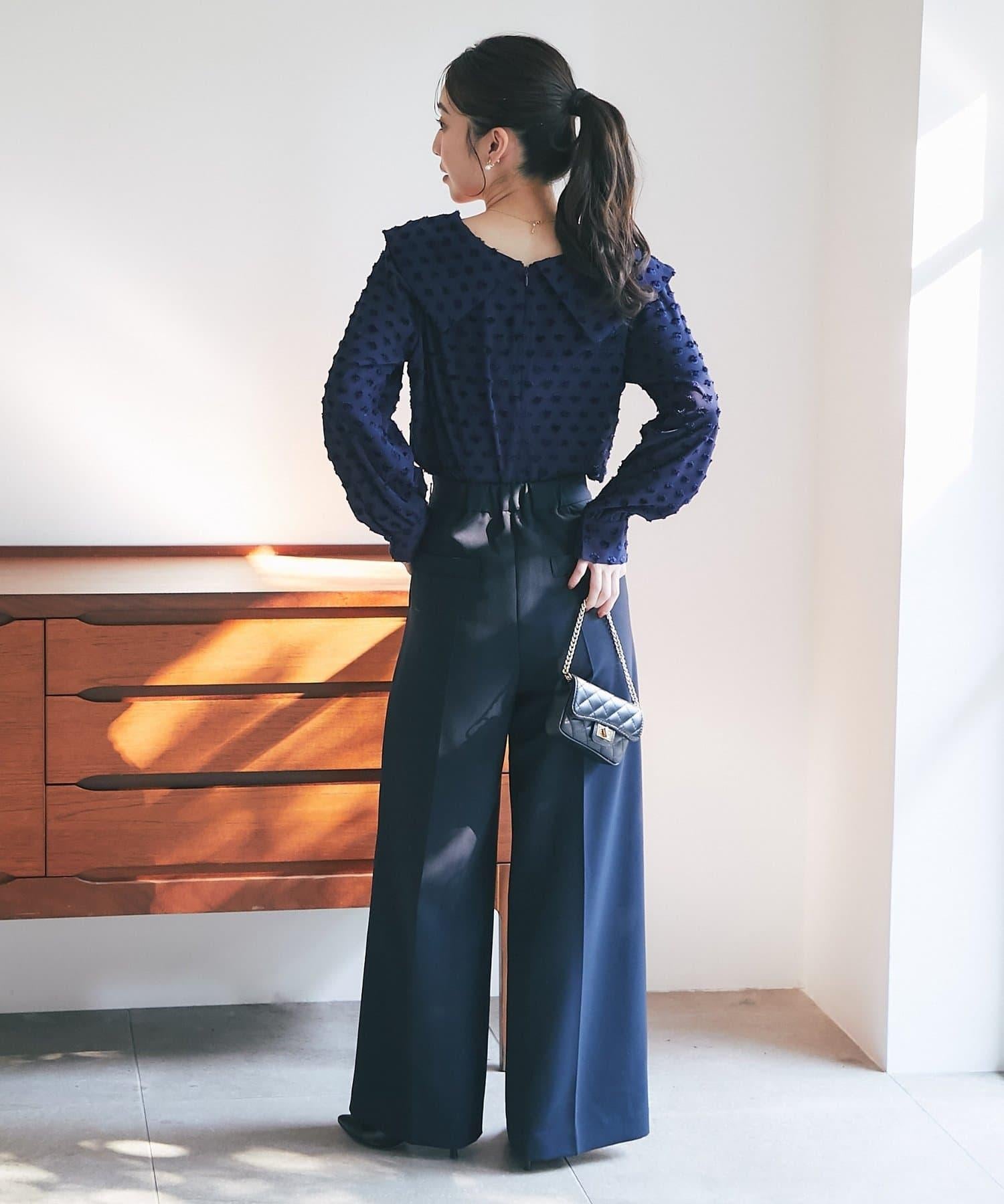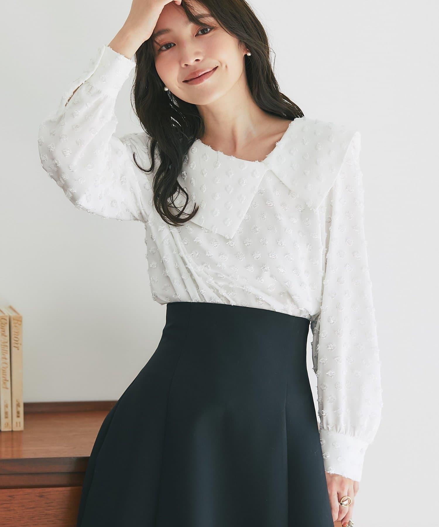 低調而不失時尚感的圓點提花面料和經典的衣領設計營造出精緻的氛圍。
