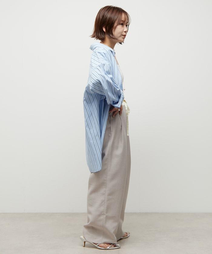 腰部採用了不同的材質,切換到具有微妙光澤的緞面材質規格,因此,亞麻材質的款式既能體現端莊感,又不會過於隨意。