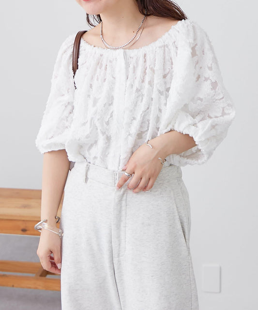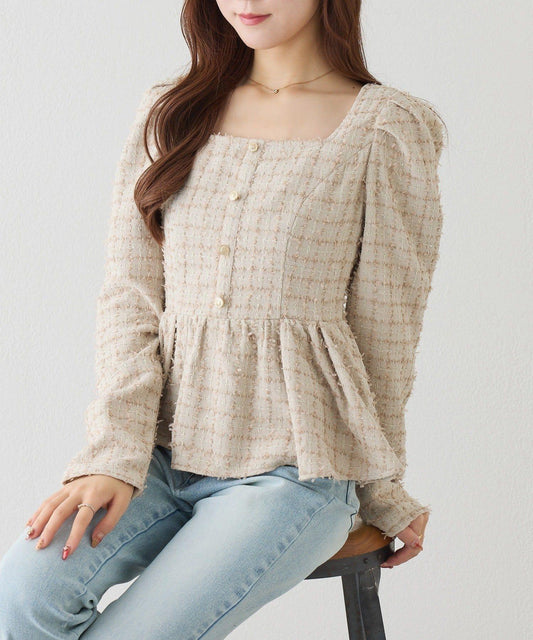亮片皺感 袖抽褶 透紗襯衫