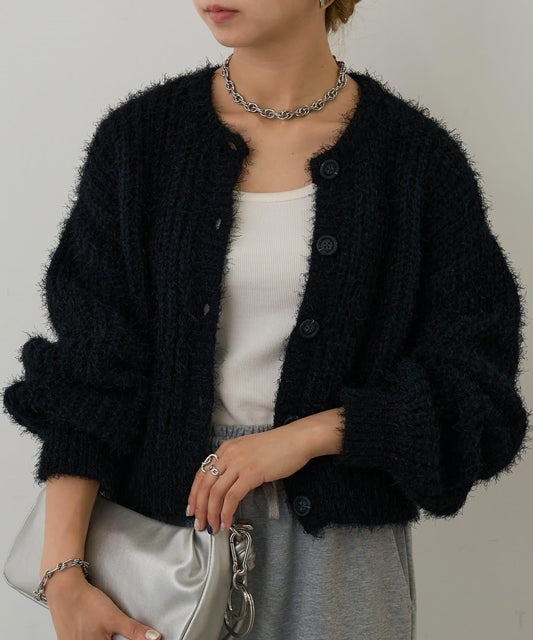 薄紗針織開衫,輕微的薄紗閃爍著優雅的光澤。
