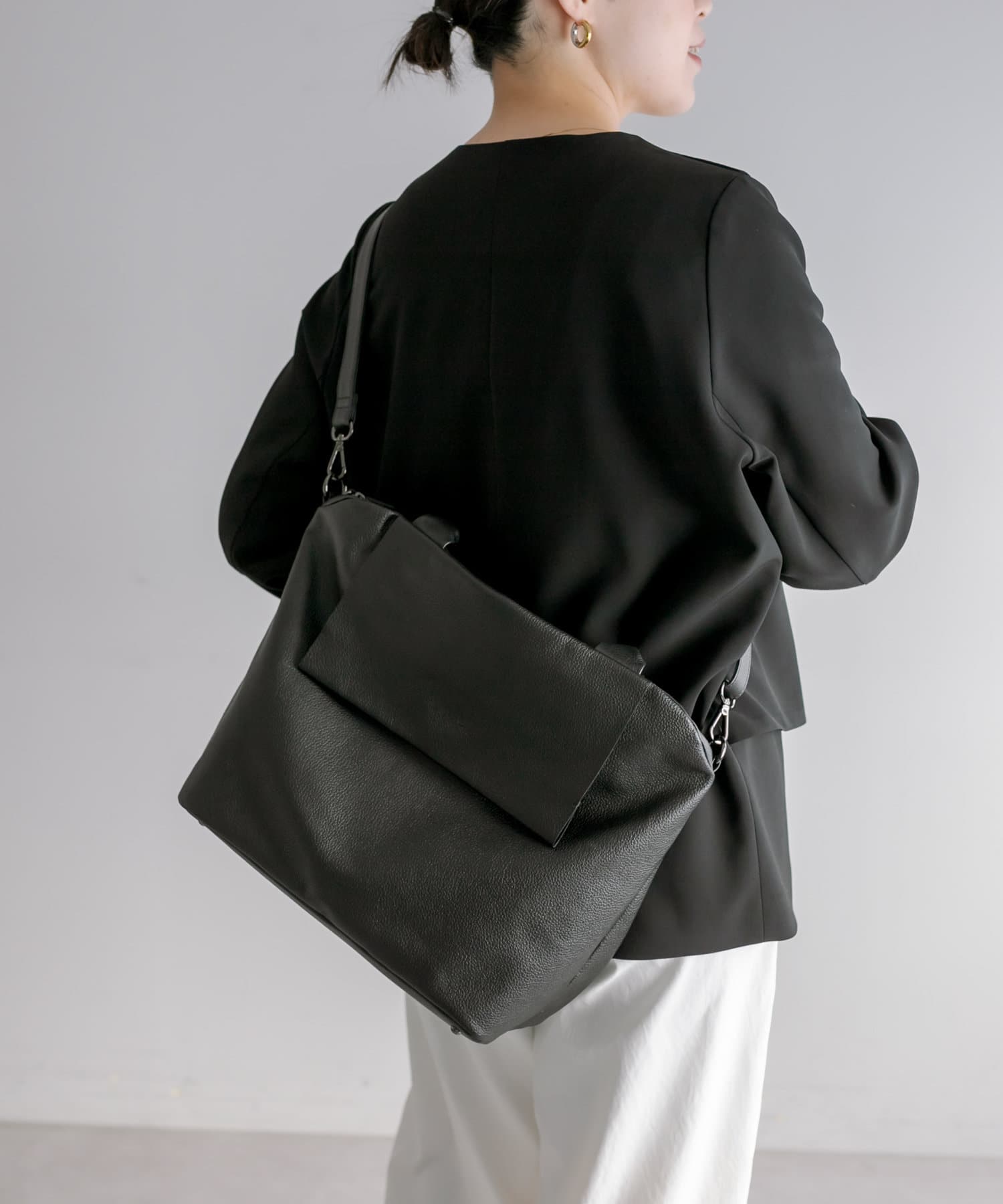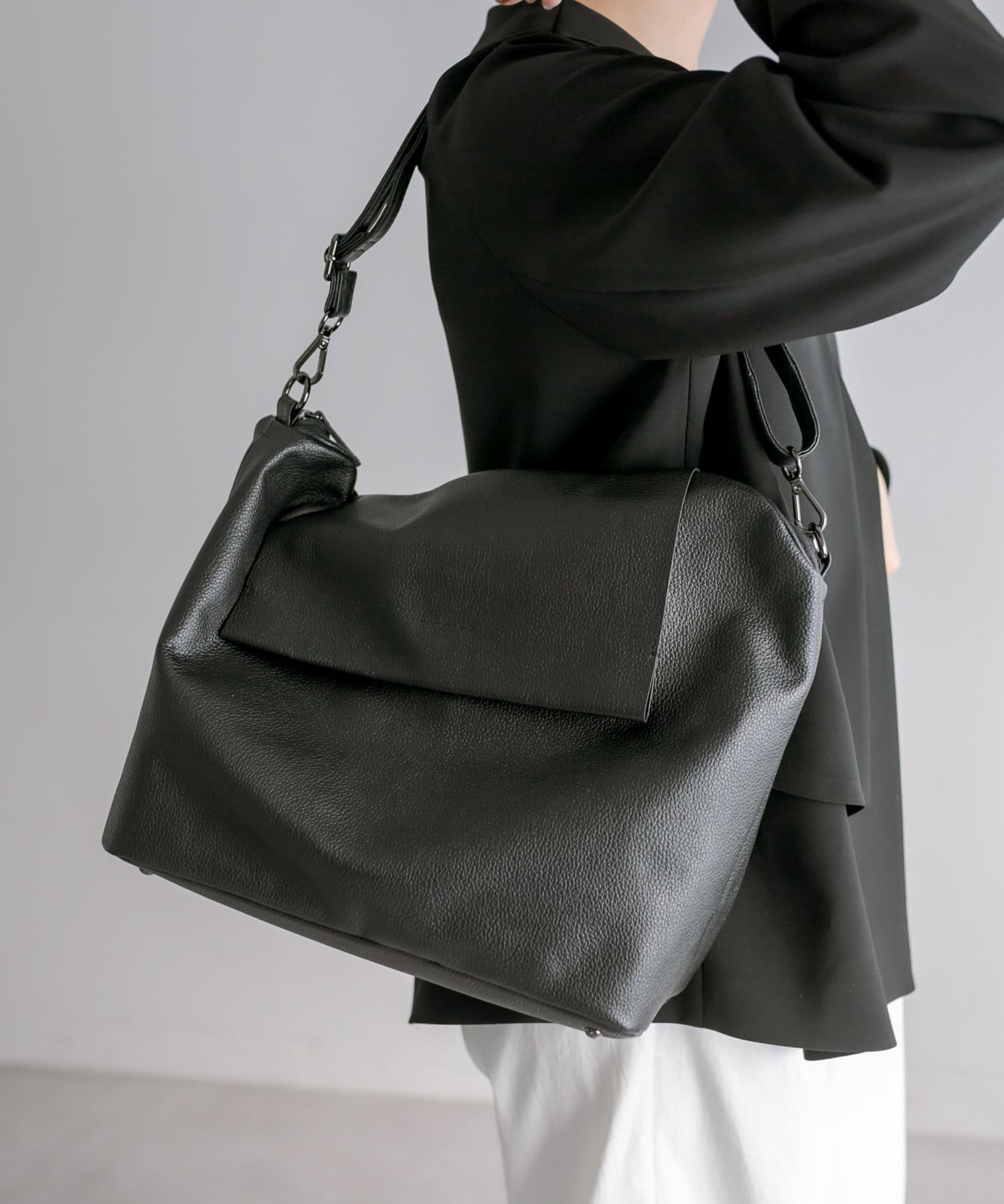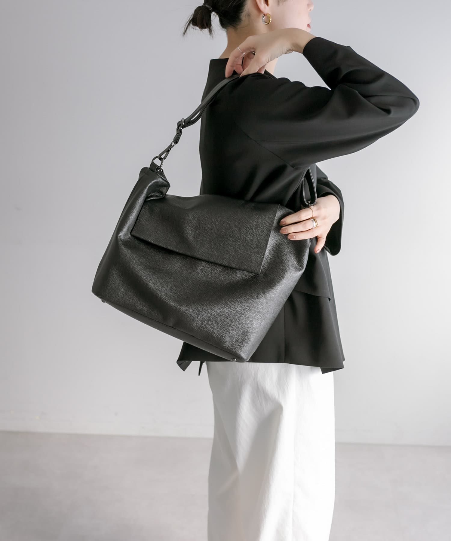《人氣設計進化/牛皮/適用A4尺寸》皮革翻蓋2WAY包L尺寸