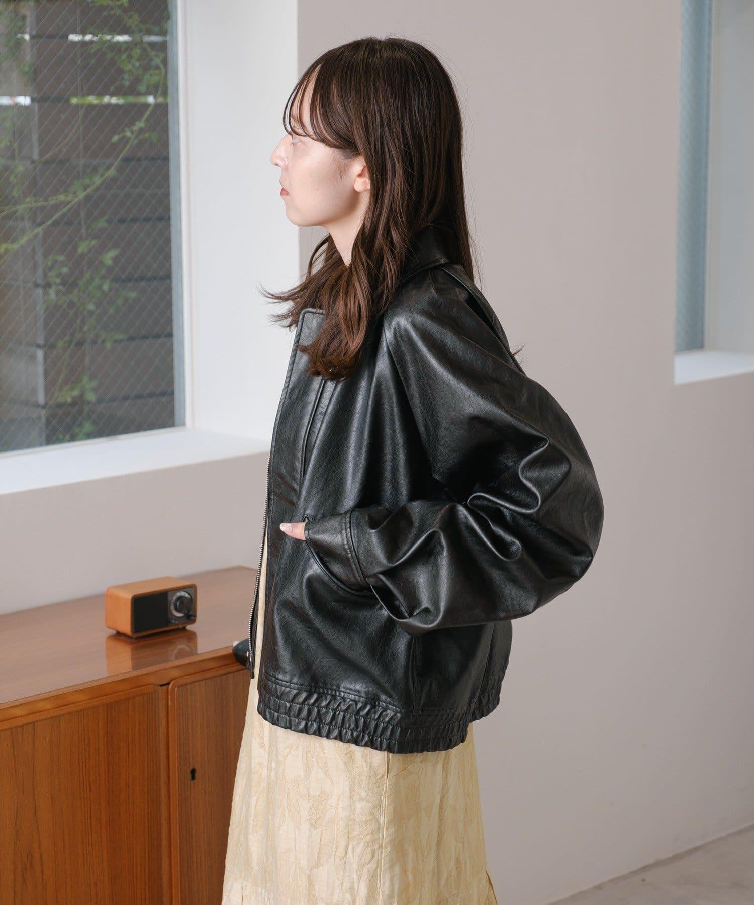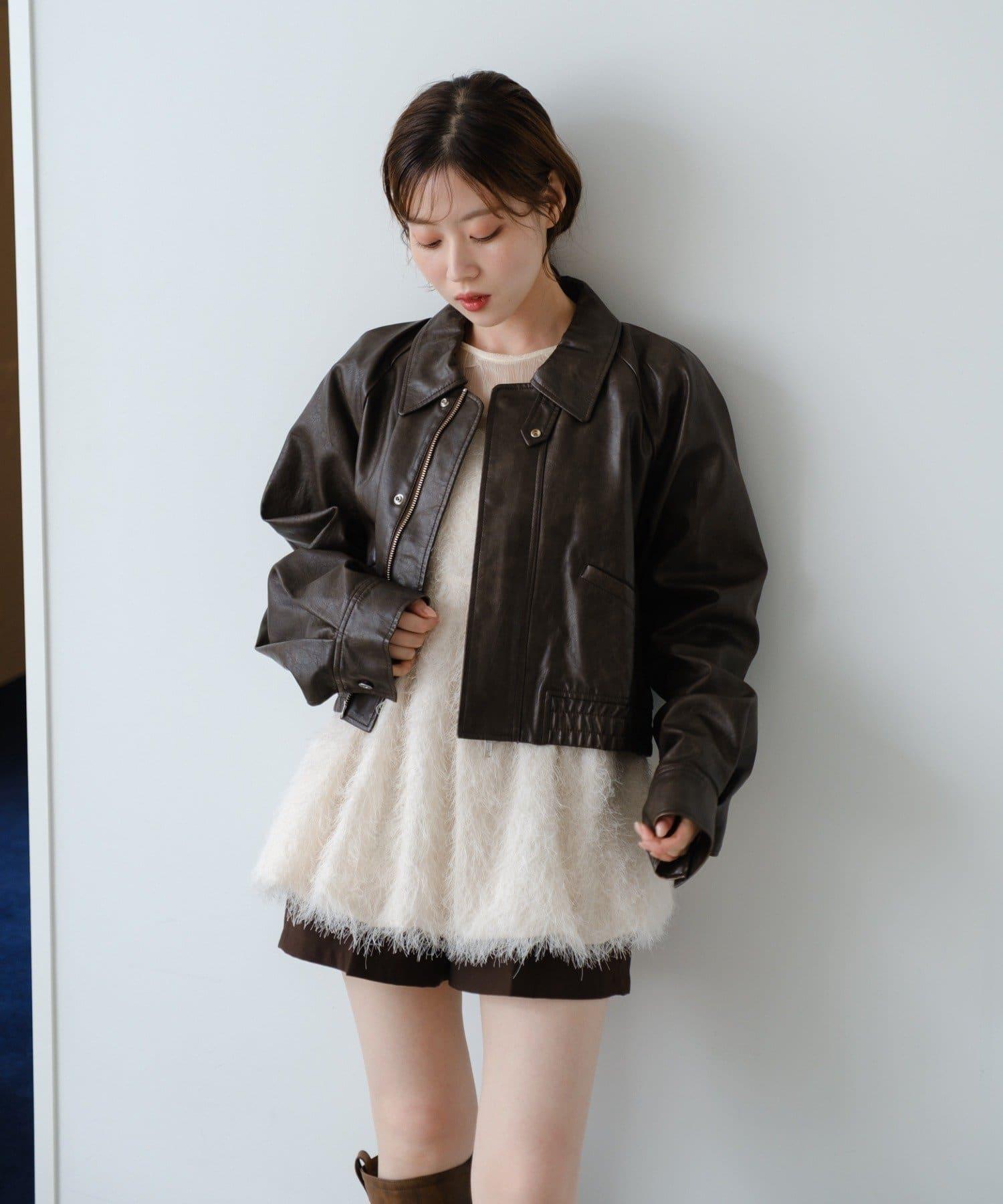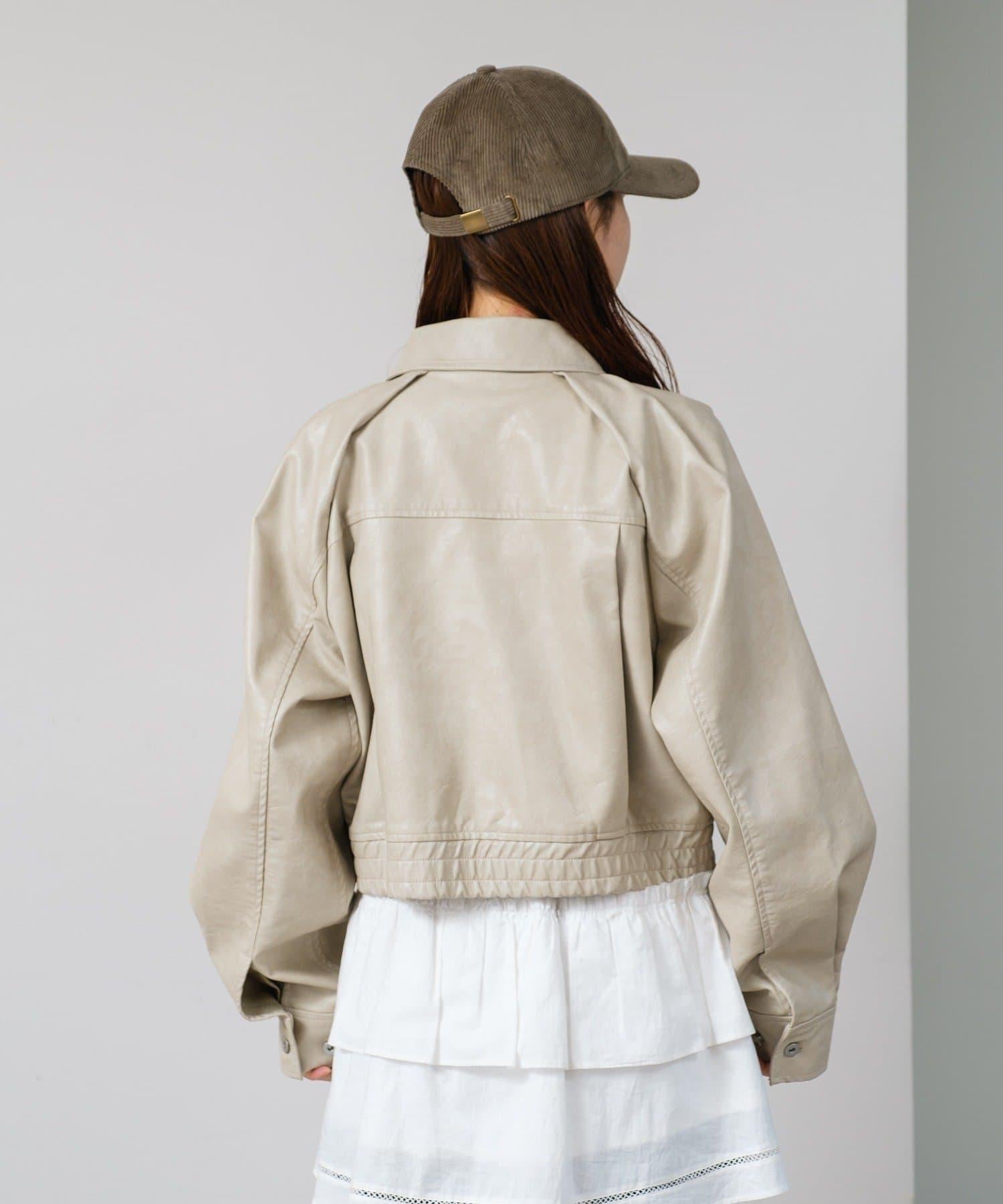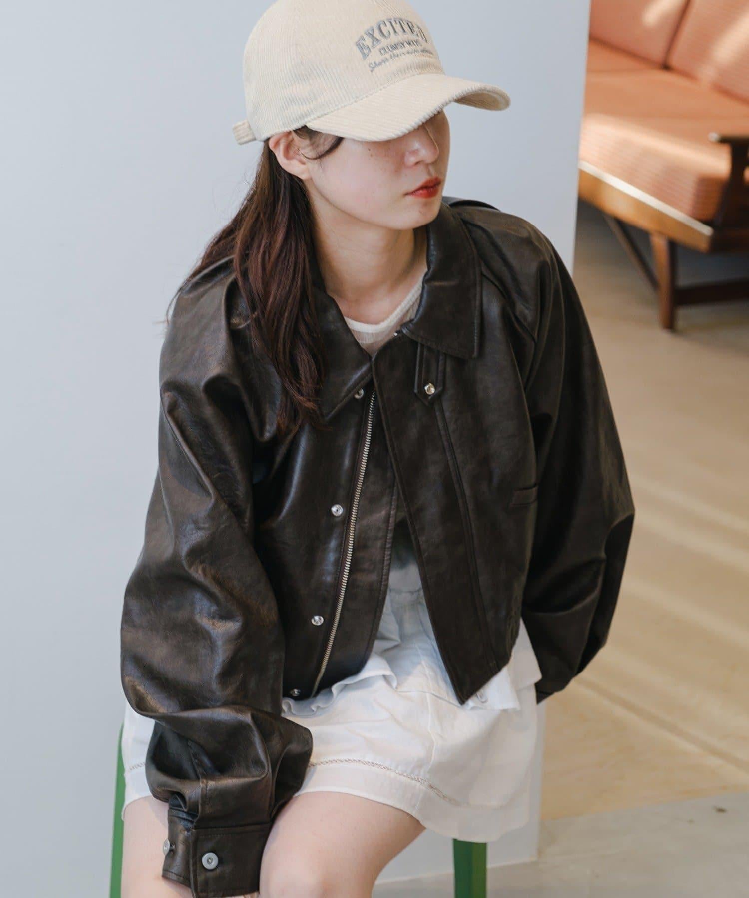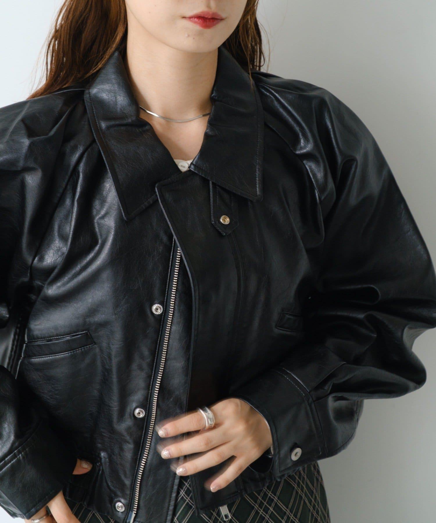 一款女性化皮夾克,尺寸小巧,袖子設計豐滿。