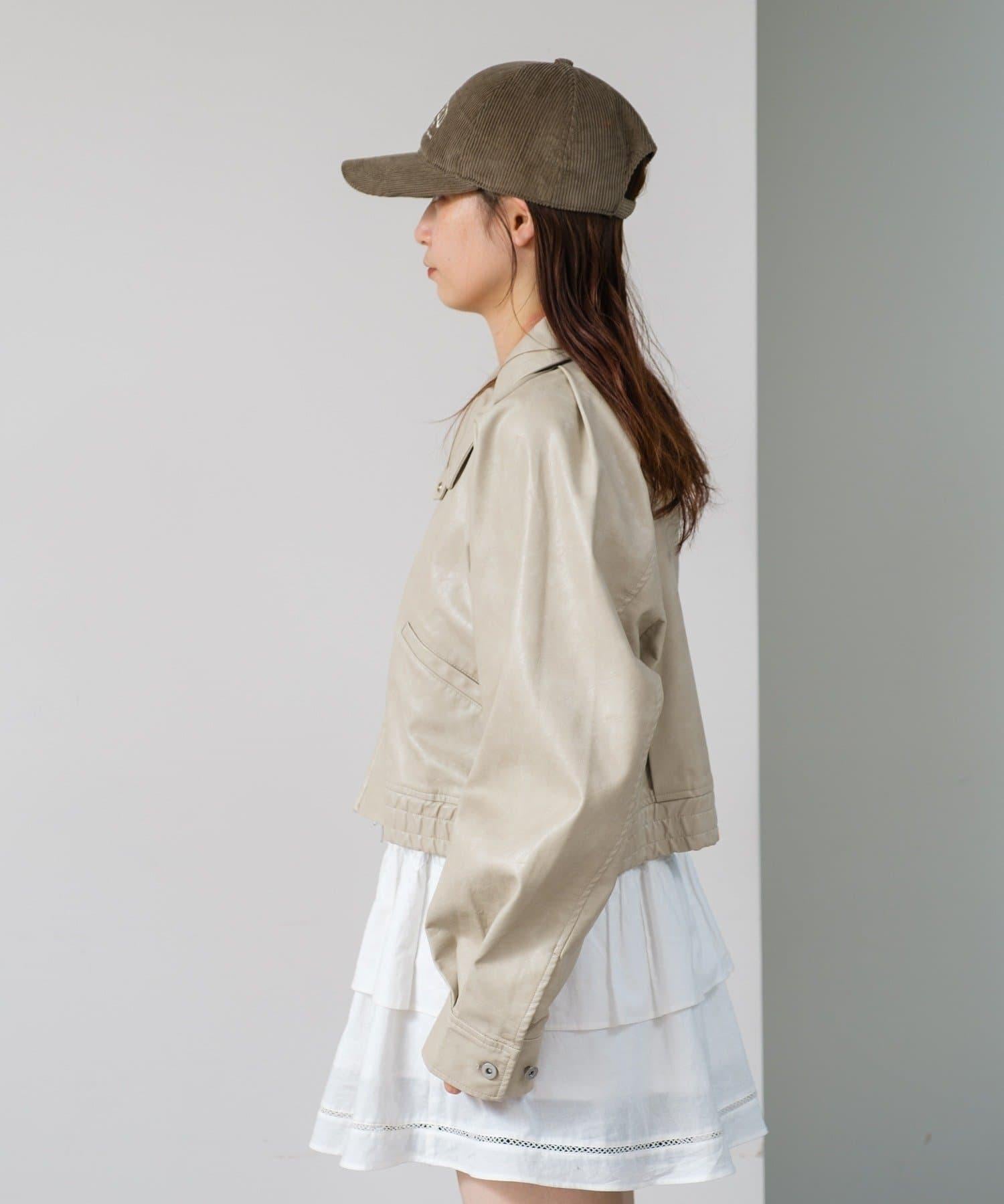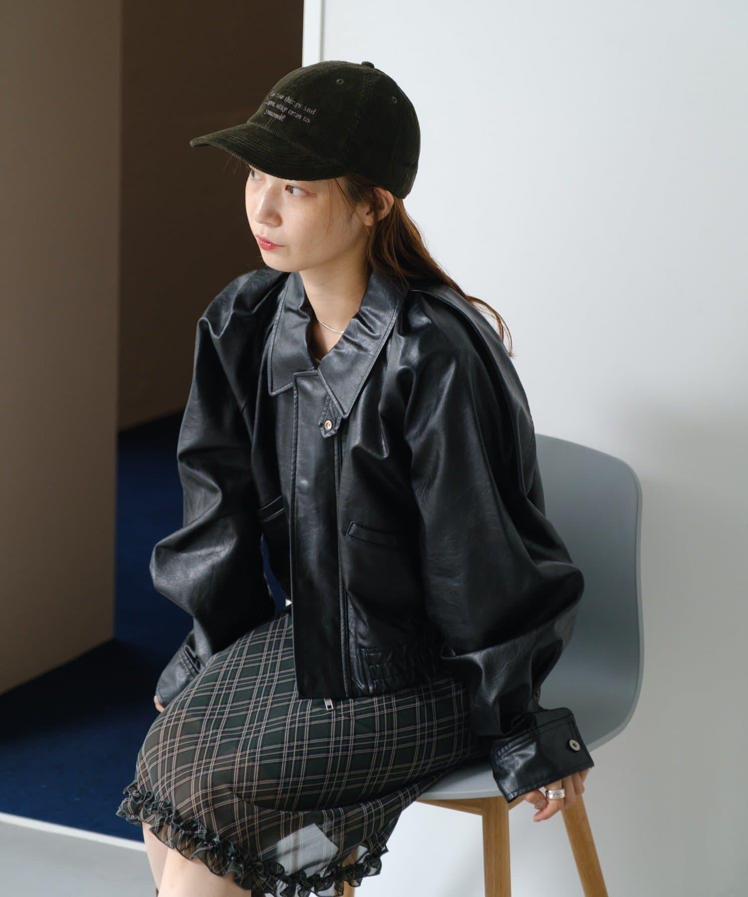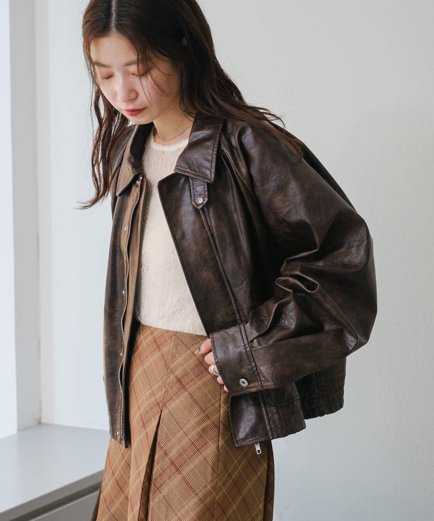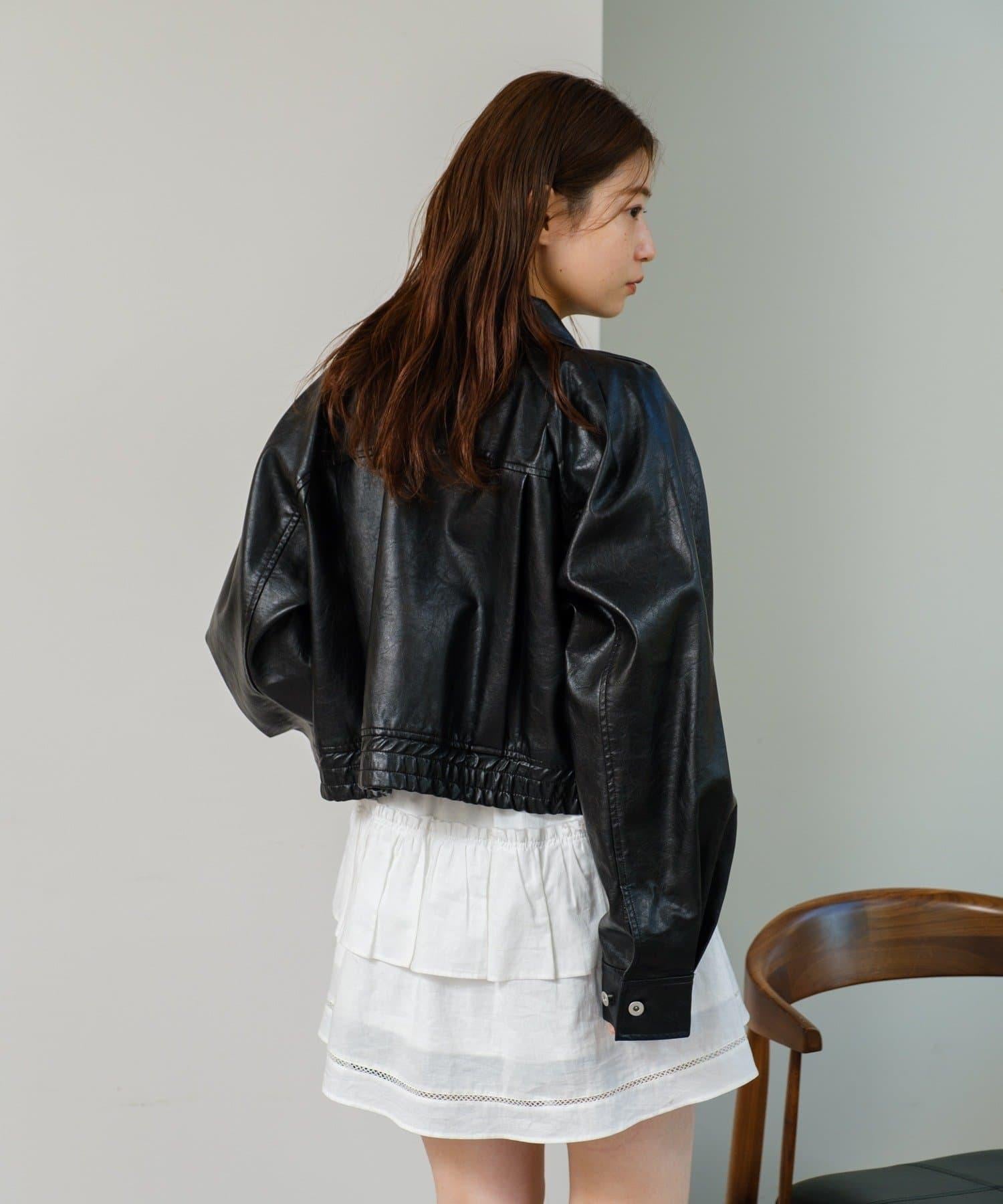 一款女性化皮夾克,尺寸小巧,袖子設計豐滿。