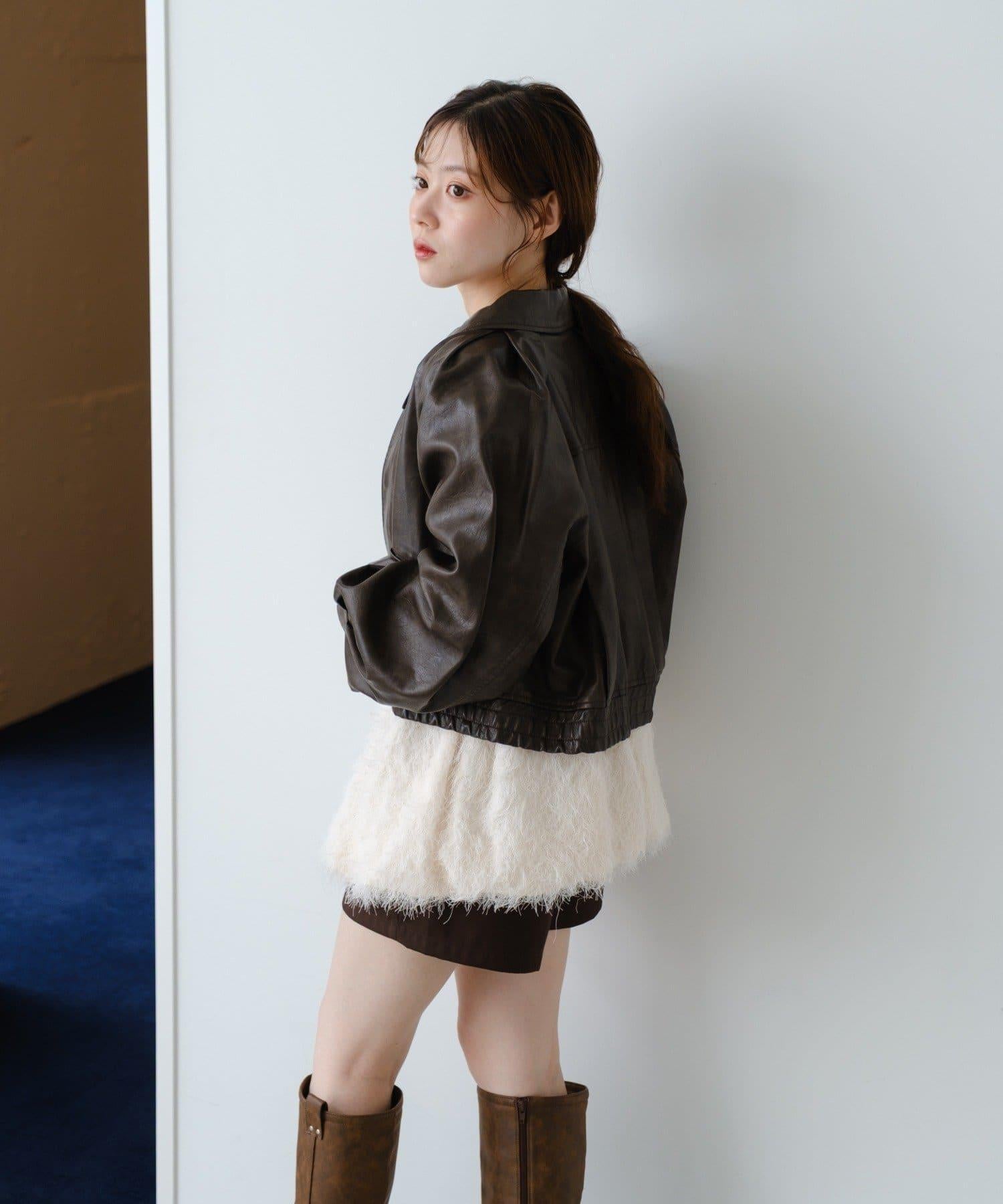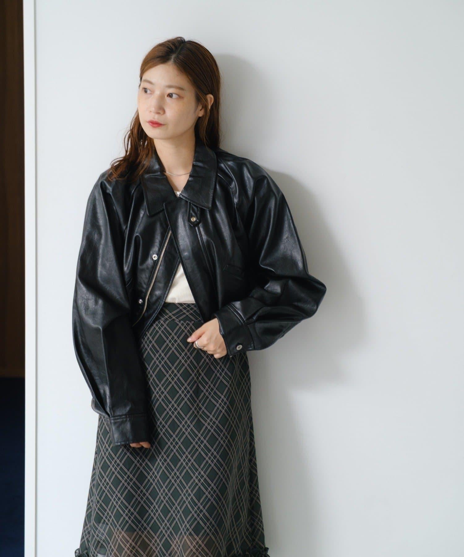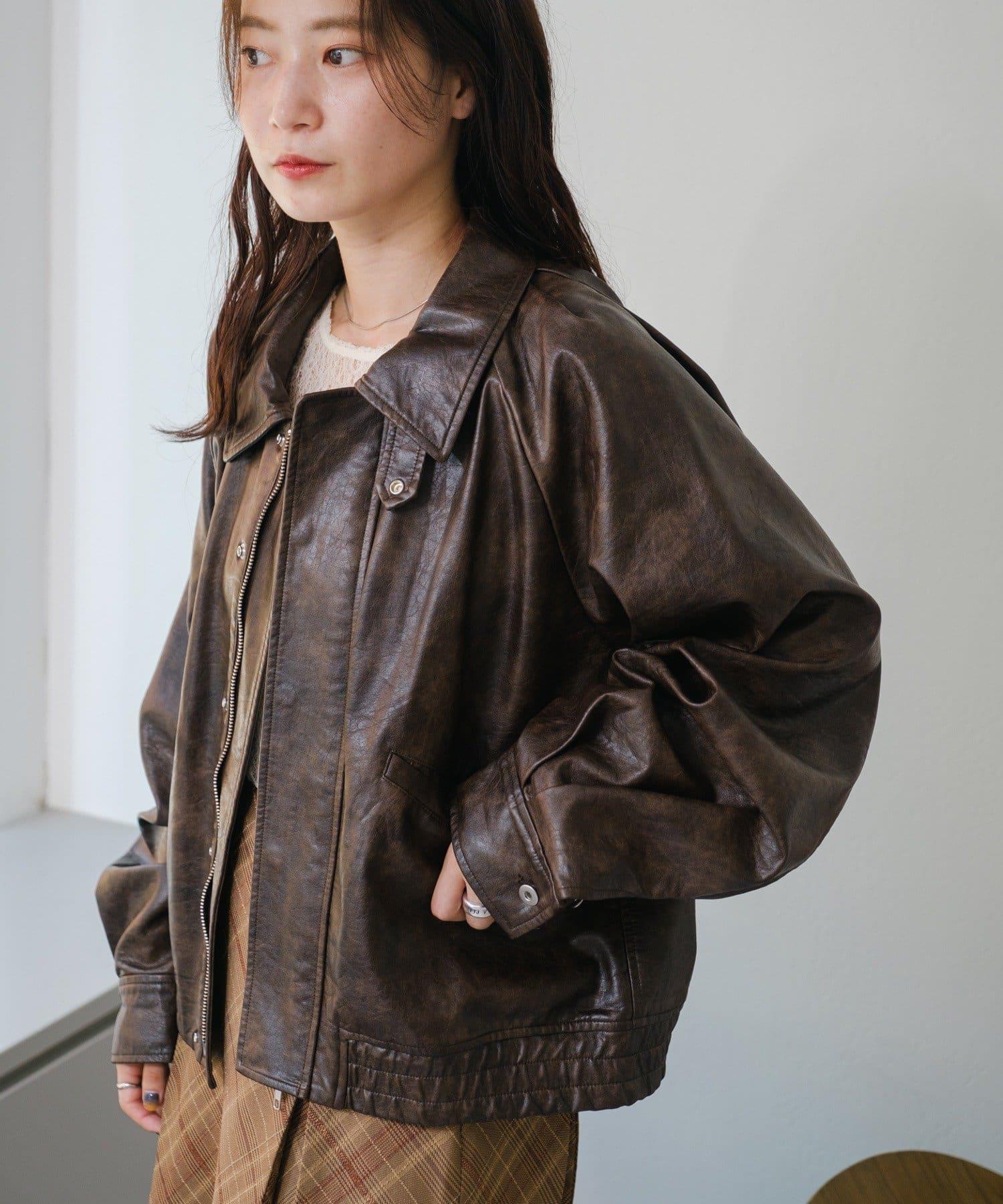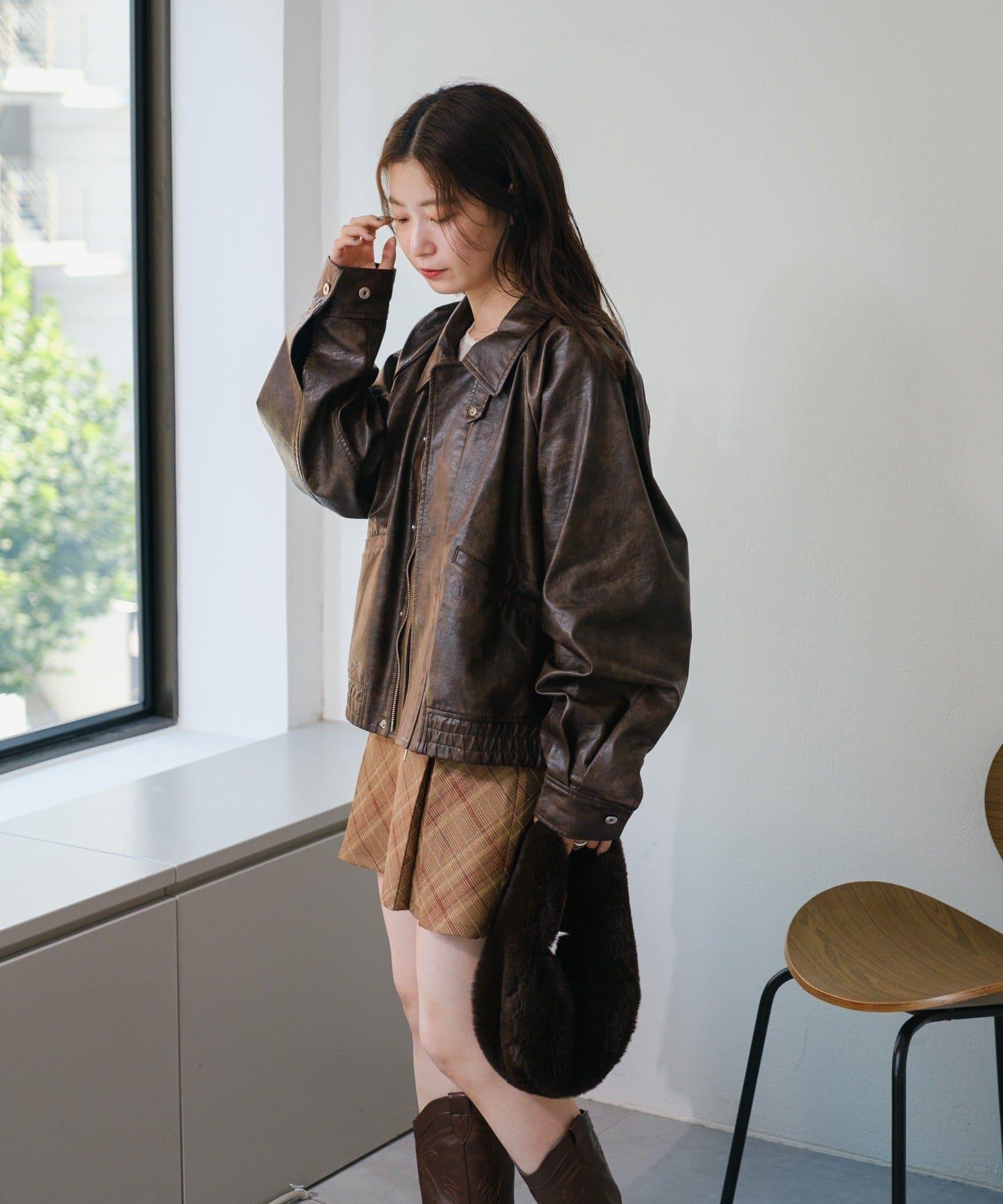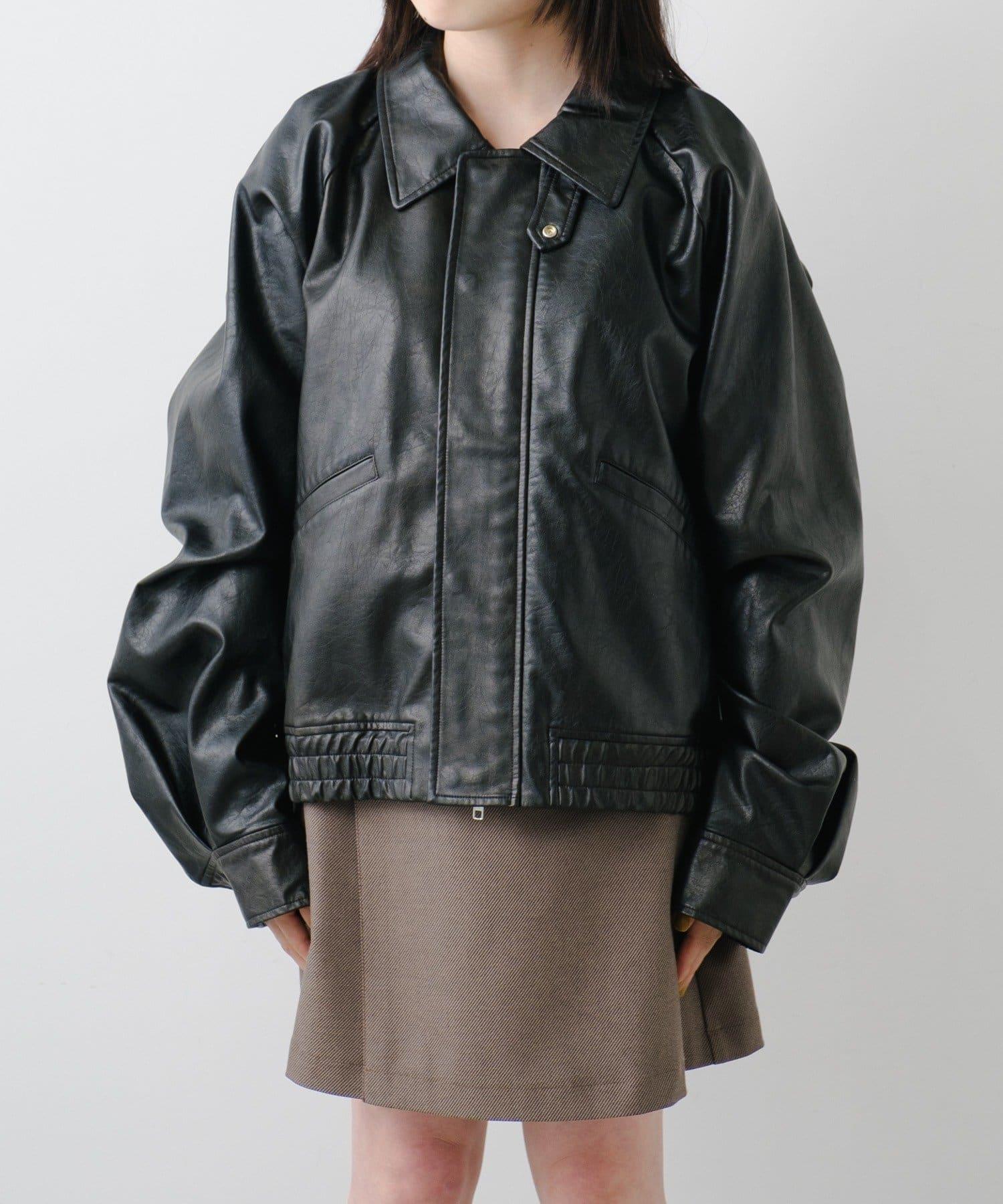 一款女性化皮夾克,尺寸小巧,袖子設計豐滿。