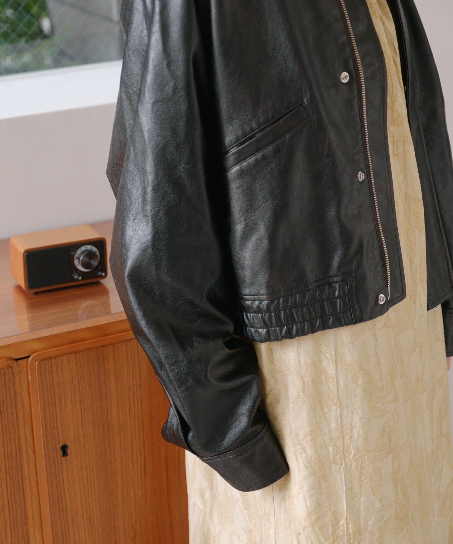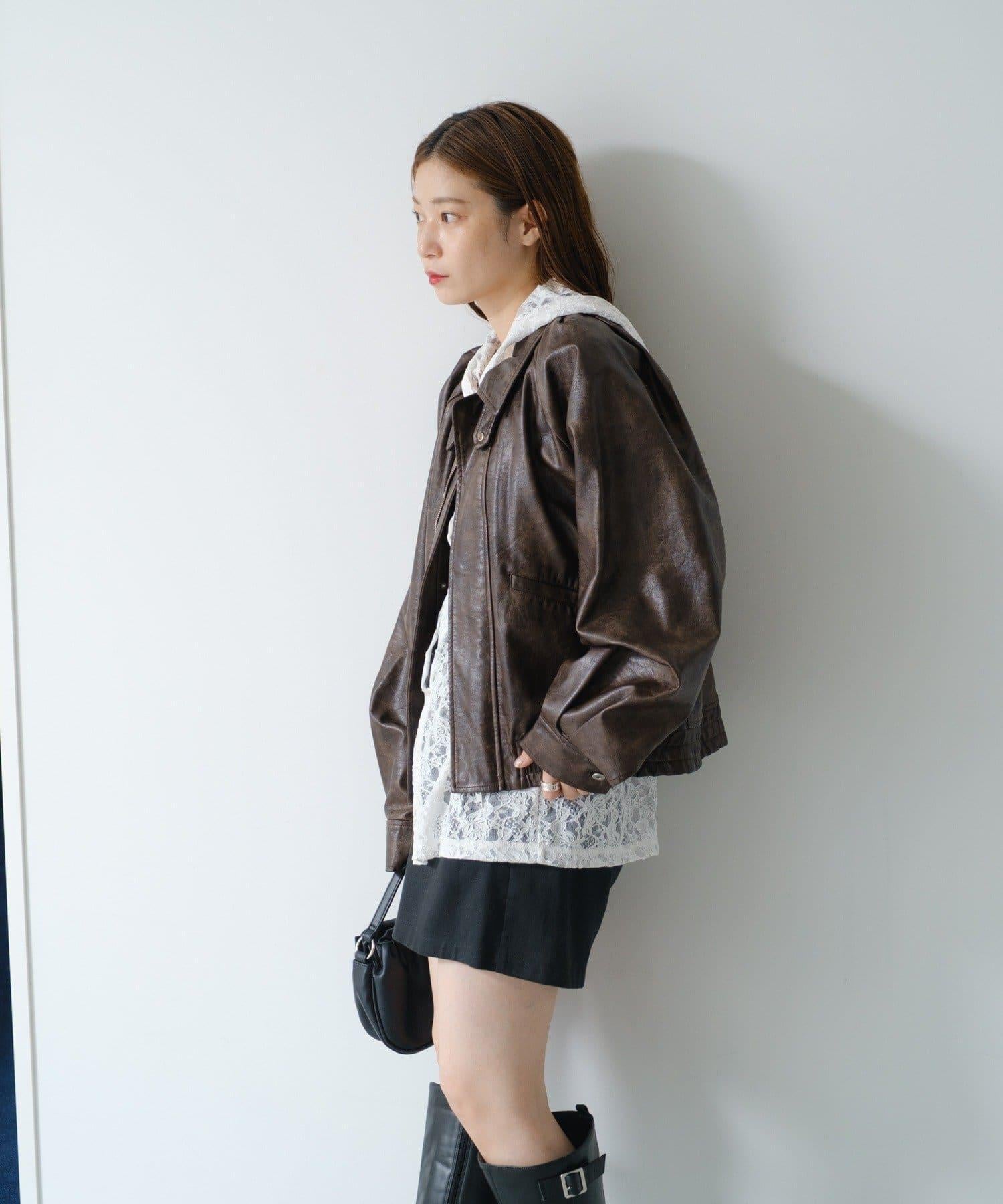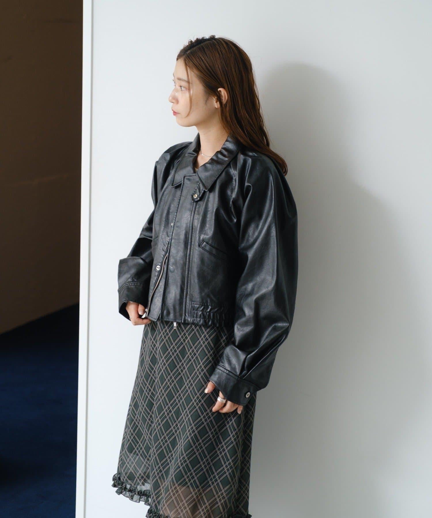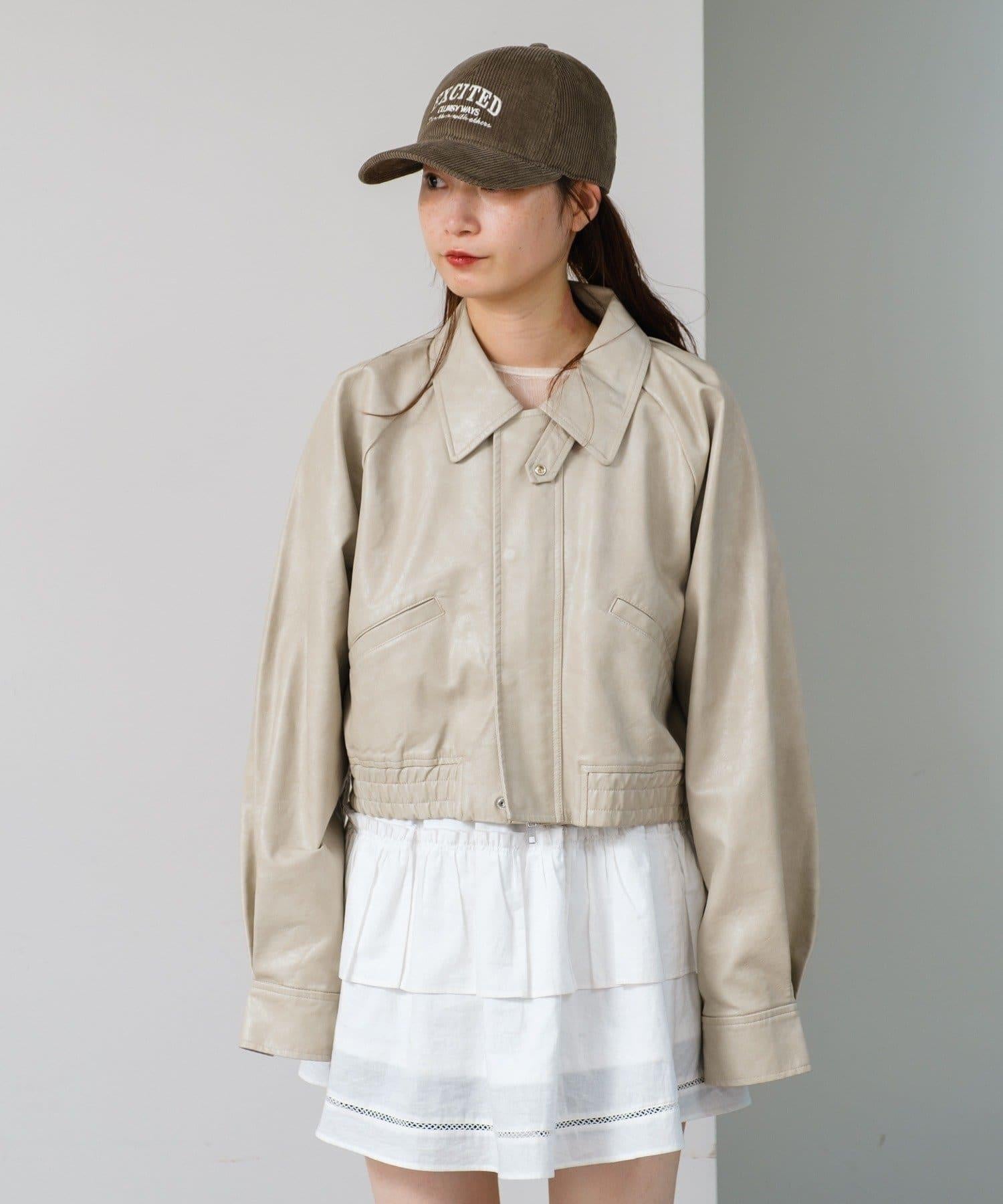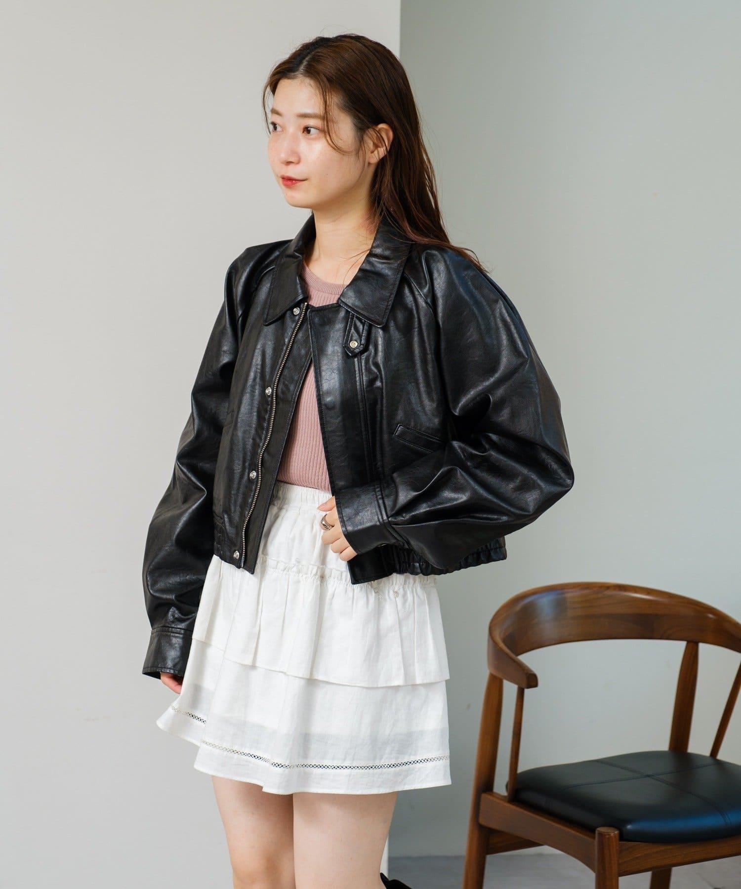 一款女性化皮夾克,尺寸小巧,袖子設計豐滿。