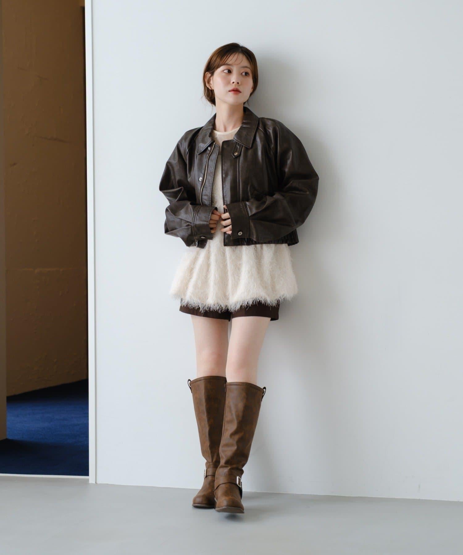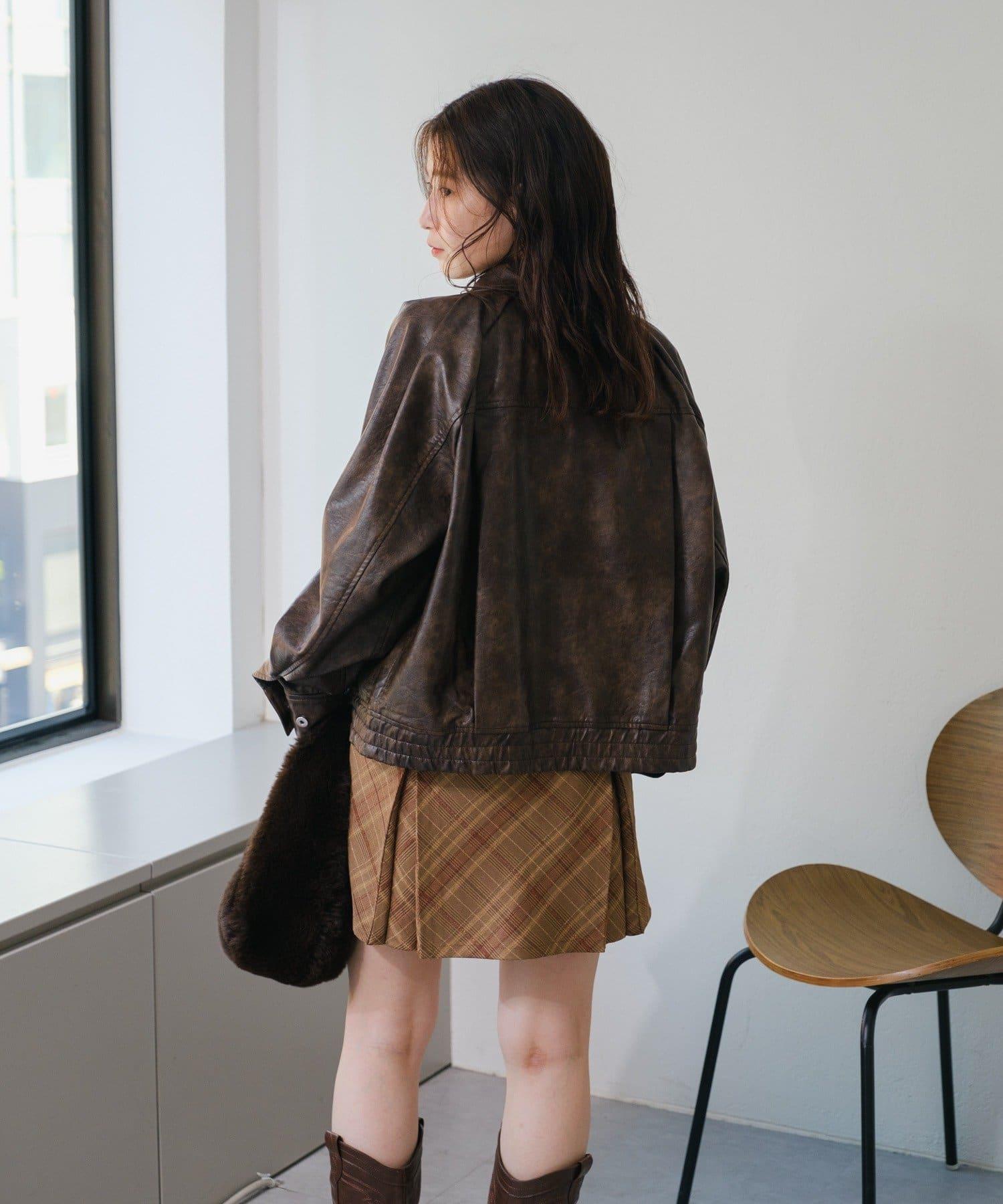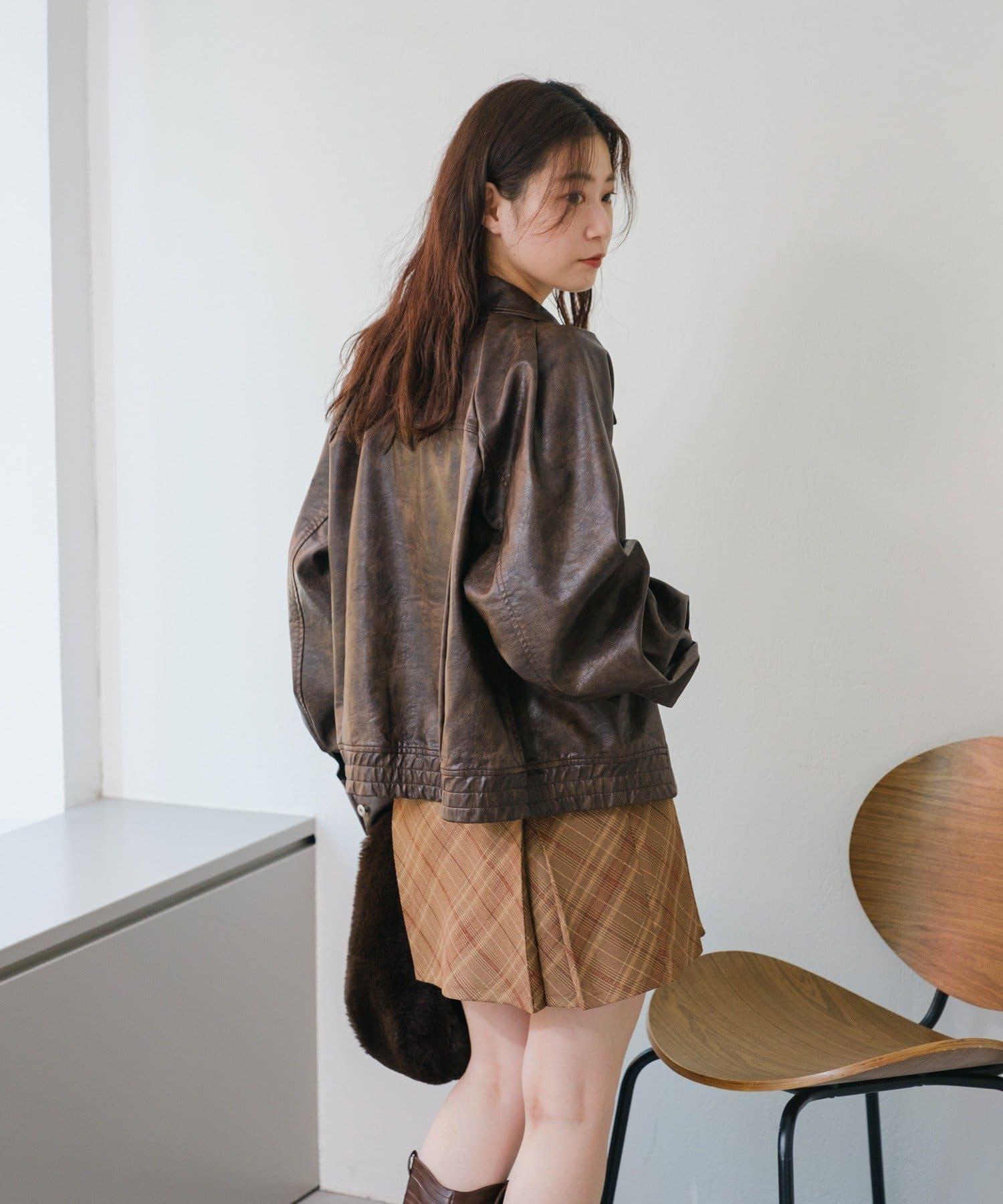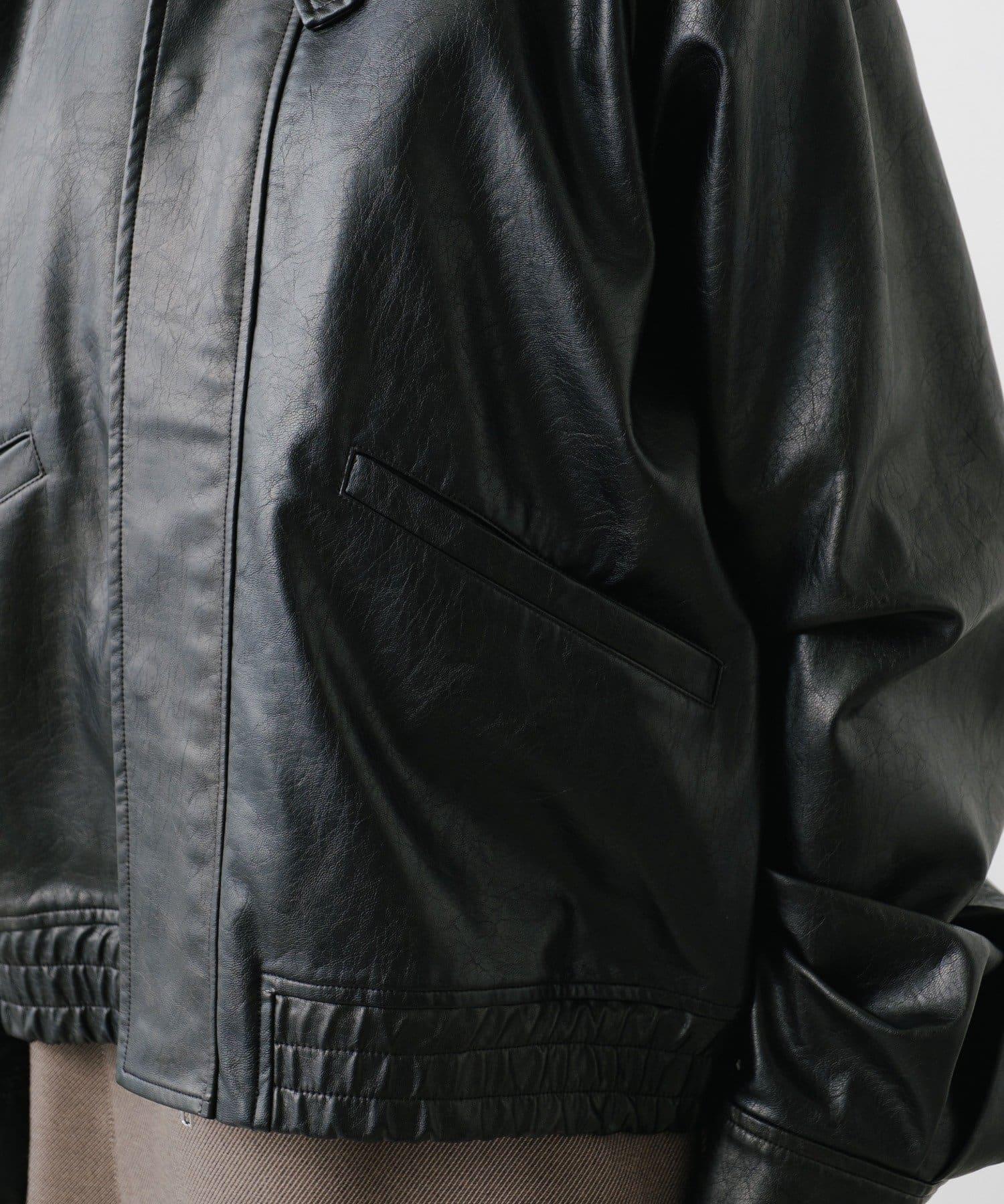 一款女性化皮夾克,尺寸小巧,袖子設計豐滿。