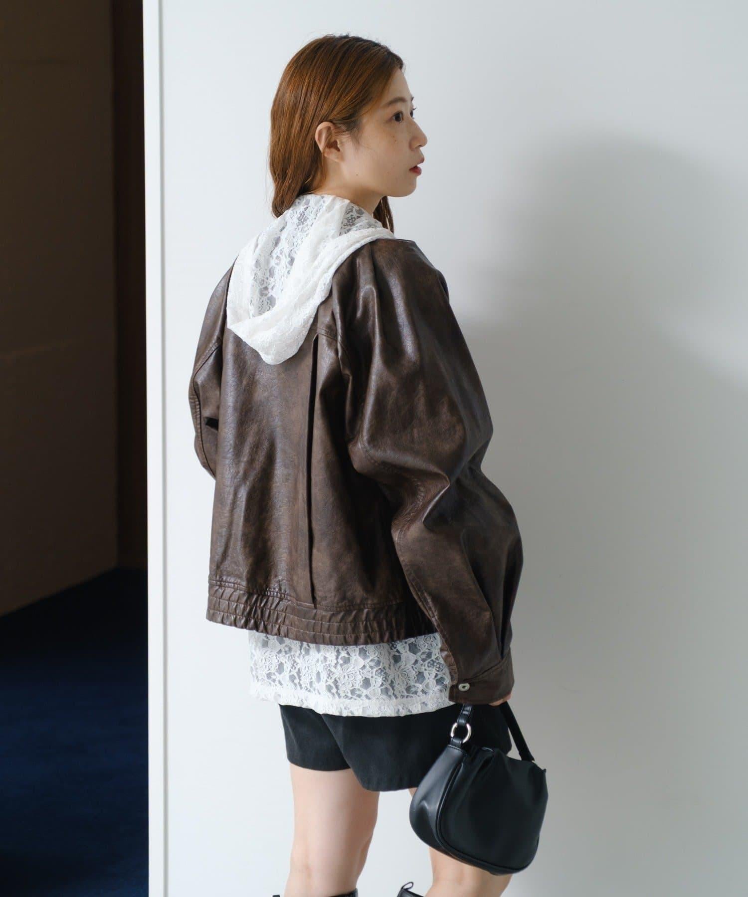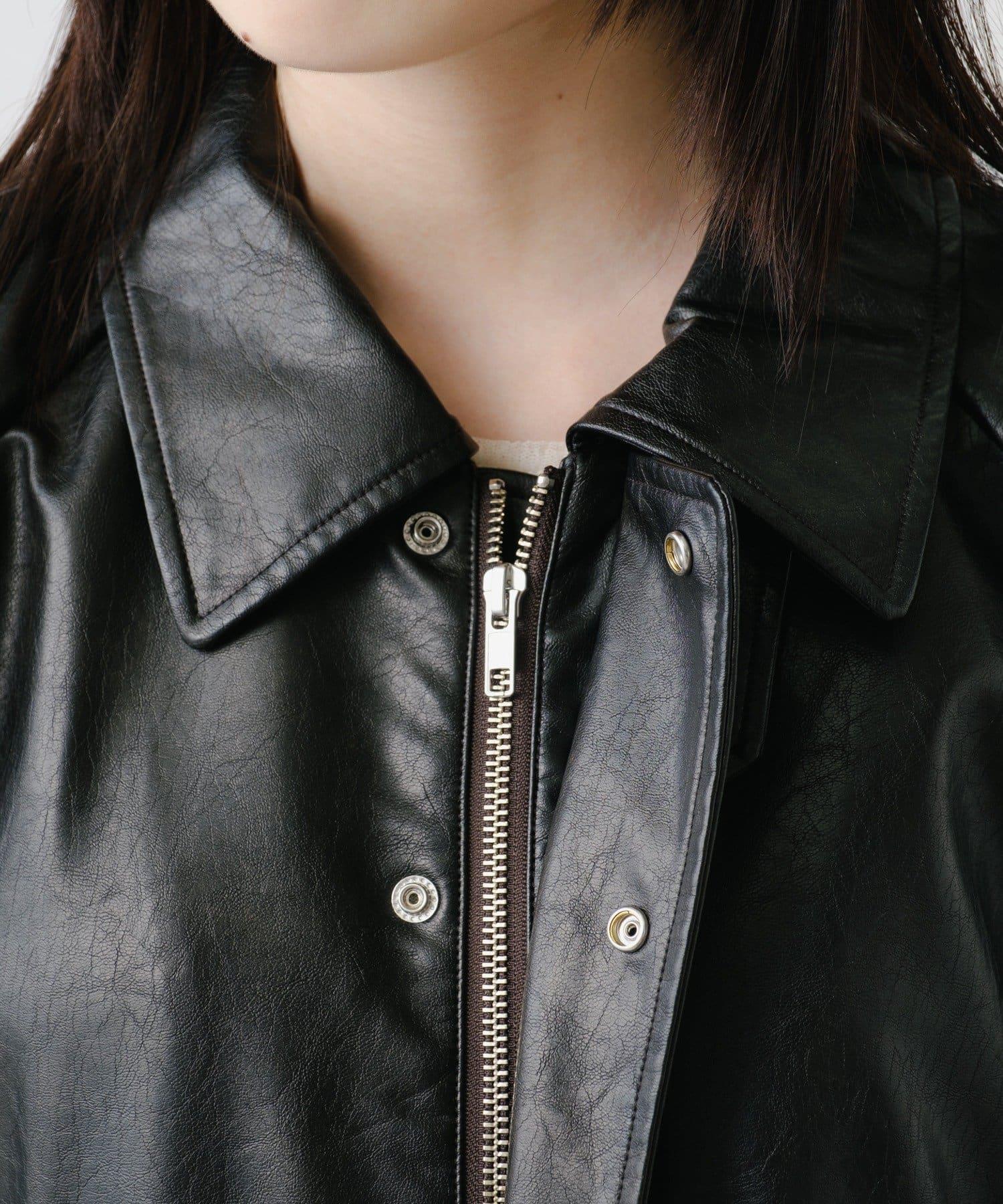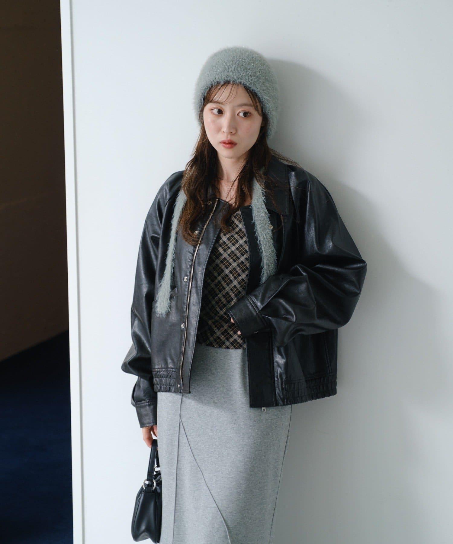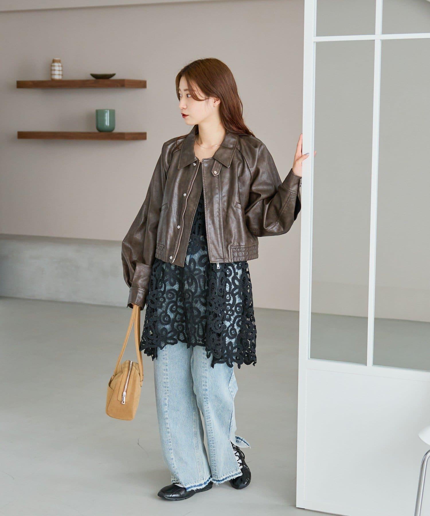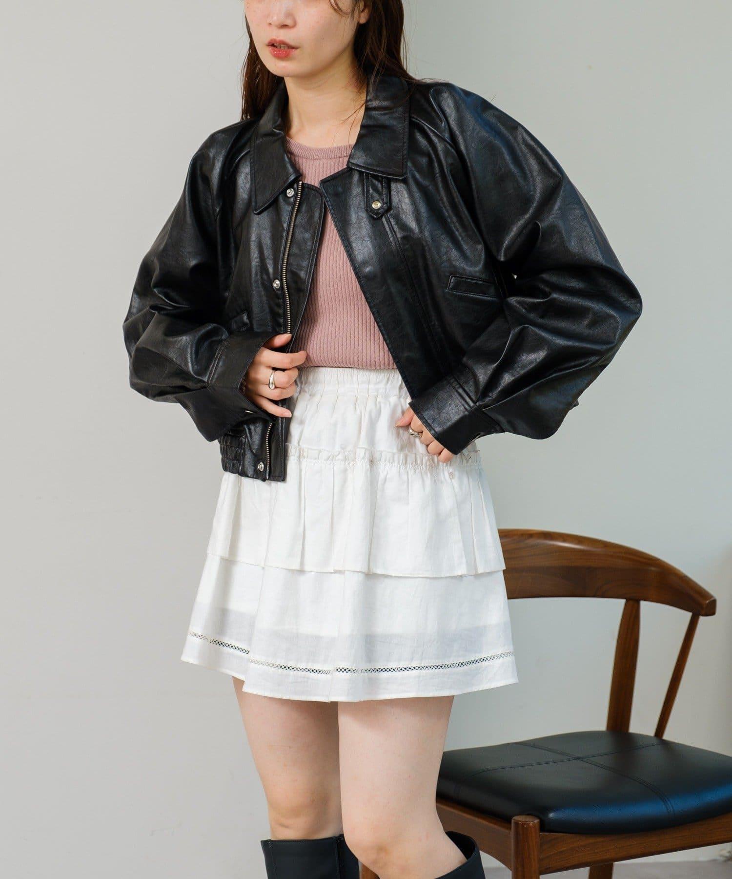 一款女性化皮夾克,尺寸小巧,袖子設計豐滿。