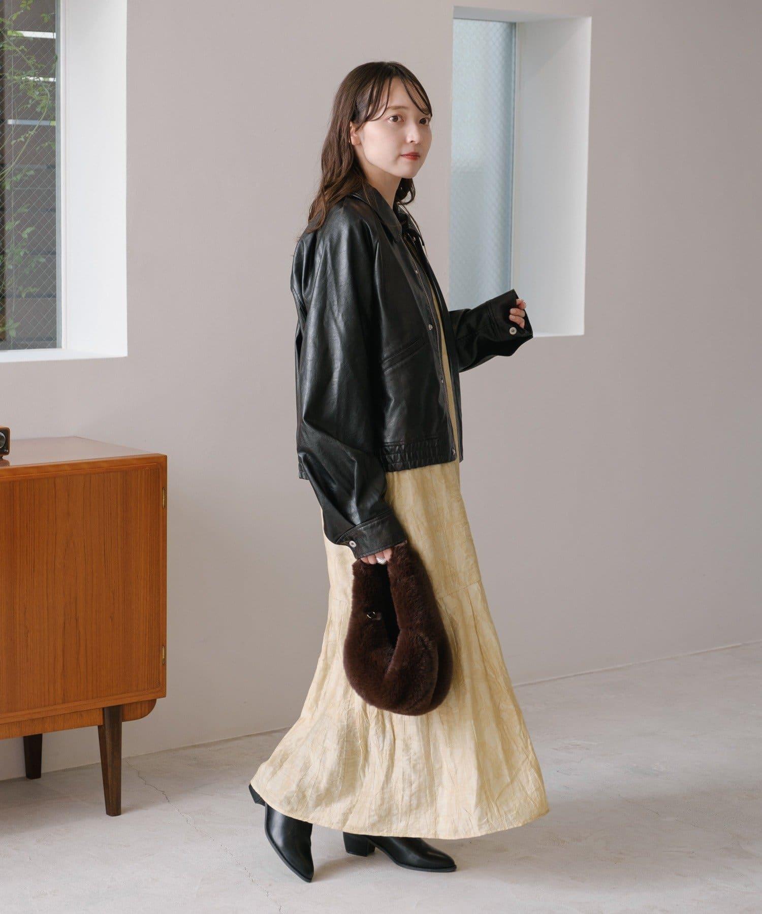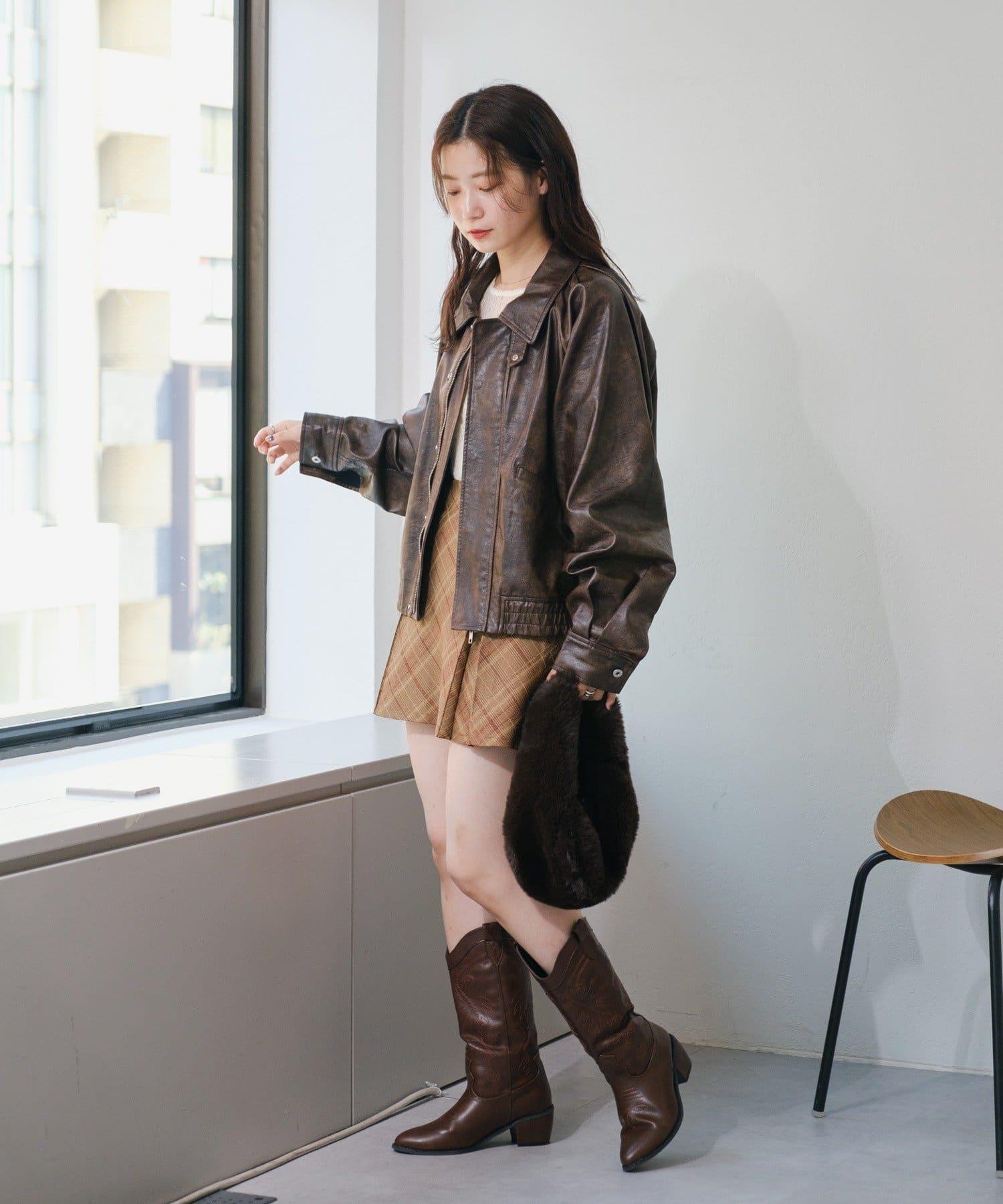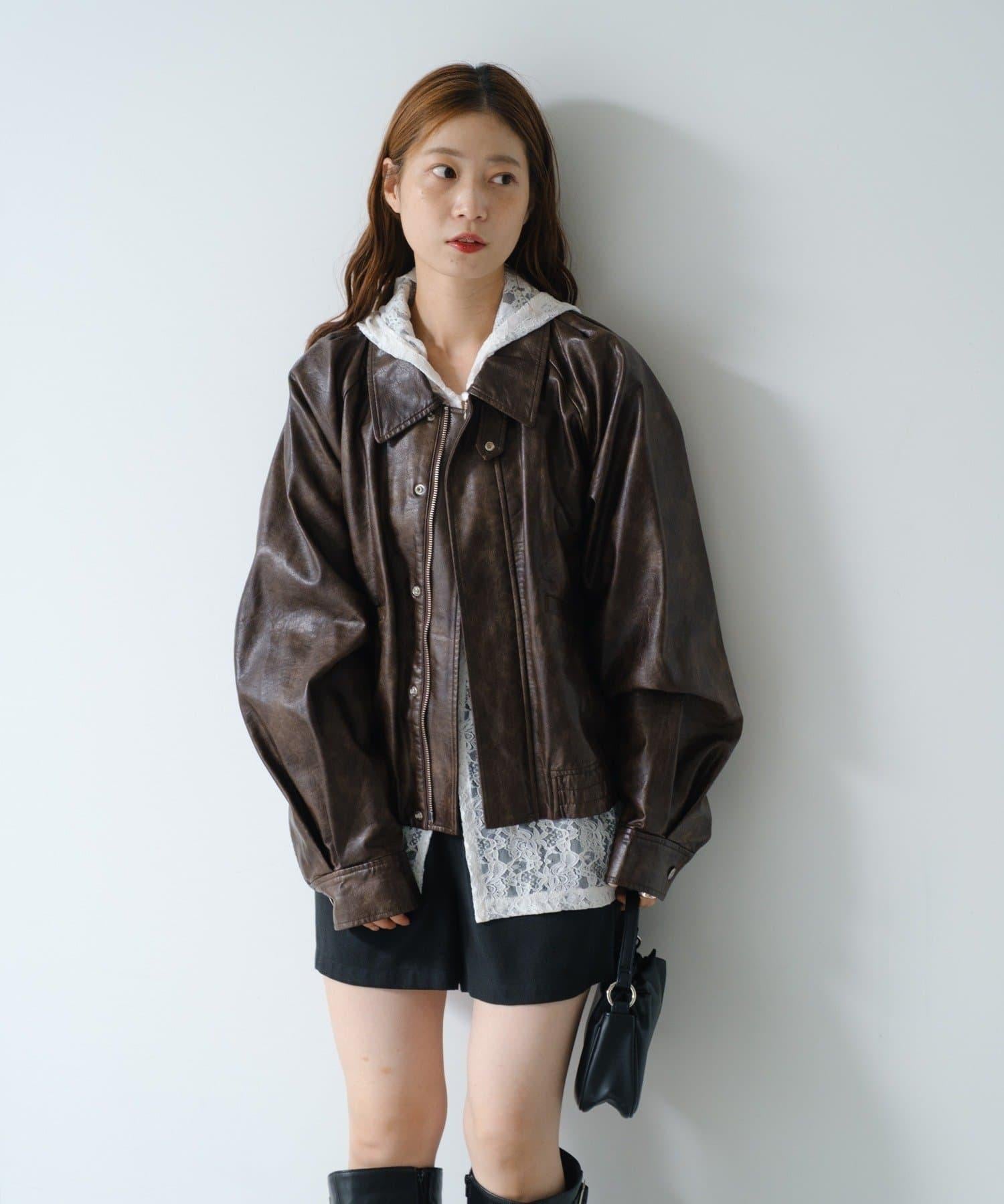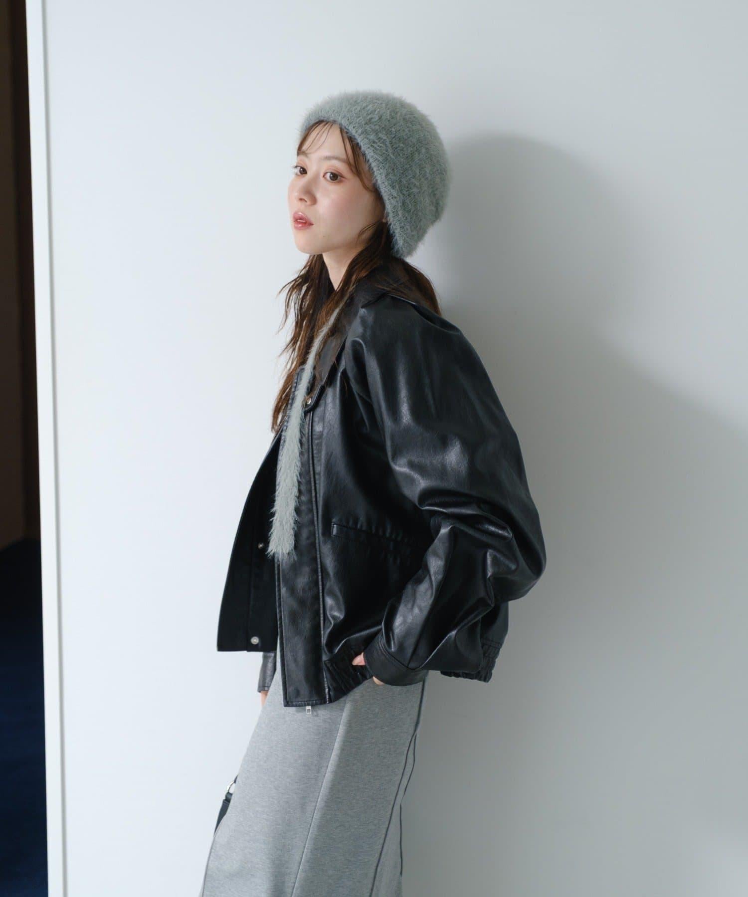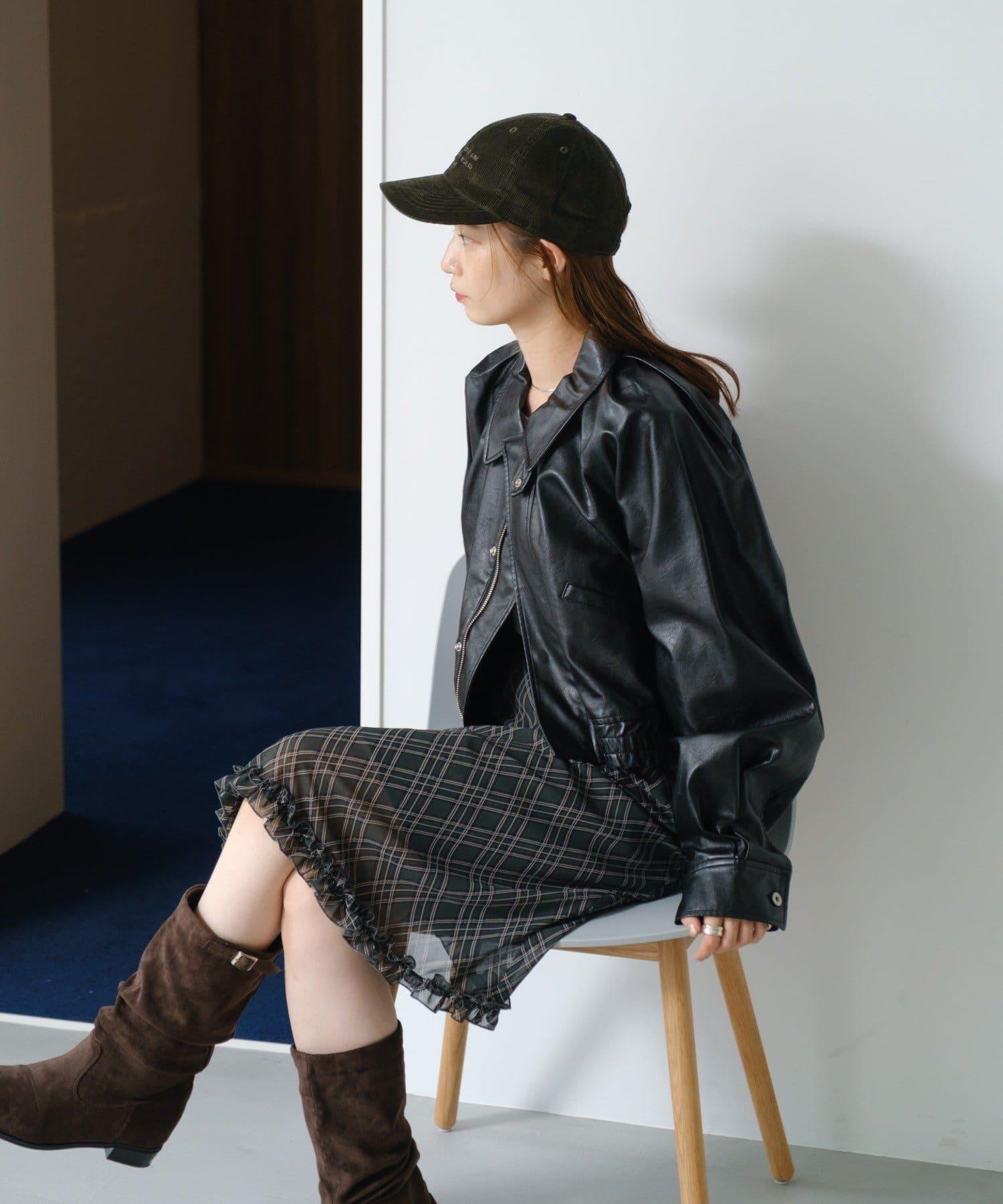 一款女性化皮夾克,尺寸小巧,袖子設計豐滿。