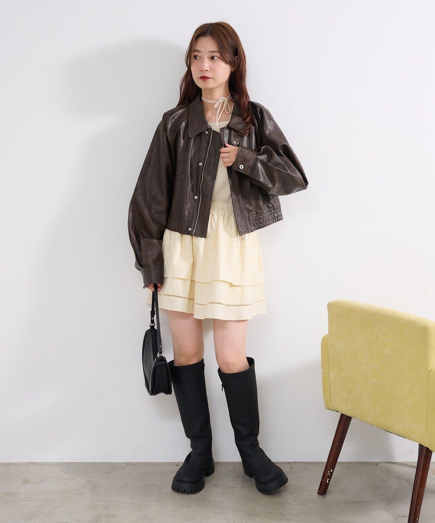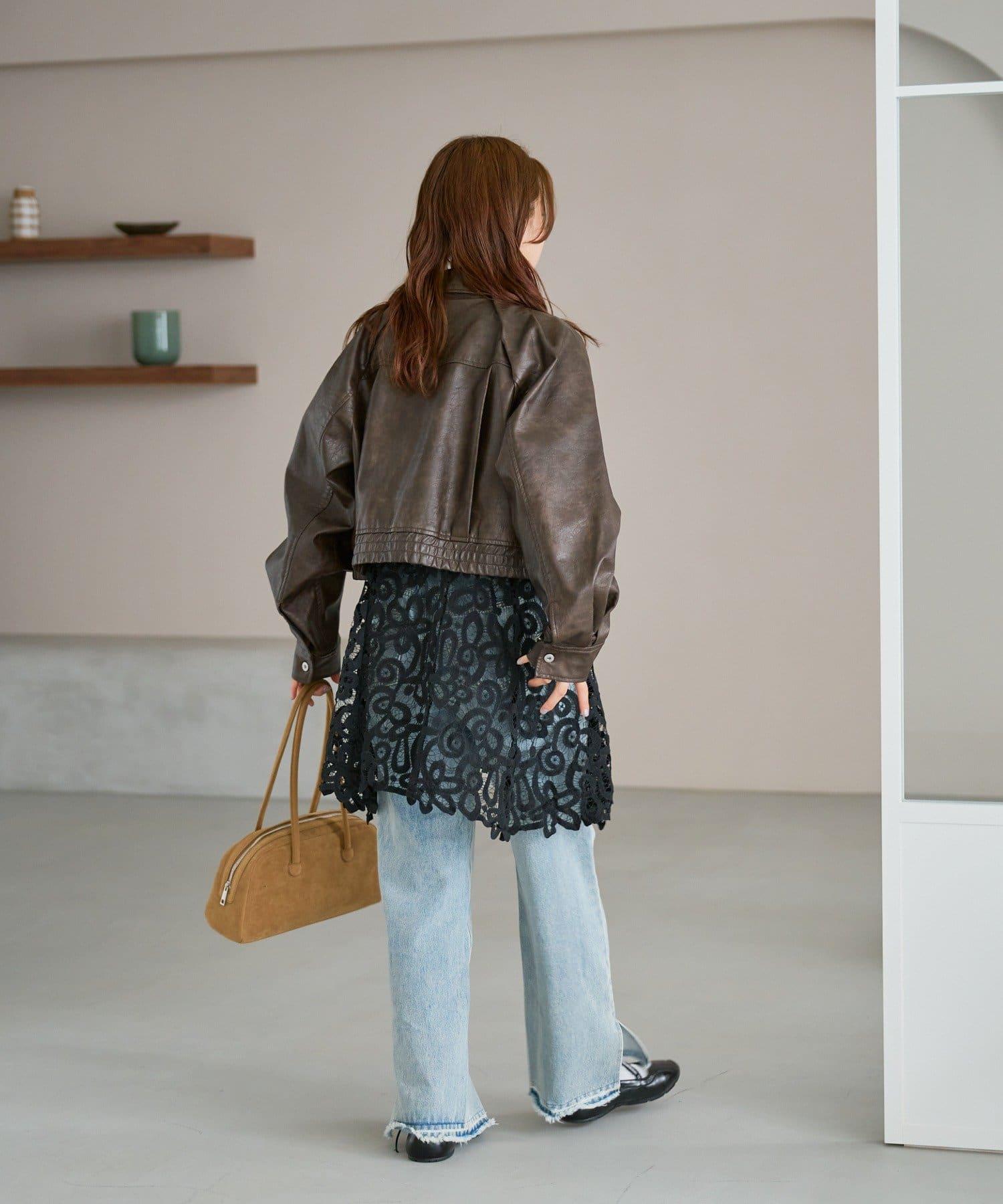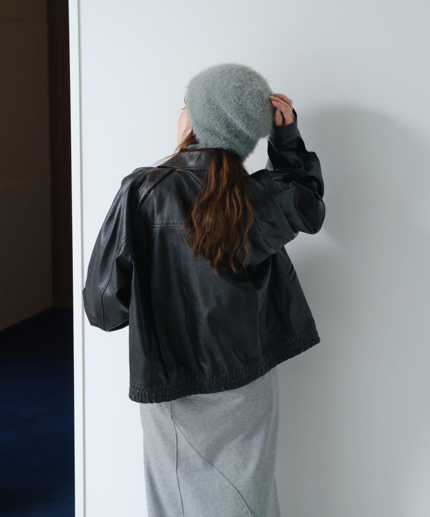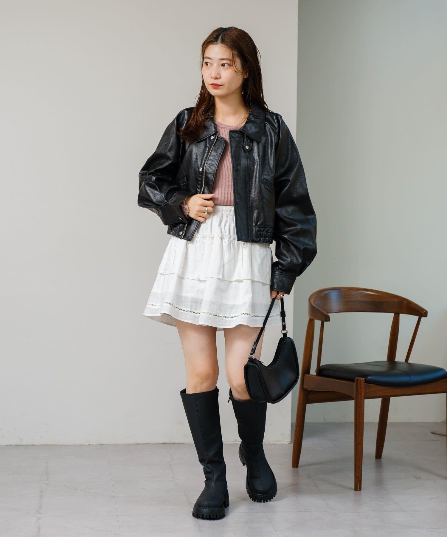 一款女性化皮夾克,尺寸小巧,袖子設計豐滿。