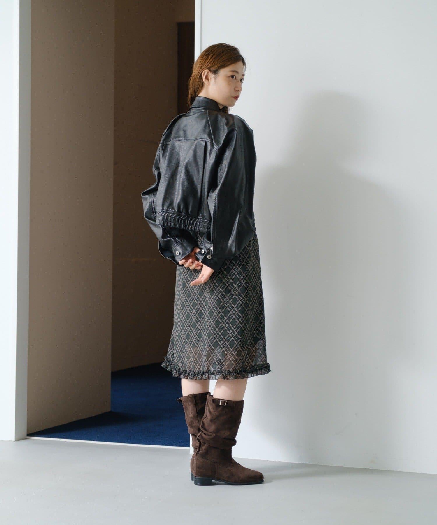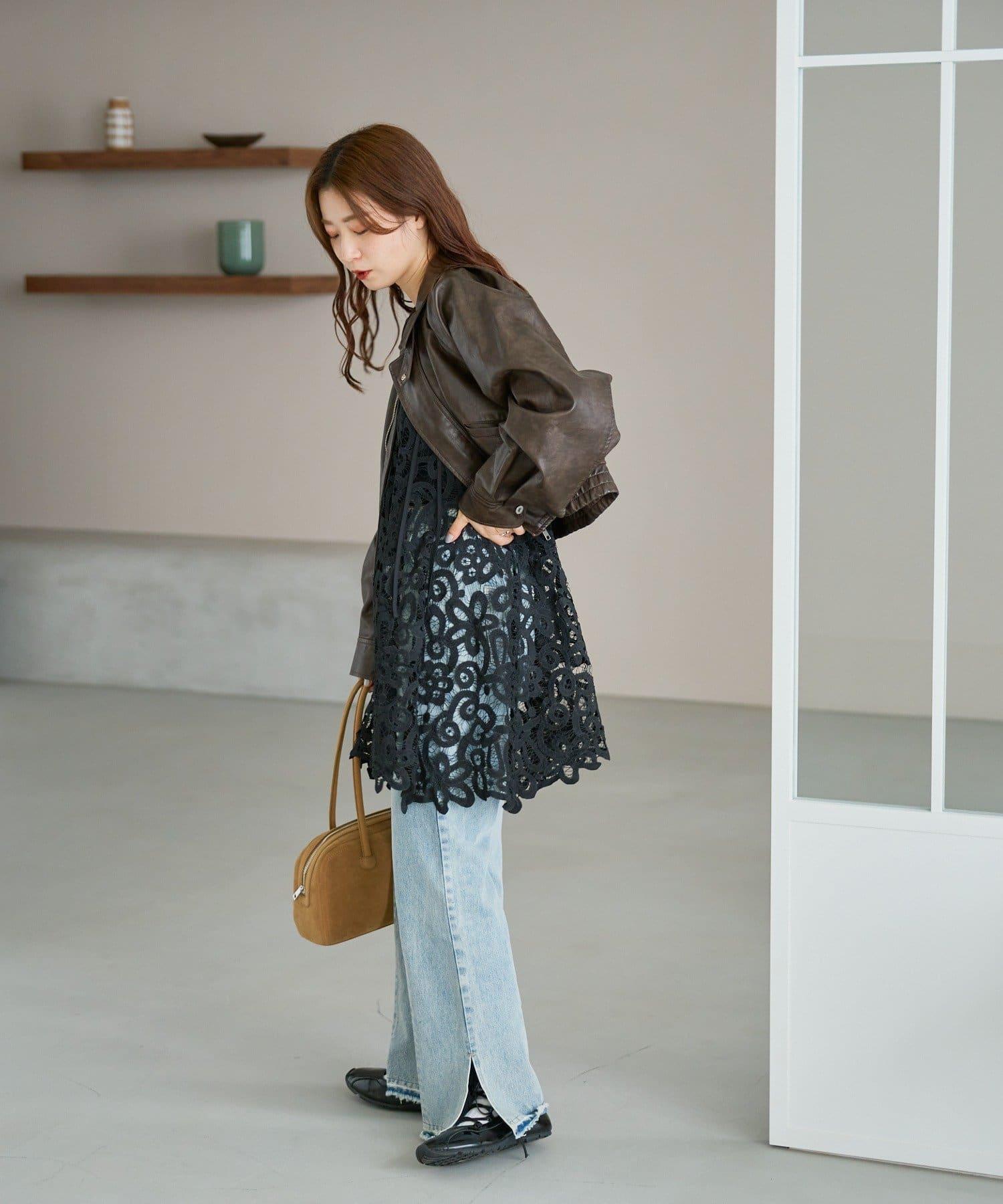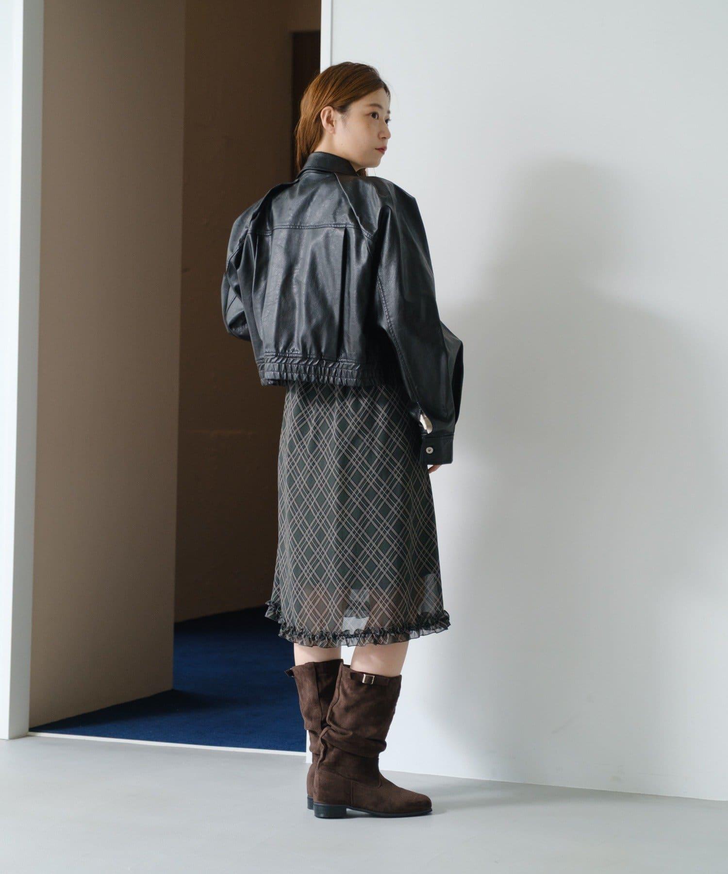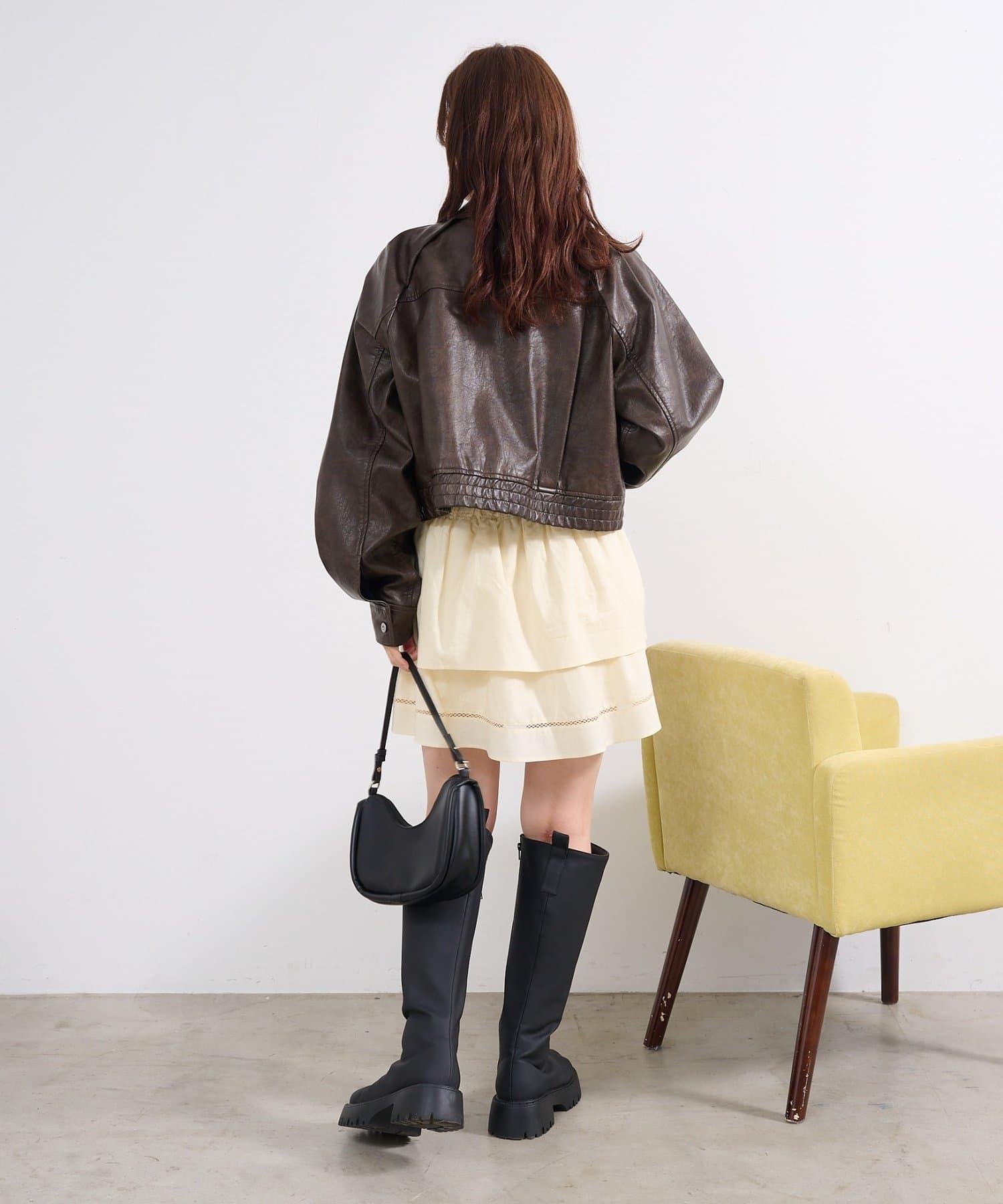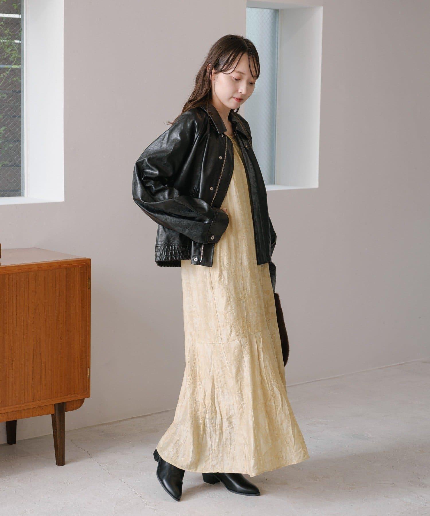 一款女性化皮夾克,尺寸小巧,袖子設計豐滿。