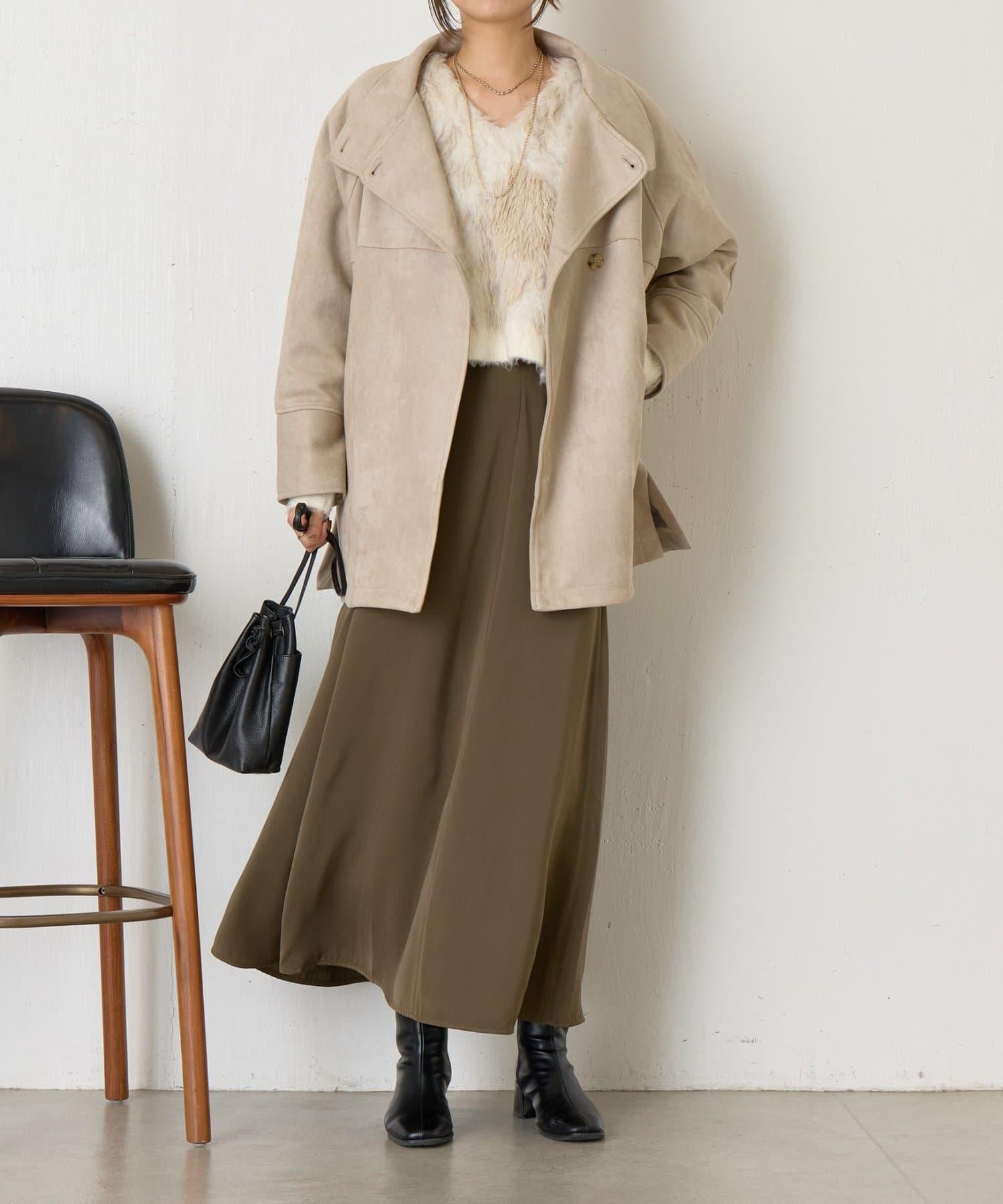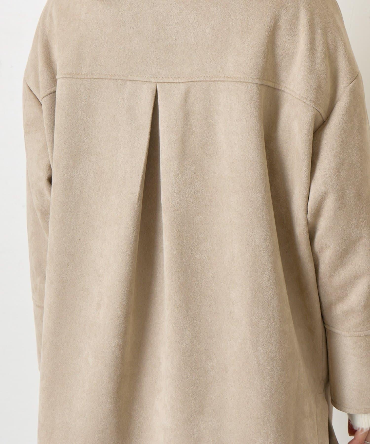 這款大衣採用光滑的仿麂皮絨質地,優雅地彰顯女性魅力。