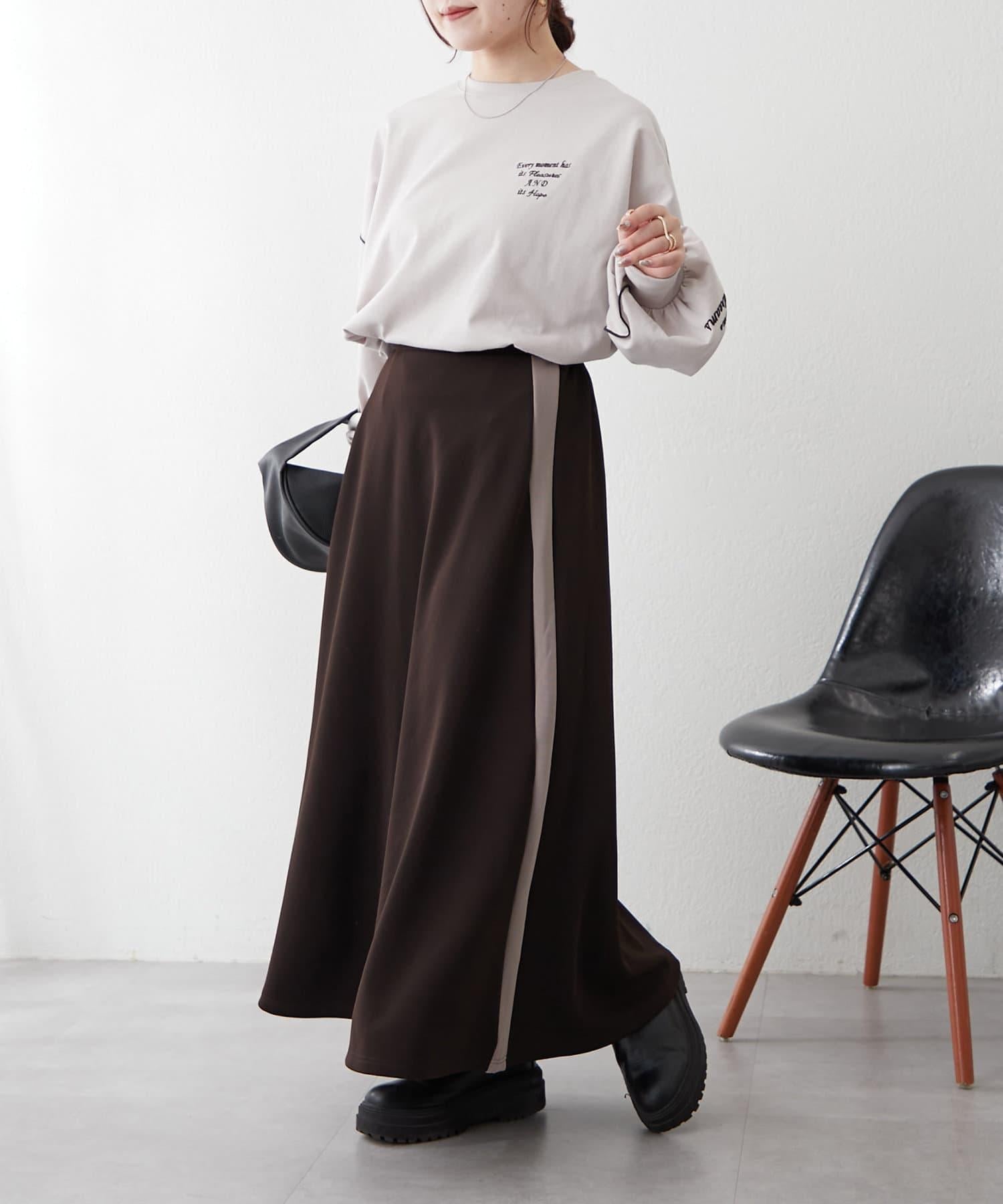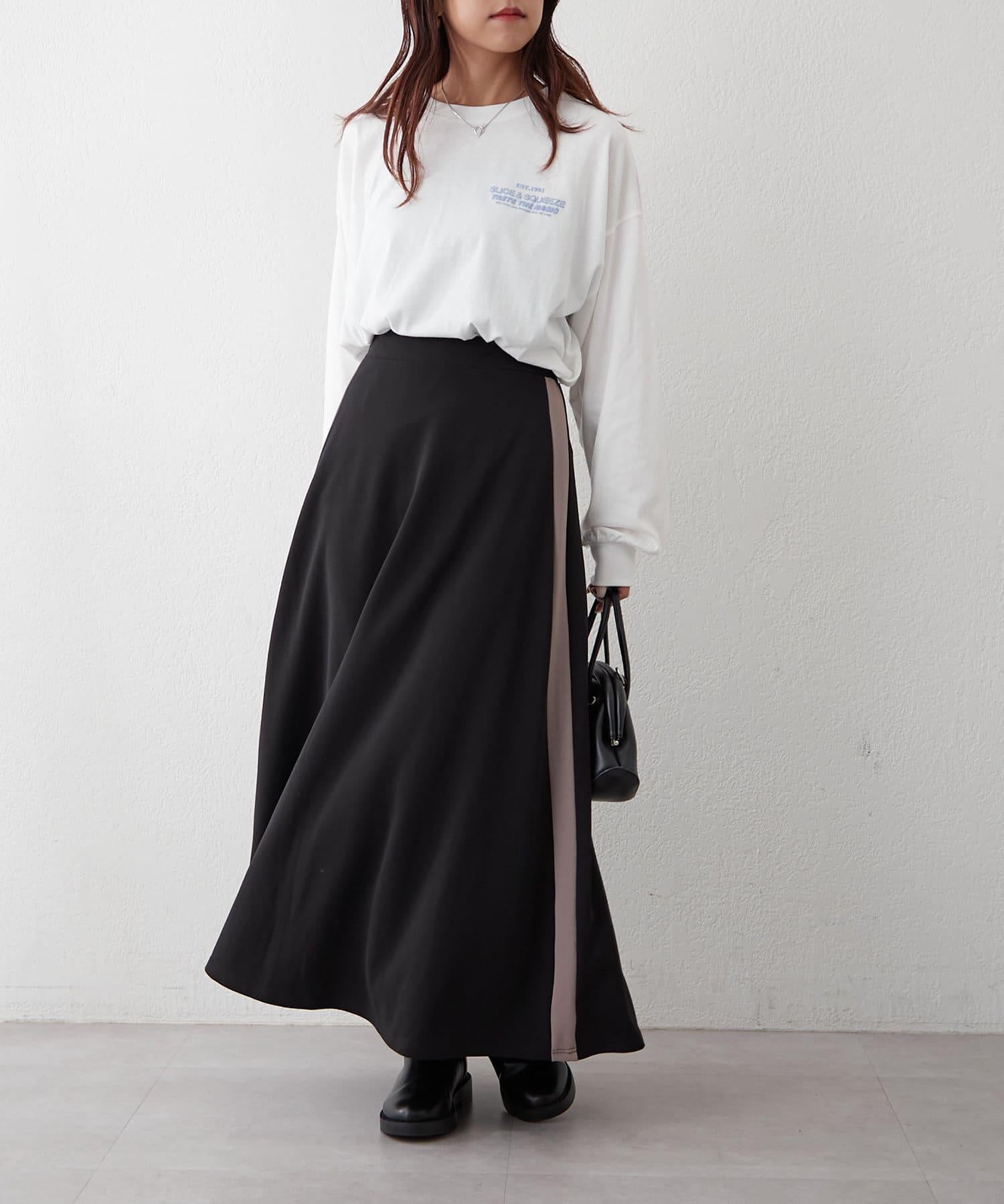 這款裙子的喇叭形線條使其非常適合搭配略微合身的上衣,打造平衡的造型。