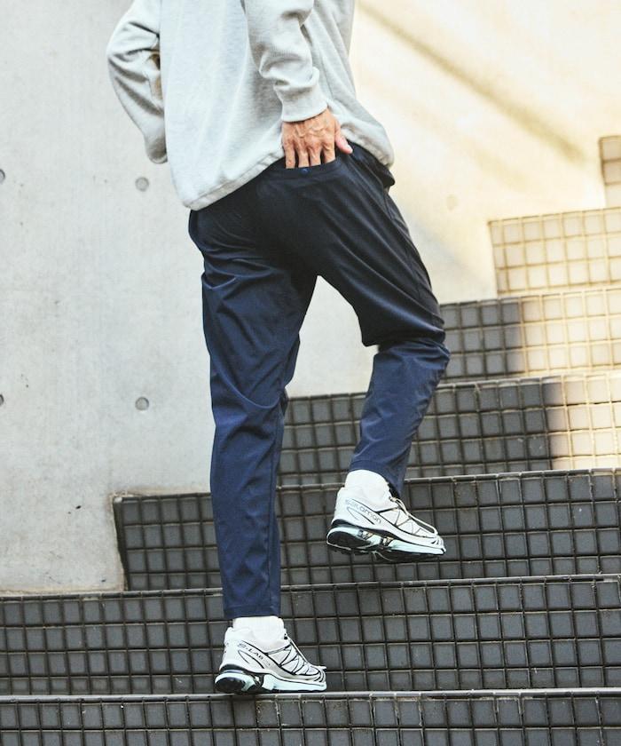褲型修身,下襬逐漸變細。