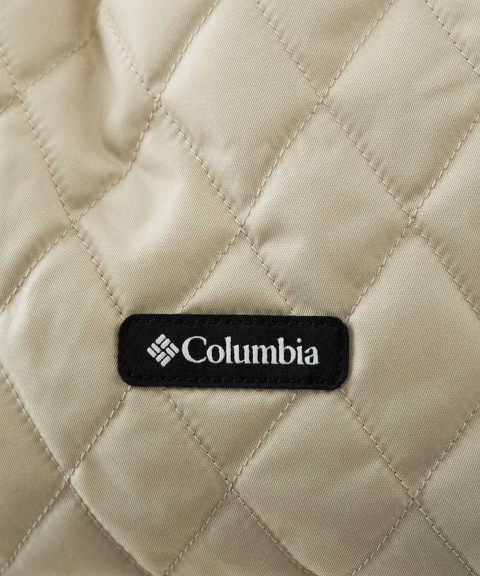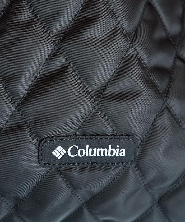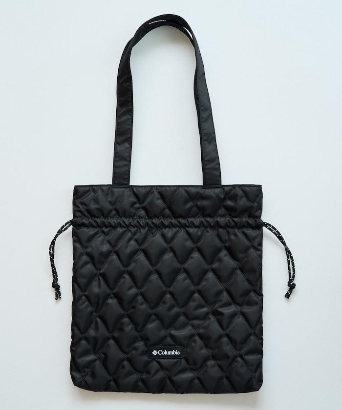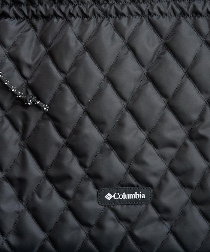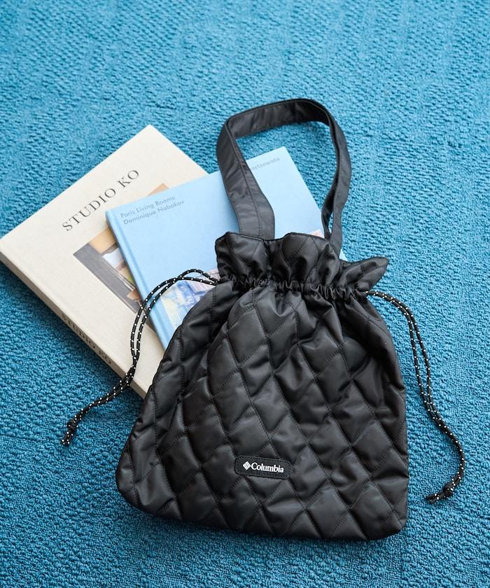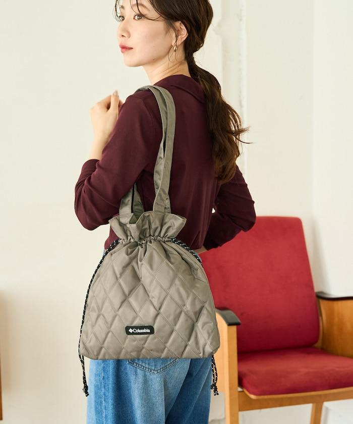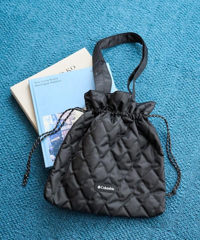 一款帶有絎縫和哥倫比亞標誌的優雅休閒抽繩包。
