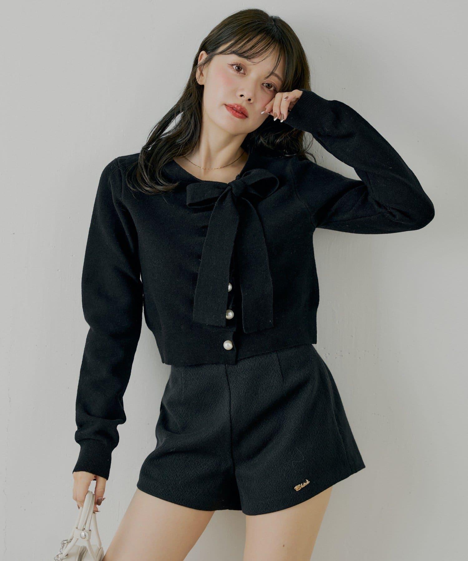 褶邊上衣,胸前飾有醒目的絲帶和珍珠鈕釦!