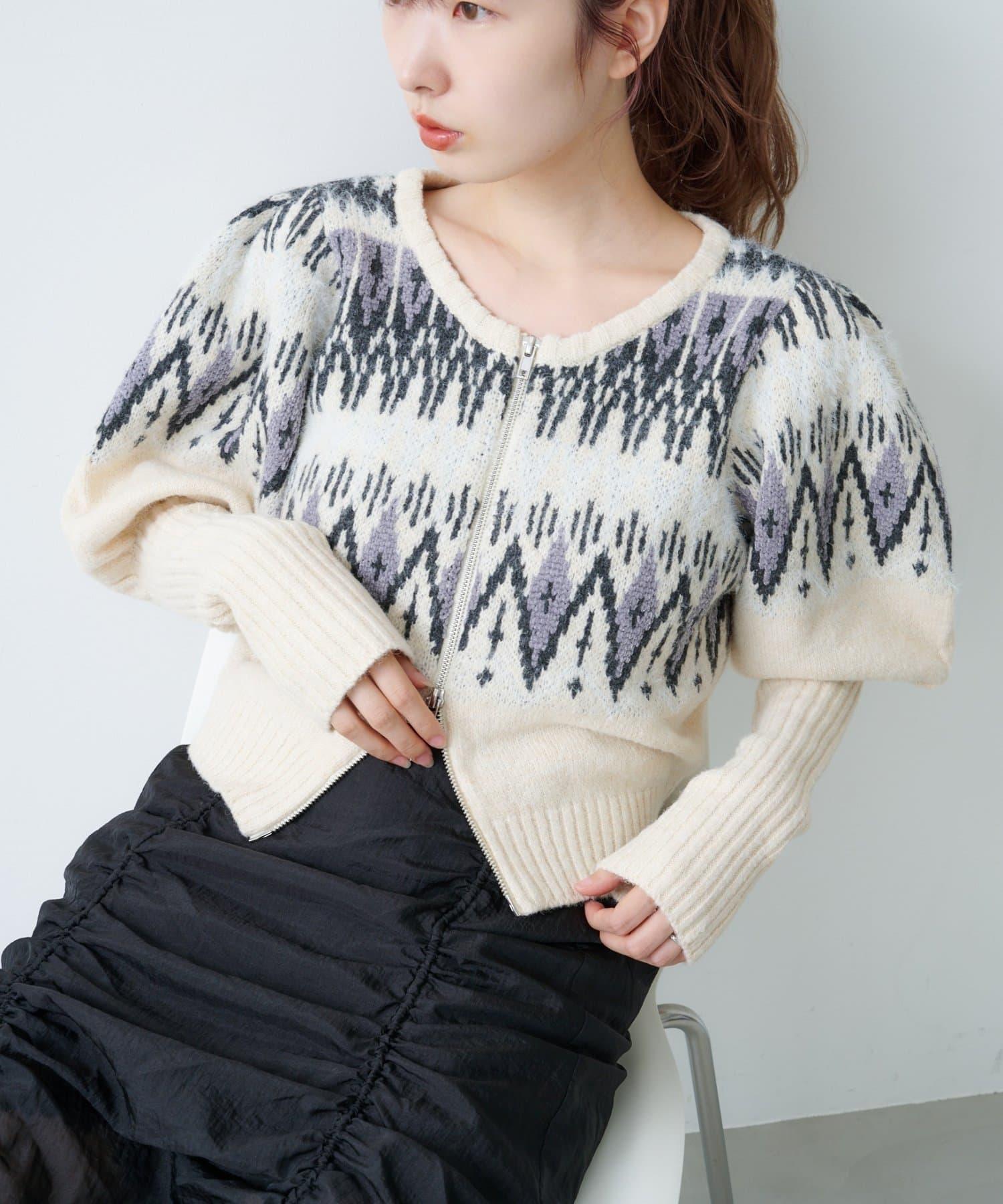 柔軟針織拉鍊開衫,帶有冬季北歐圖案。