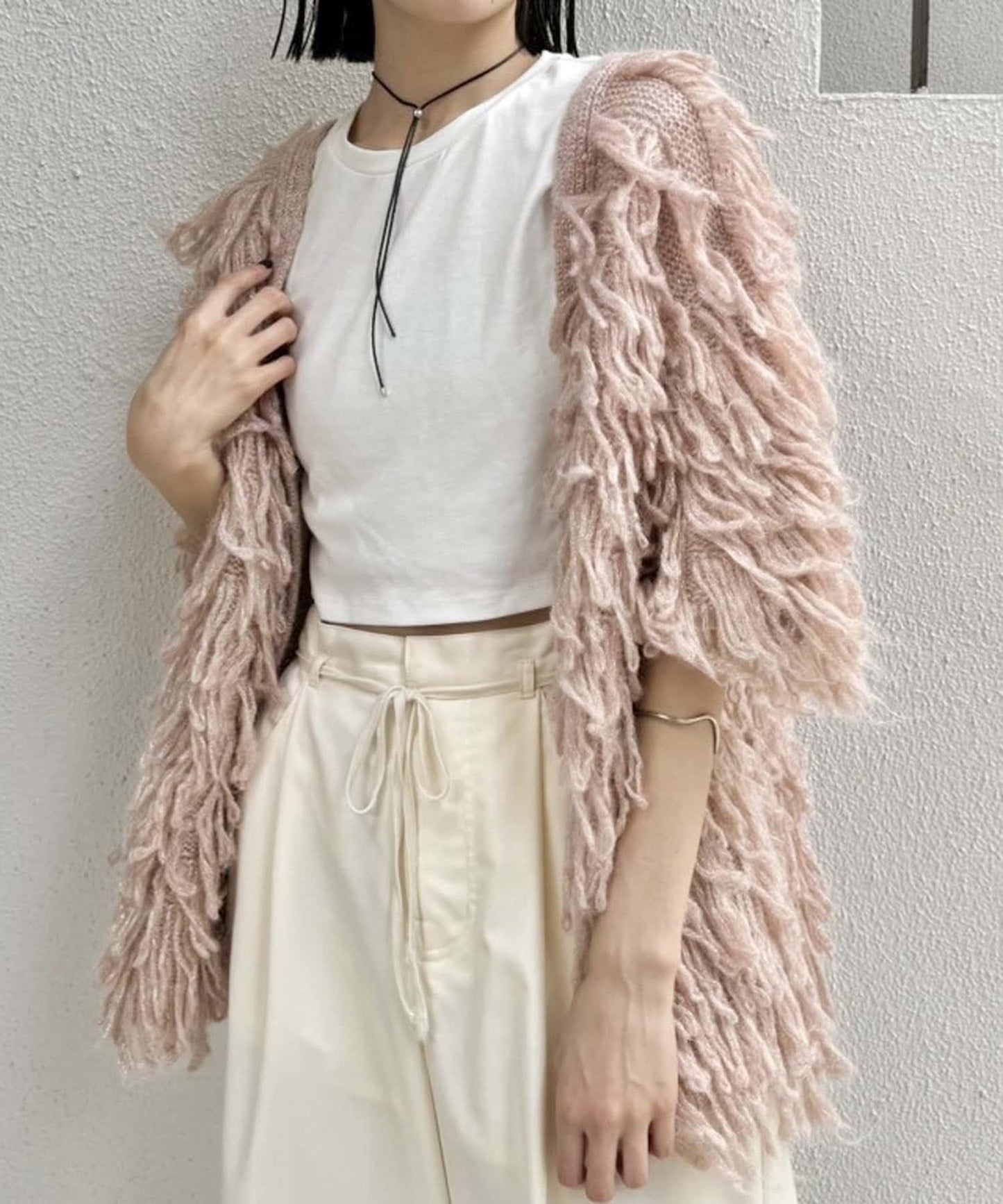這是一款採用立體環形針織的開衫,讓它成為全場的明星。