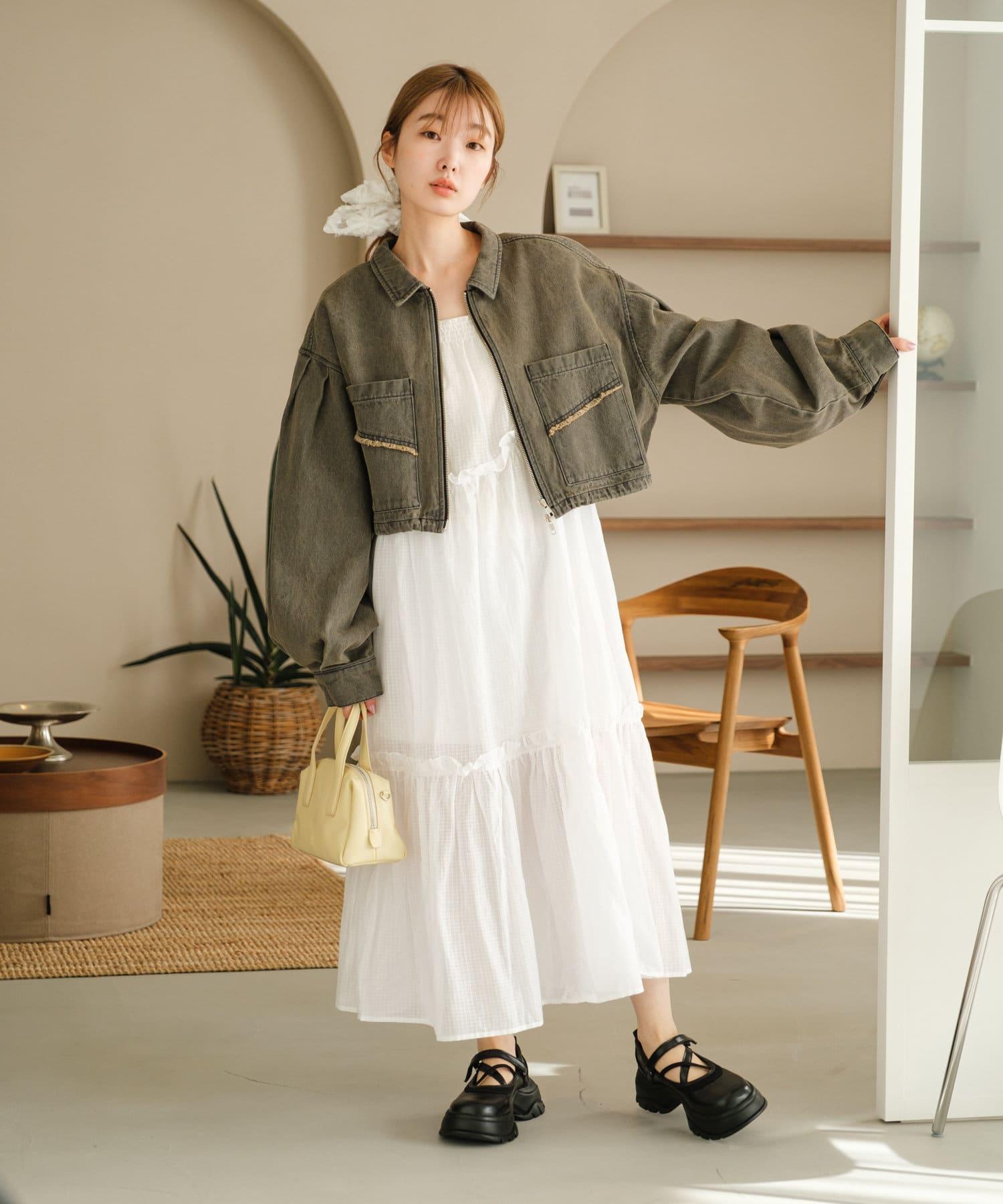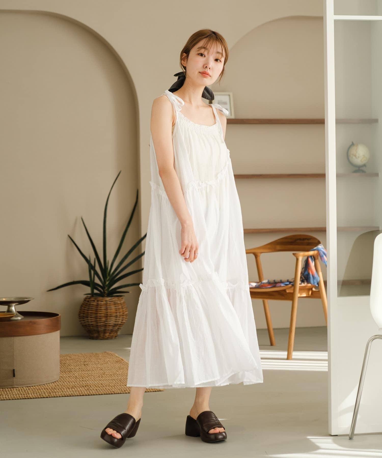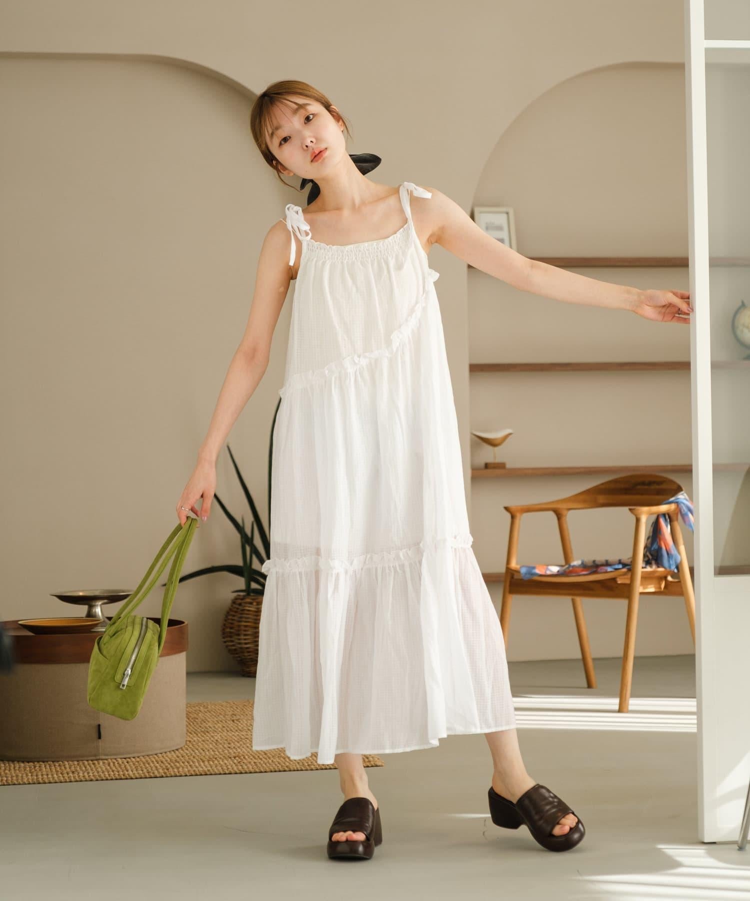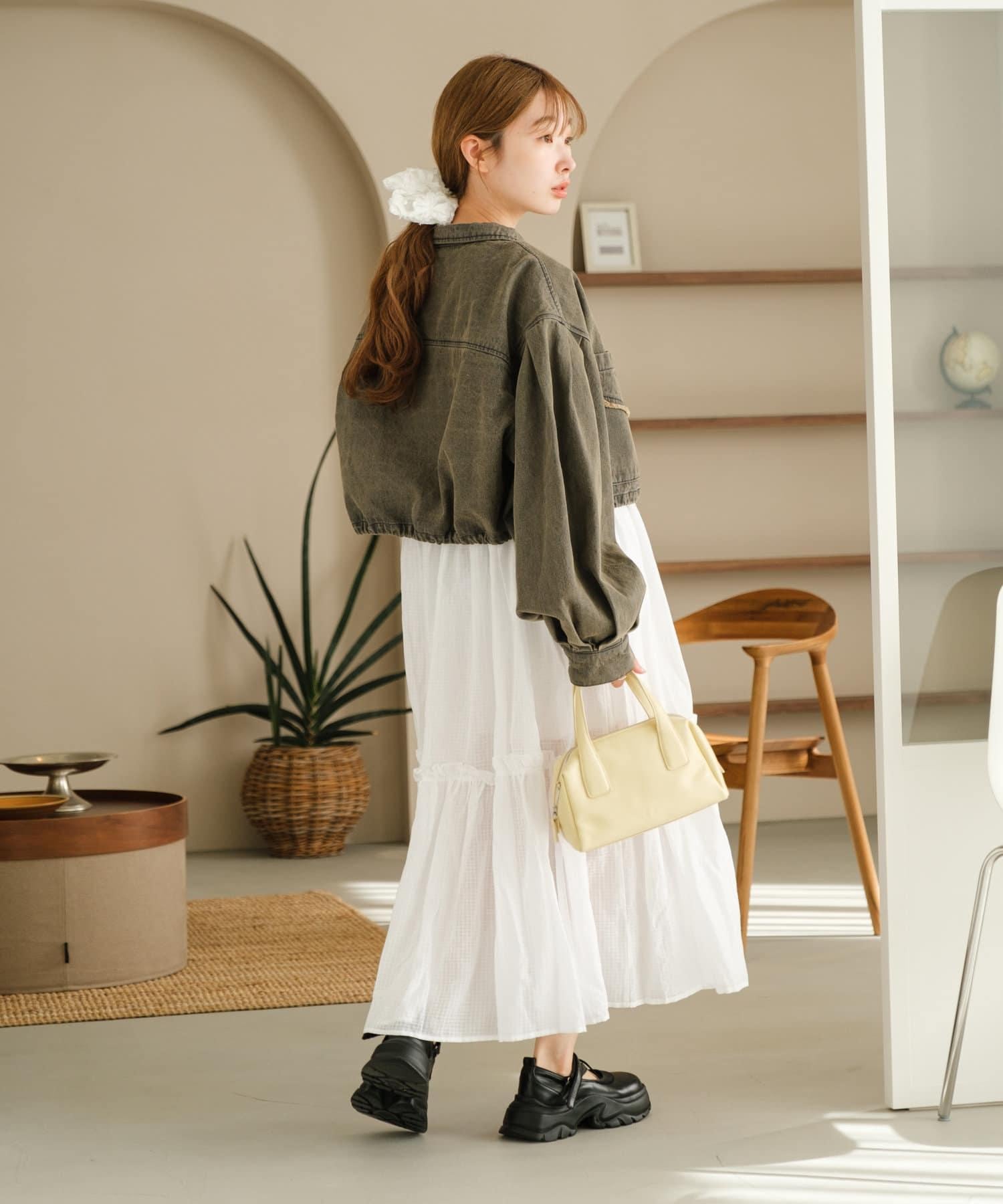 適度合身的喇叭設計營造出女性的柔美氣質。