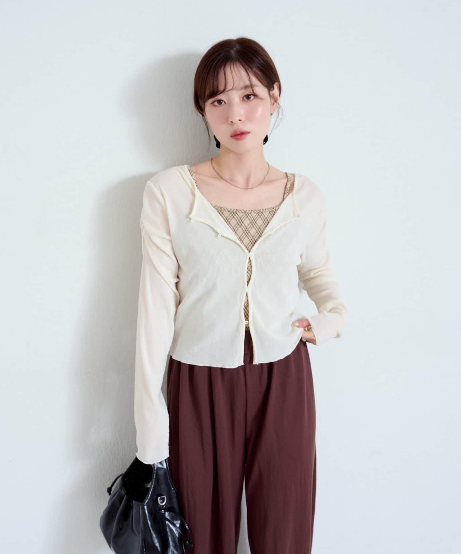 格紋圖案並不張揚,是一款既可單穿、又可作為內衣的百搭單品。