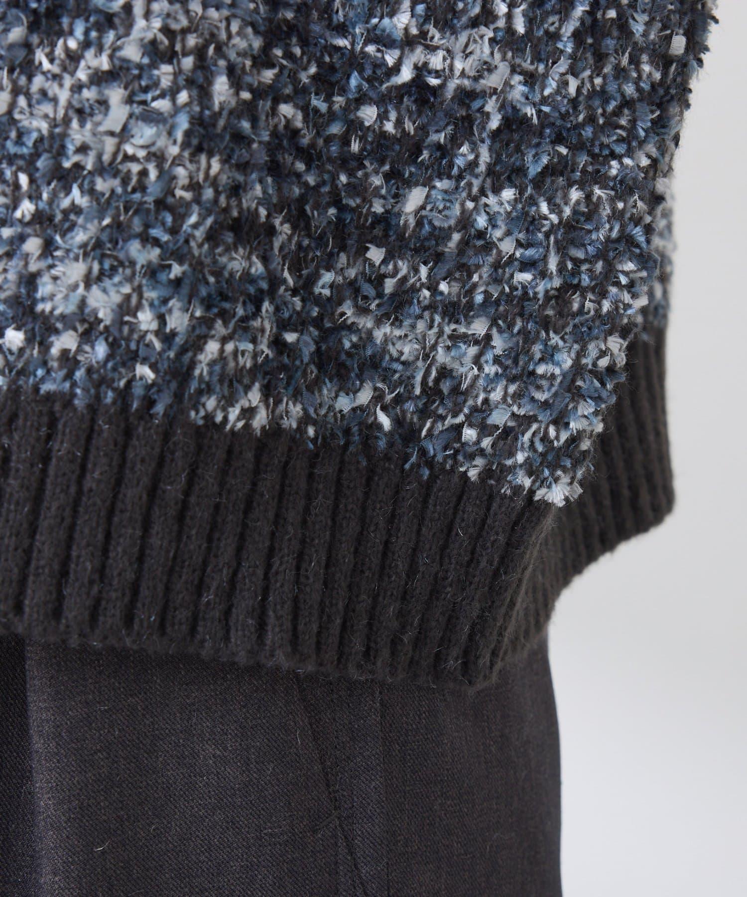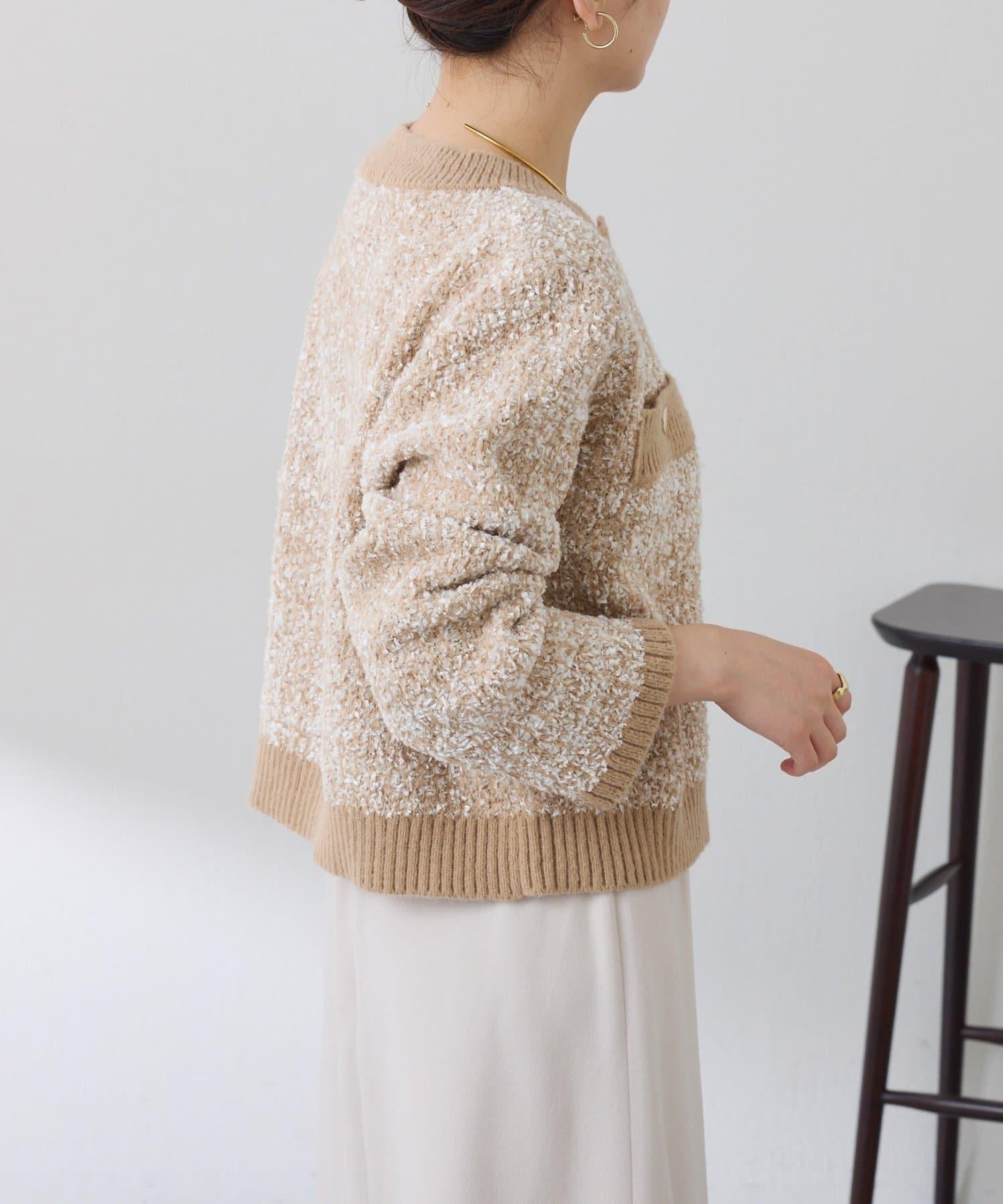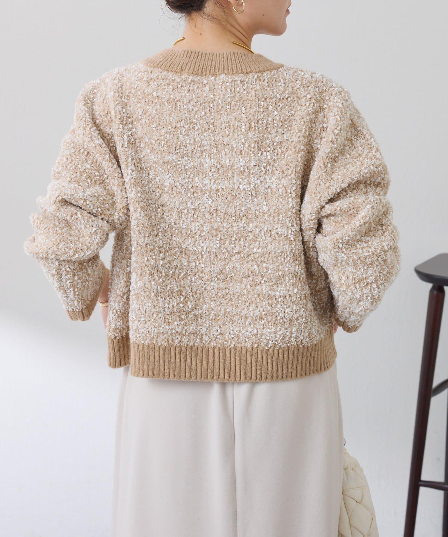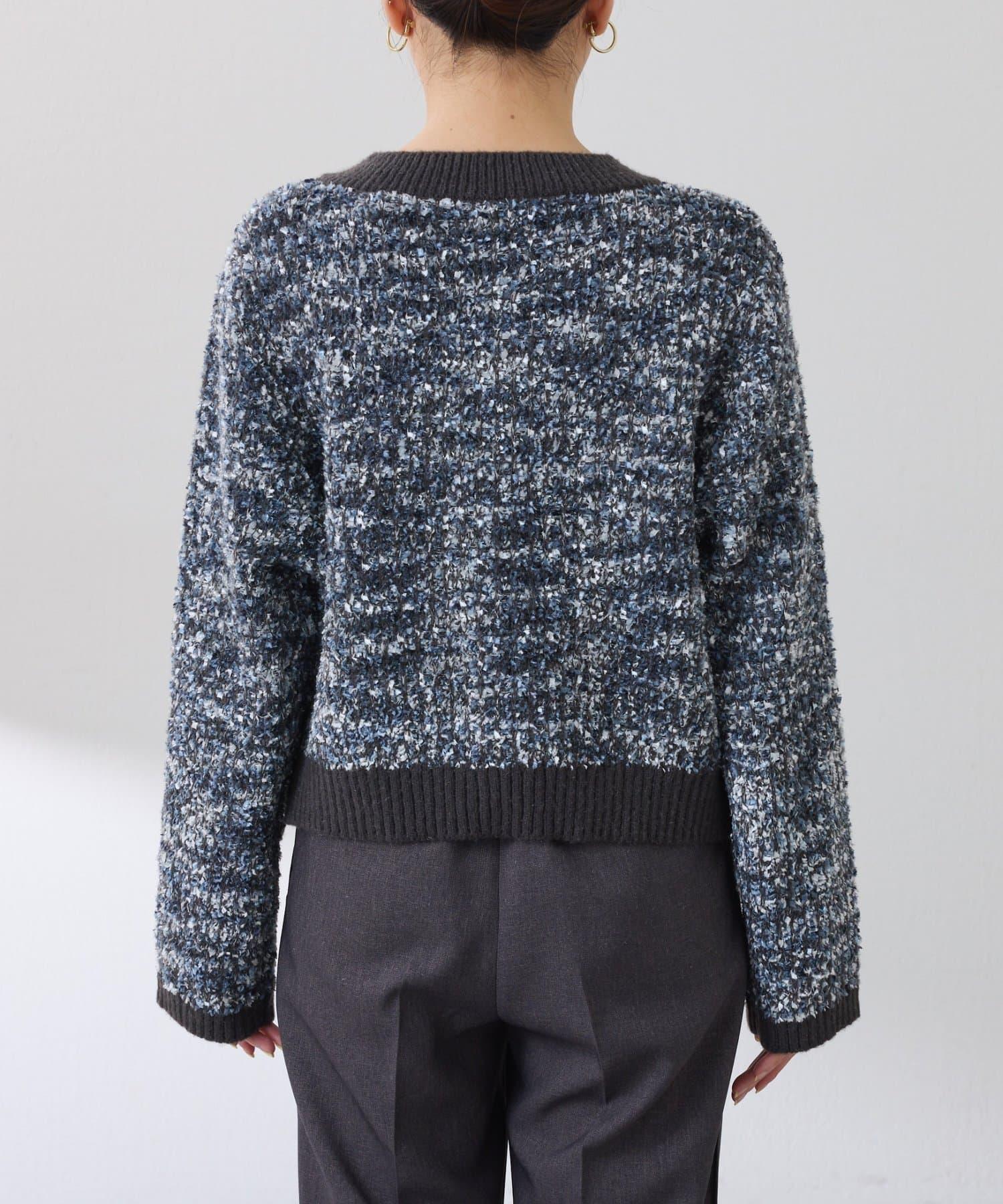粗花呢設計的針織外套,採用絲帶般的紗線,散發出女性的柔美氣息。