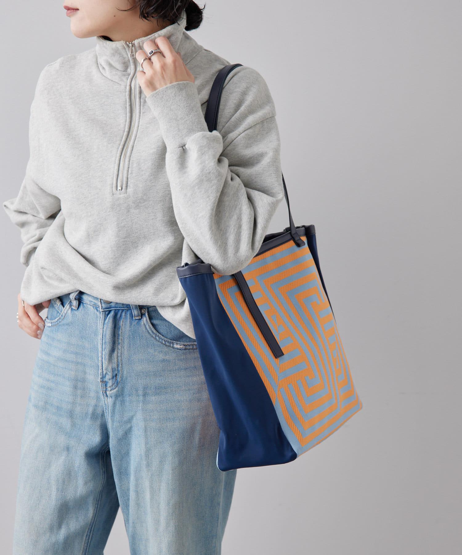 《可調節提手長度!/適合A4尺寸/推薦旅行/大號/輕便》針織盒形手提袋
