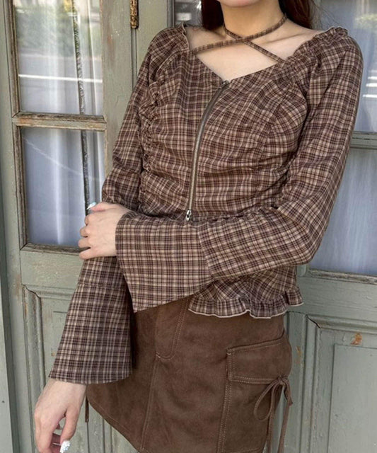 將下襬的扣眼系在第六顆紐扣內側,還可以縮短衣服的前襟長度。
