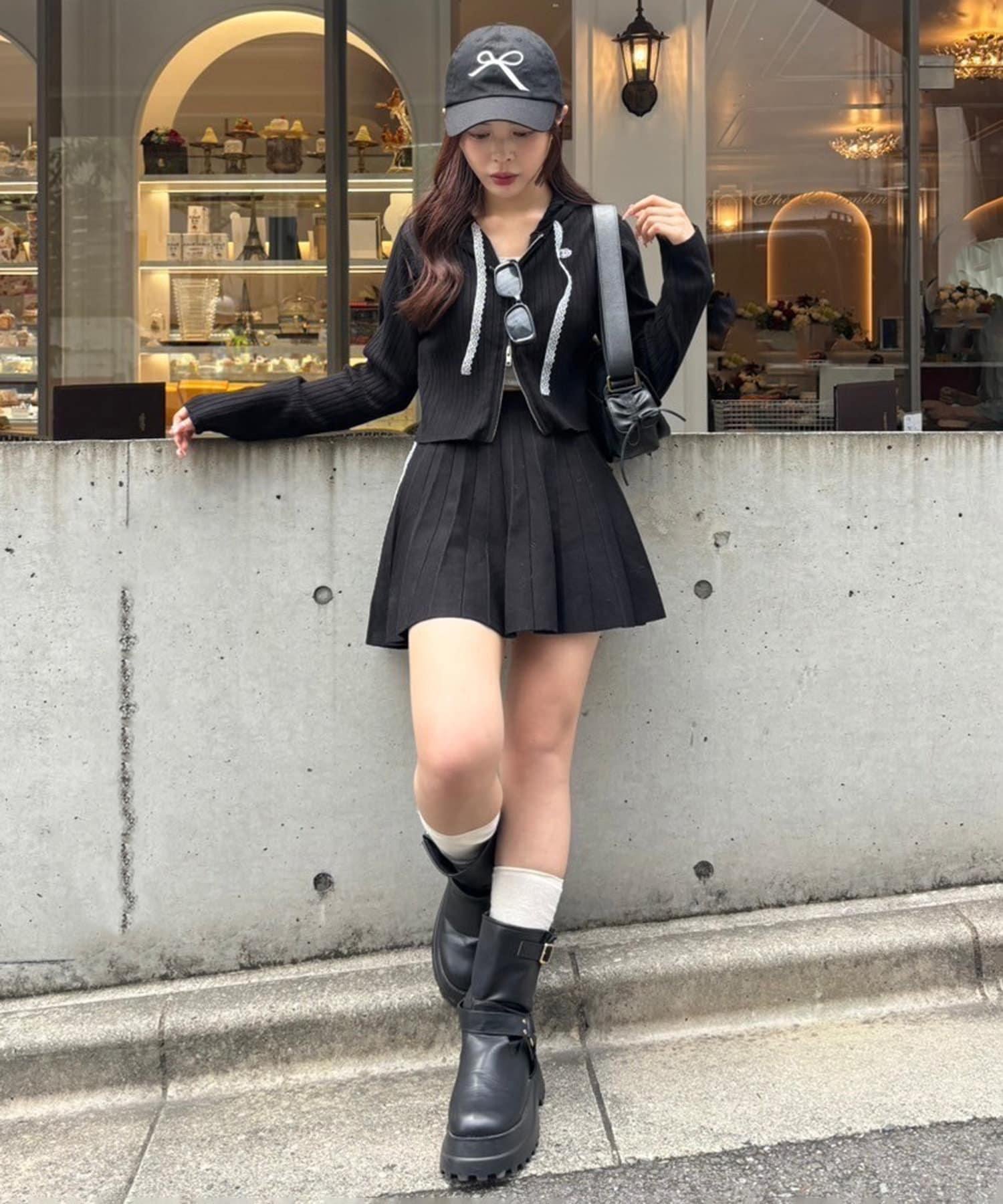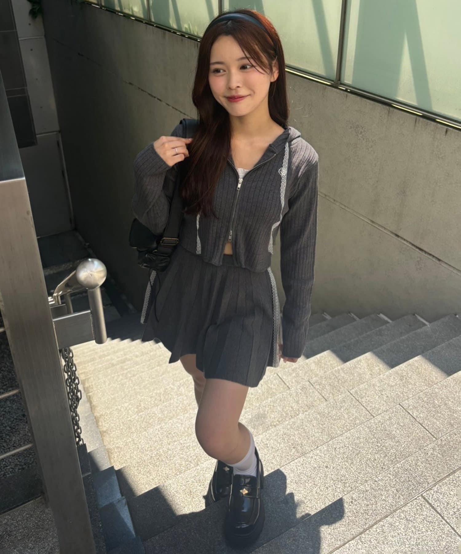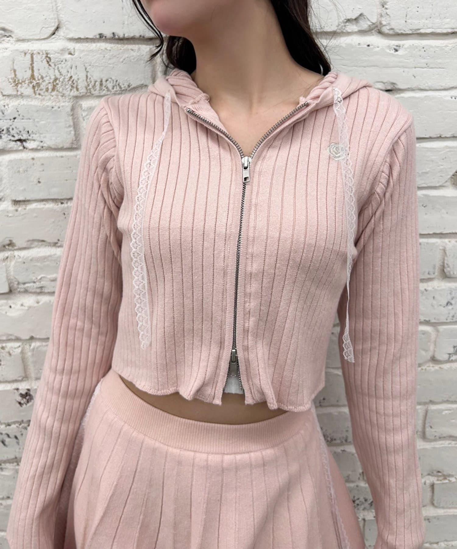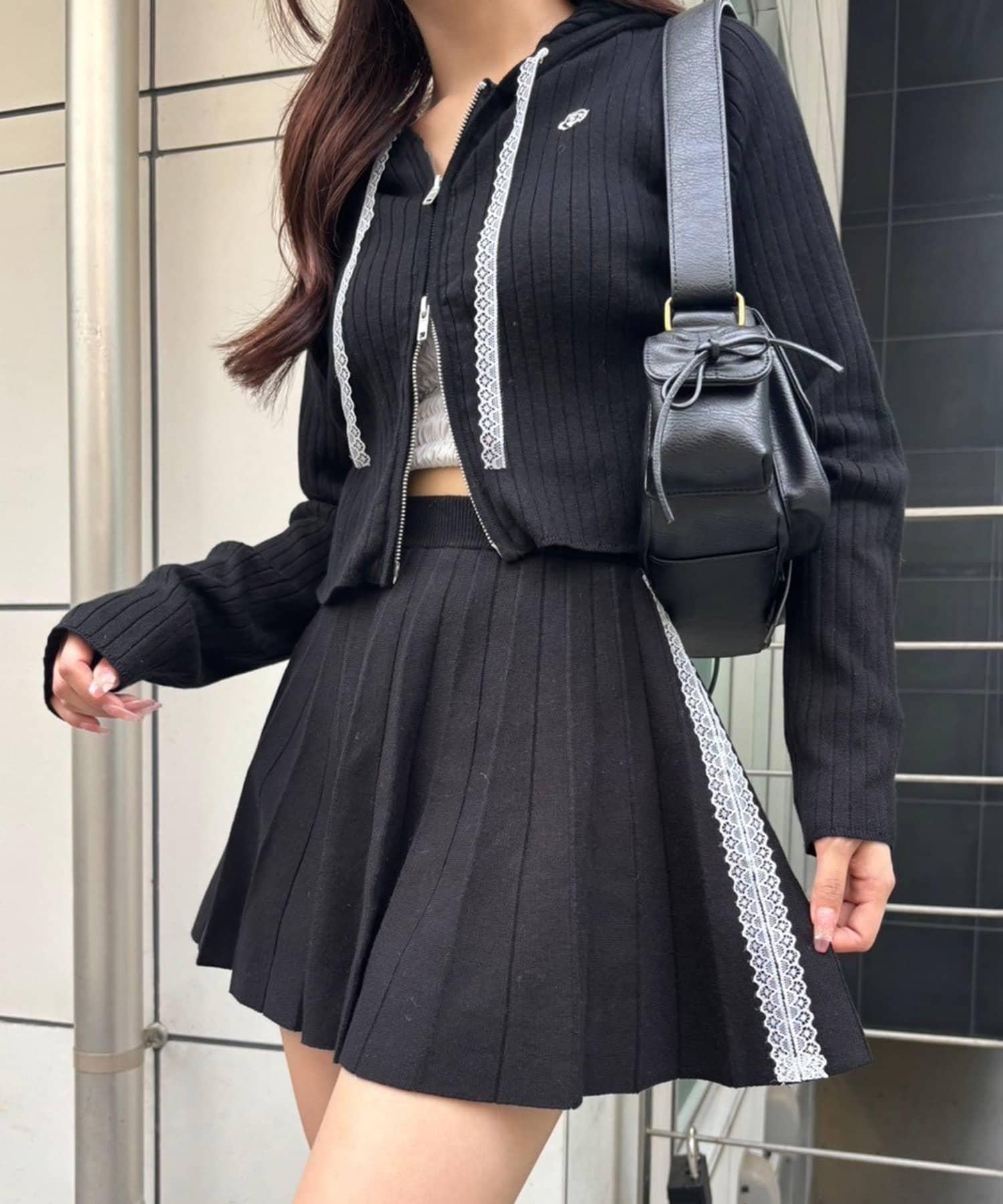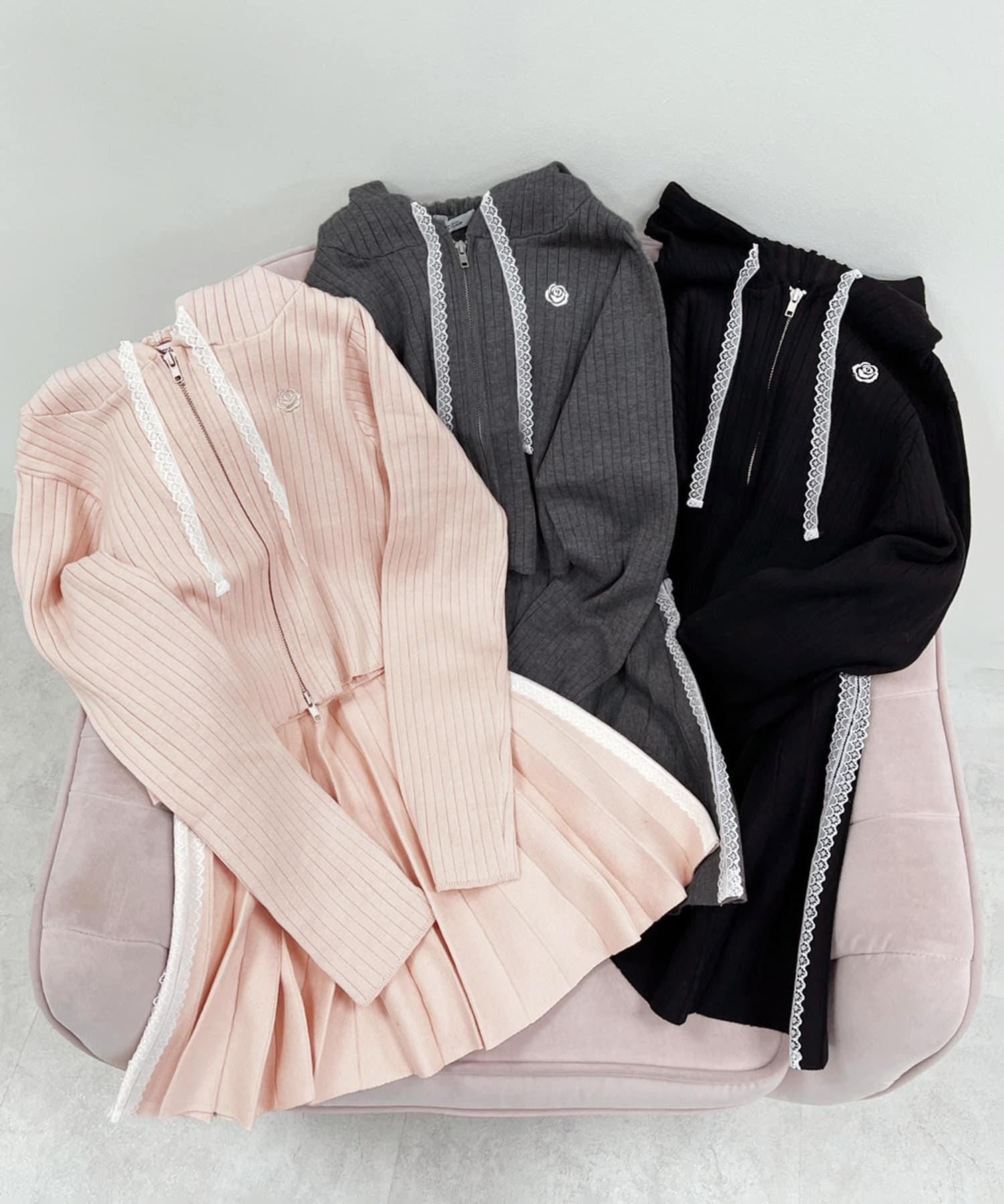 連帽繩部分和裙子側面的蕾絲花邊給人帥氣的少女印象。