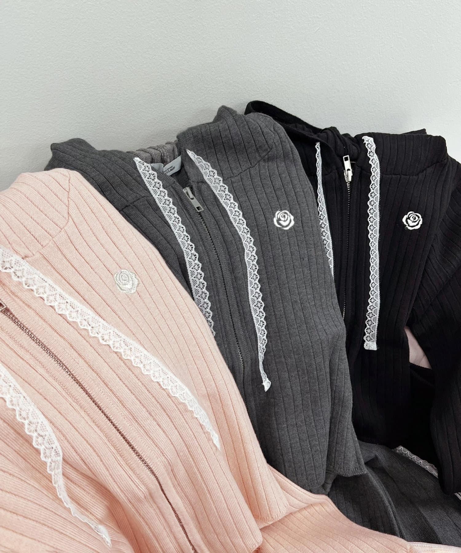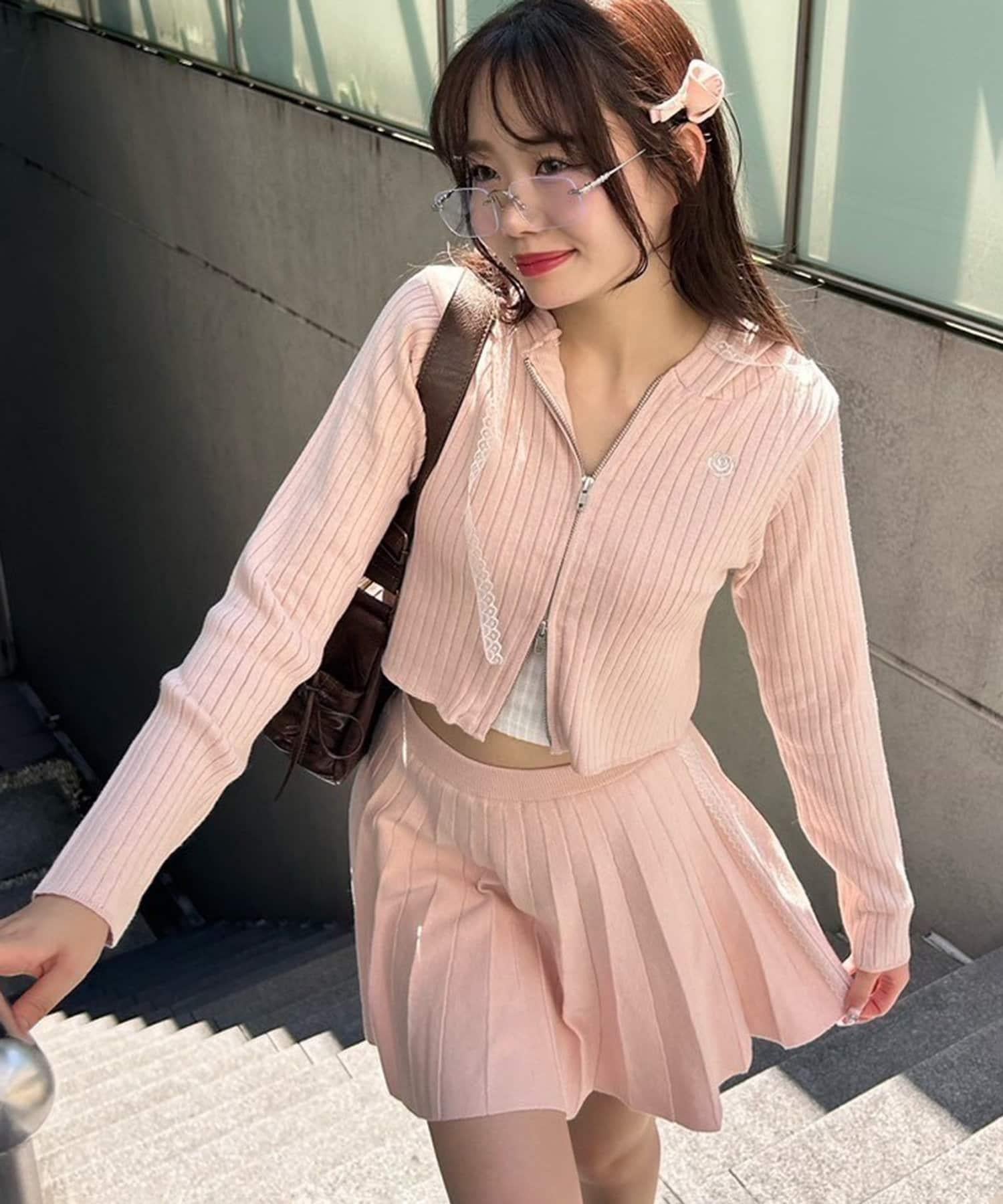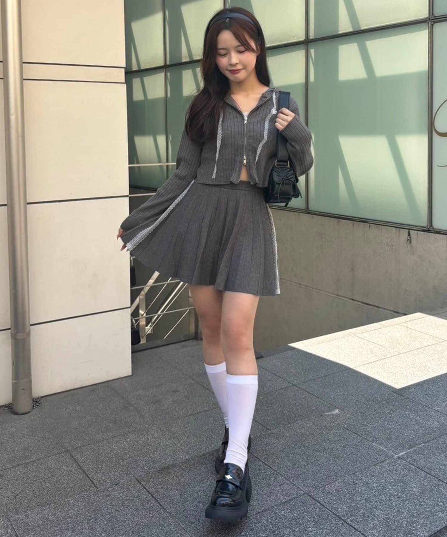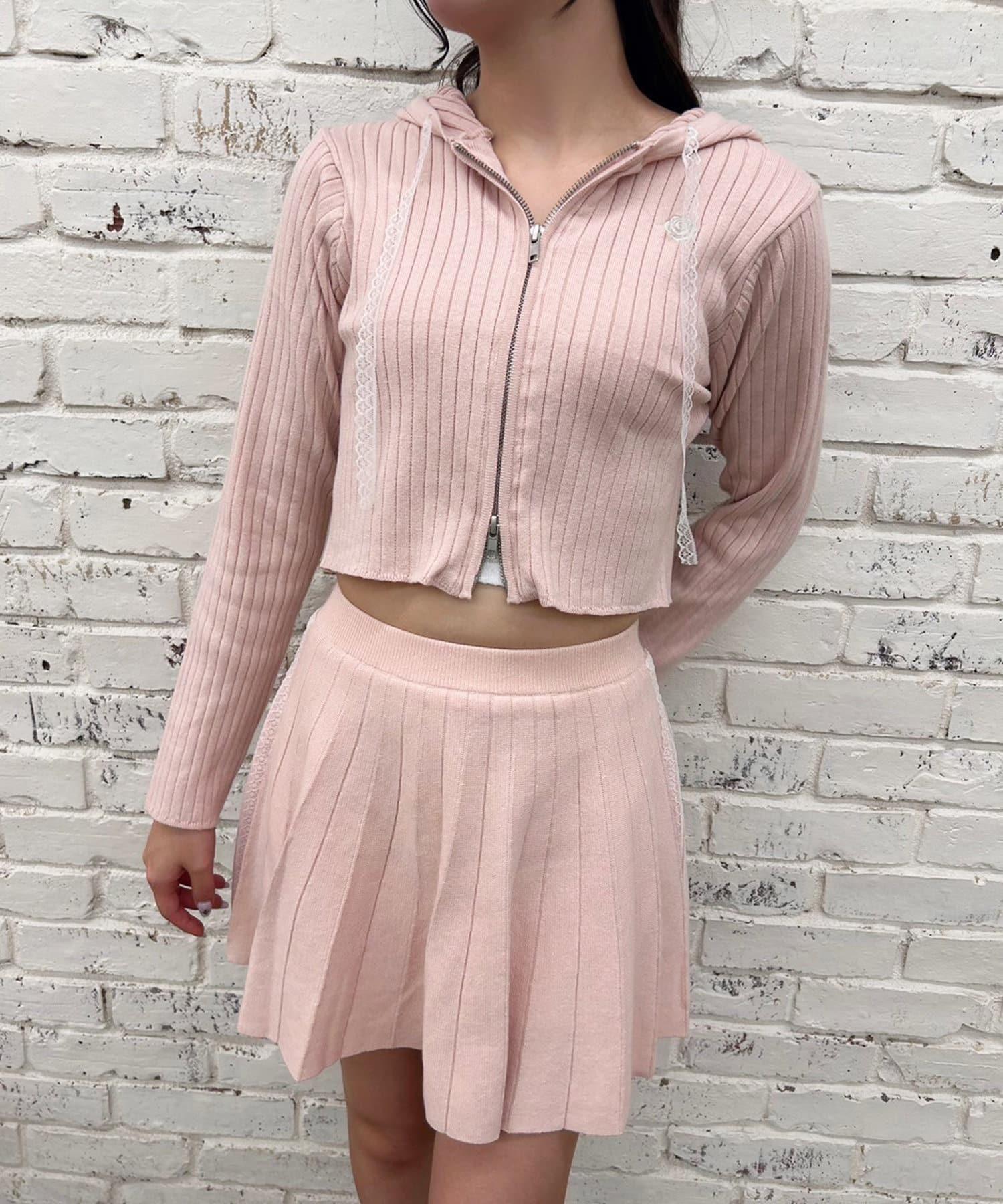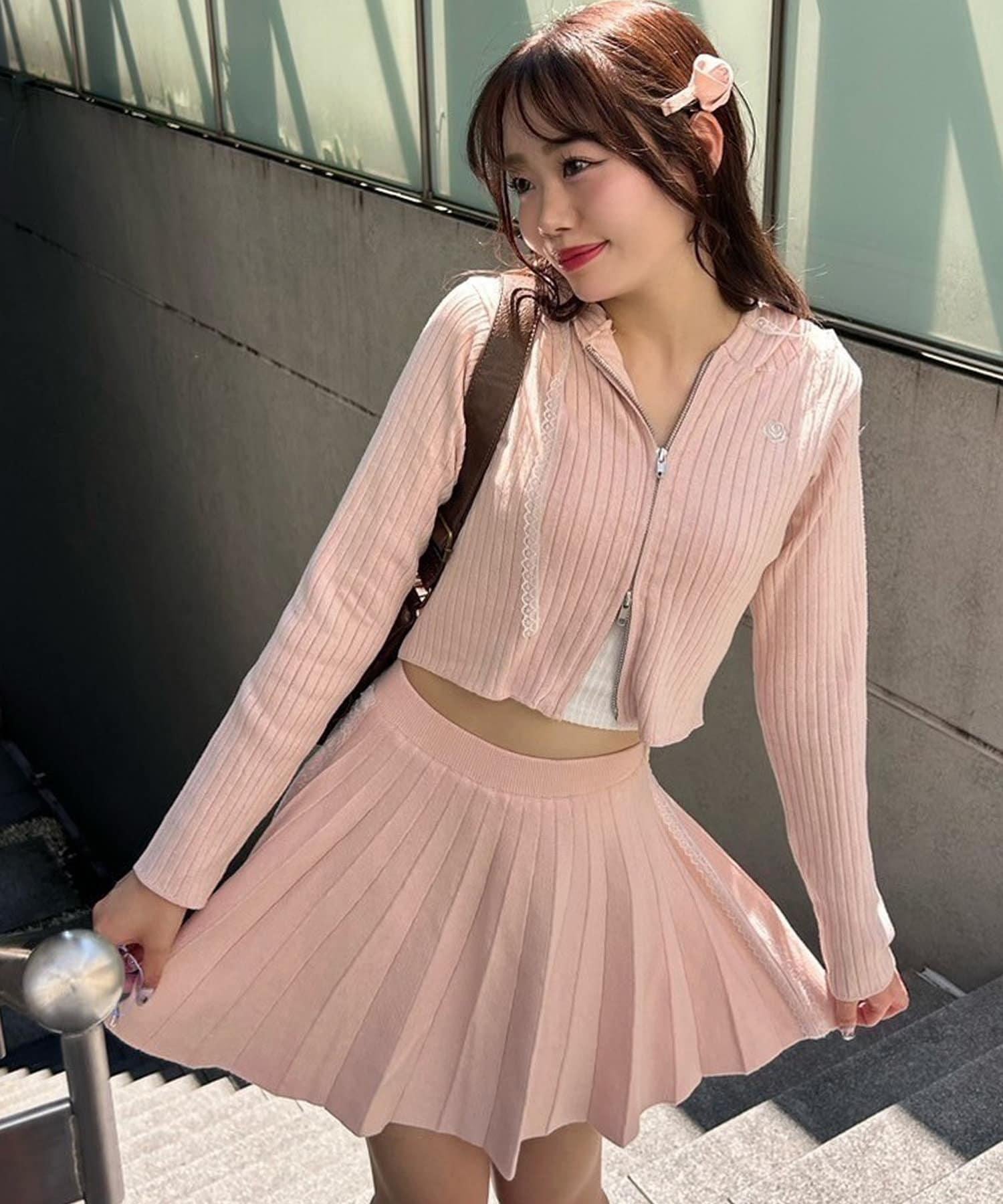 連帽繩部分和裙子側面的蕾絲花邊給人帥氣的少女印象。