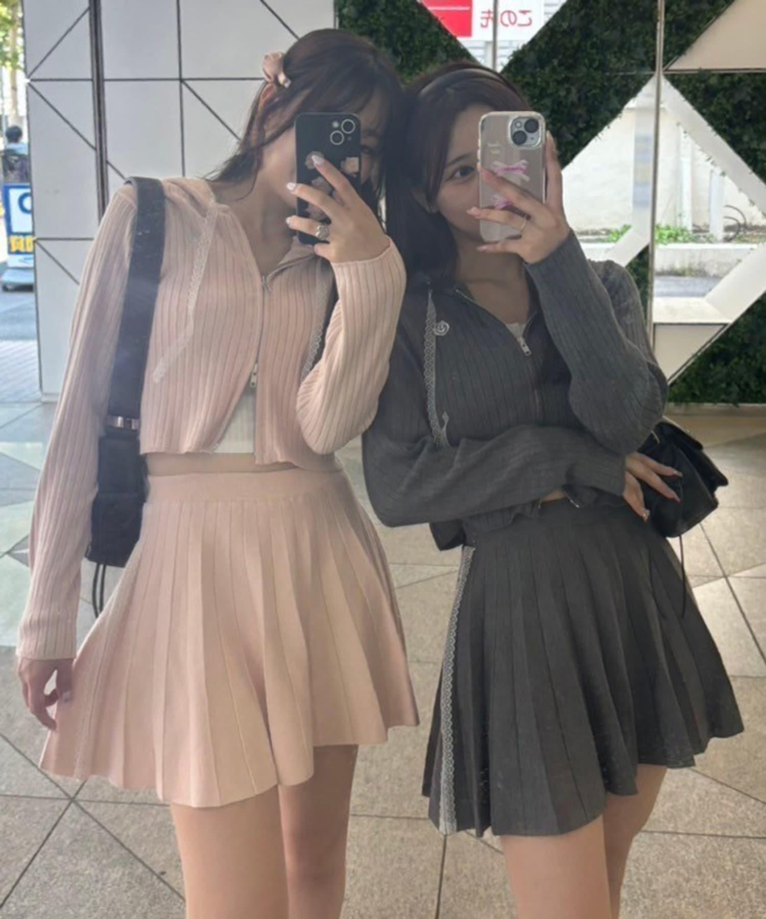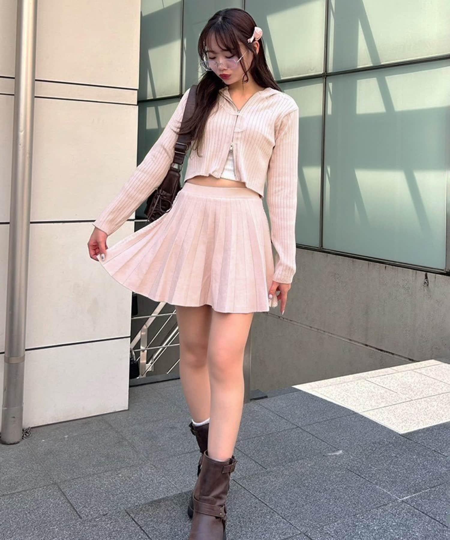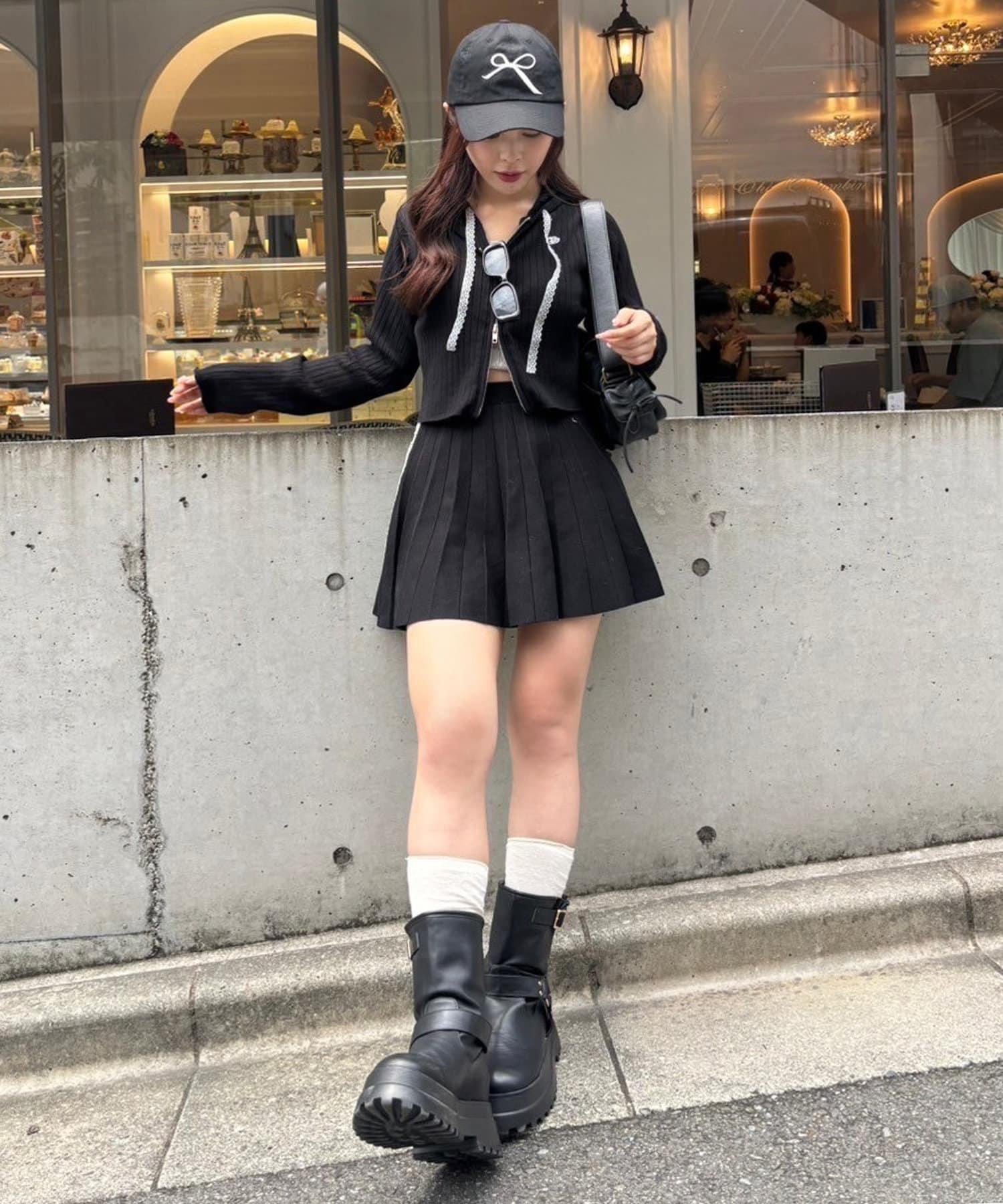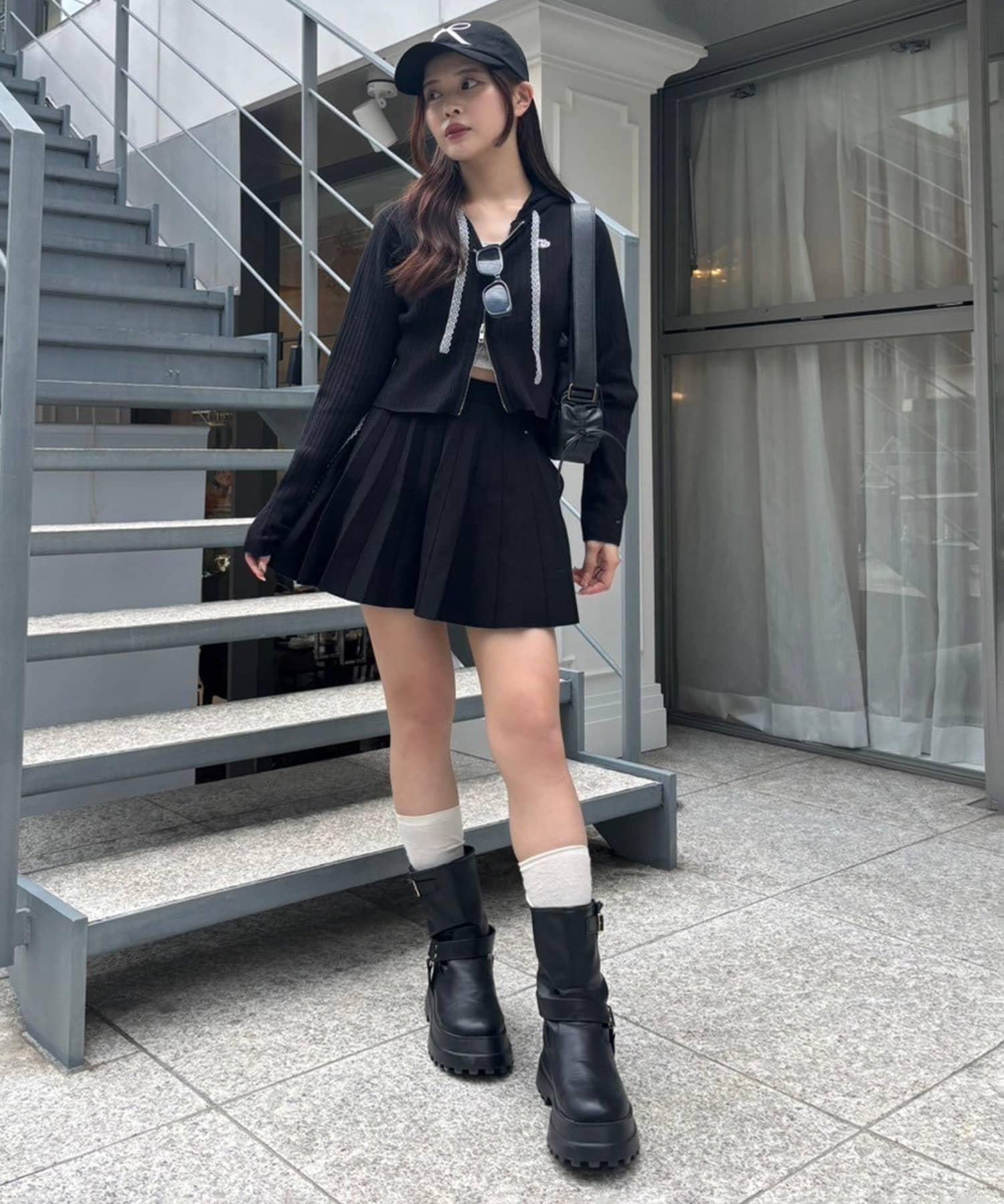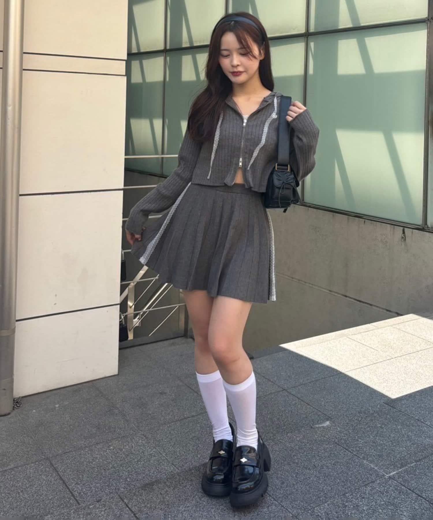 連帽繩部分和裙子側面的蕾絲花邊給人帥氣的少女印象。