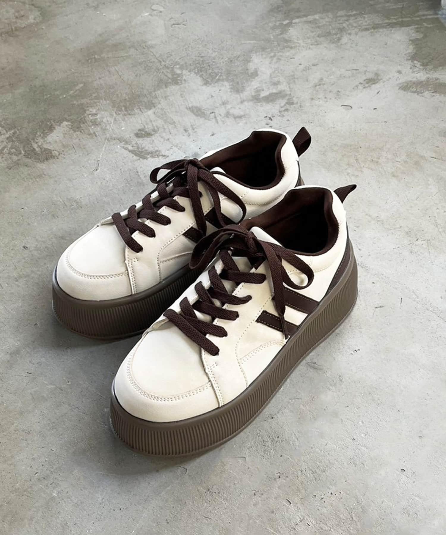 一雙鞋底厚實、設計動感的時尚鞋款。