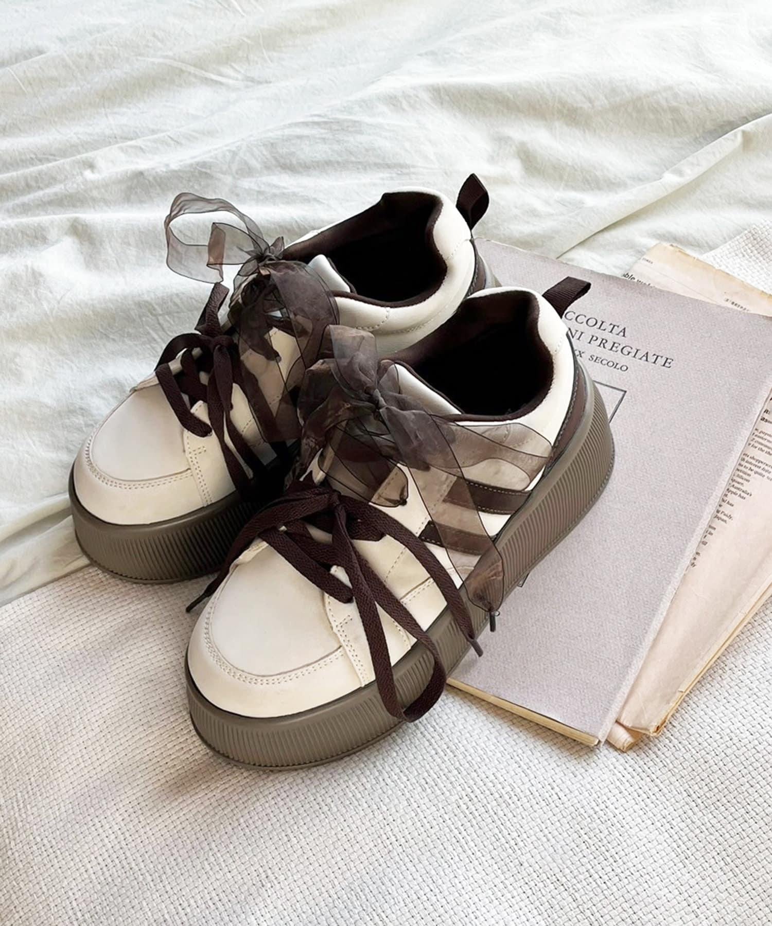 套裝配有鞋帶和絲帶,您可以根據自己的心情改變繫鞋帶的方式。