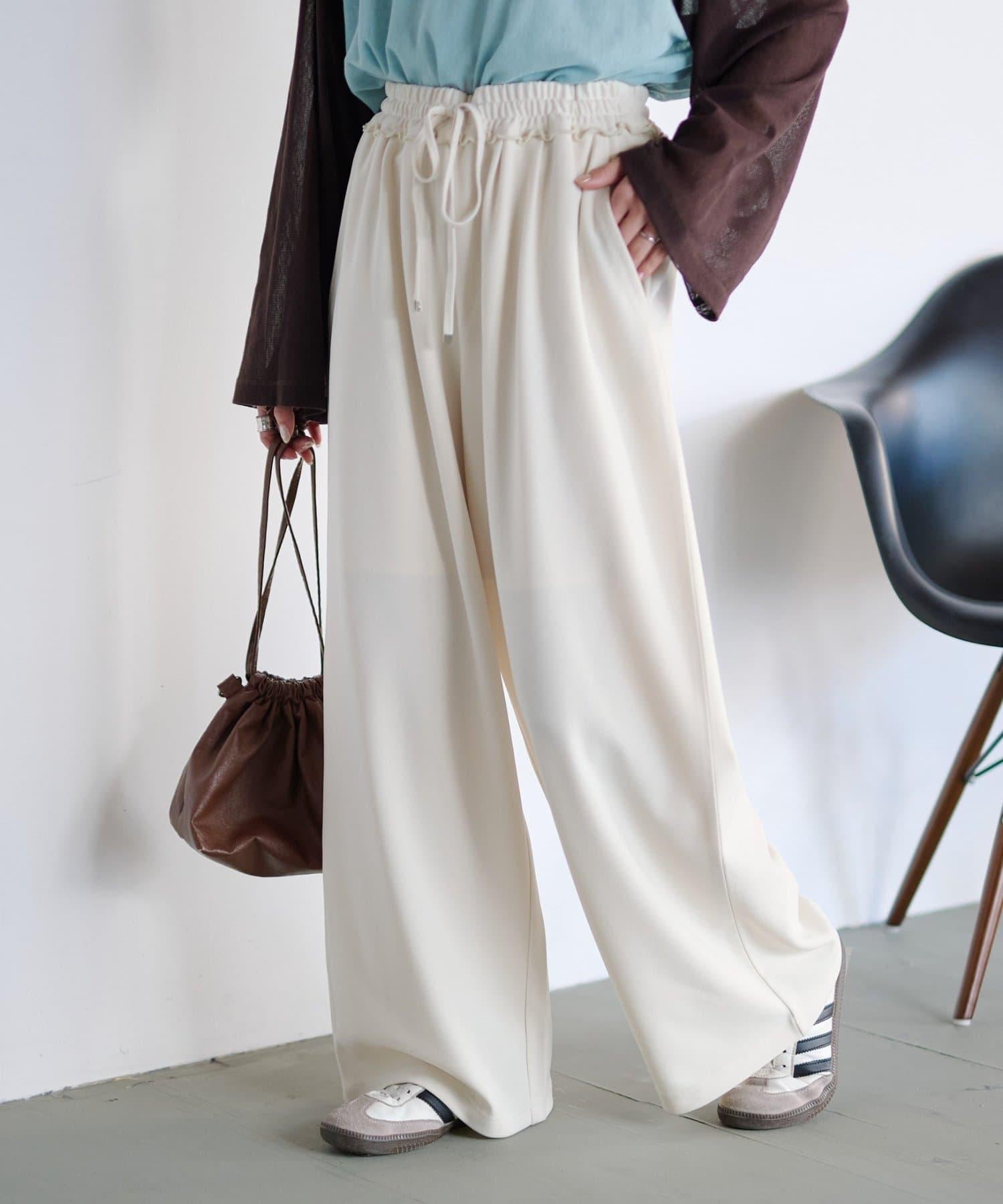 可通過繫帶調節的鬆緊腰身,寬大的細節設計可避免腿部線條的突顯。
