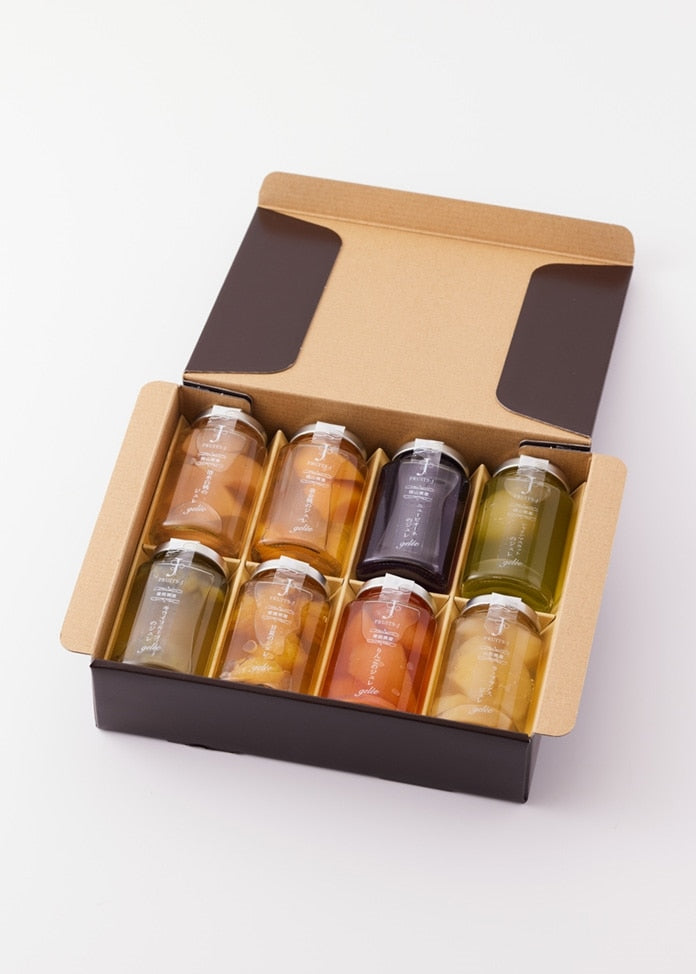 含量或固體含量及總量 水果凍110克×8種(清水白桃、金桃、新先鋒、Shine Muscat、奇異果、甜夏果、蘋果、La France) 。