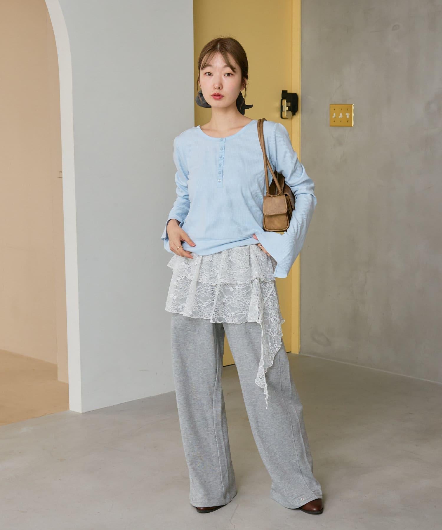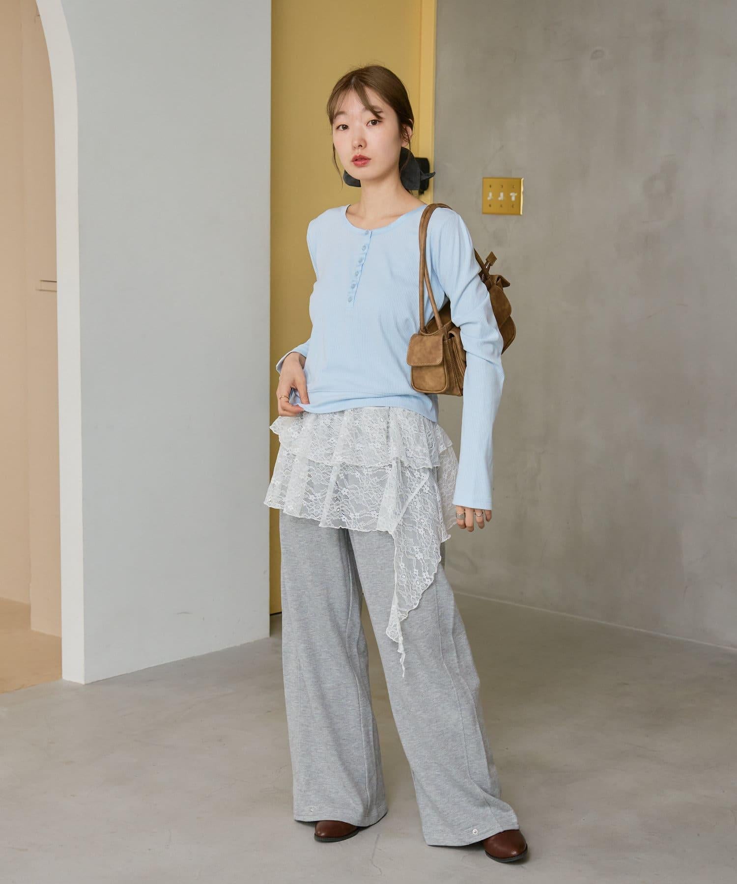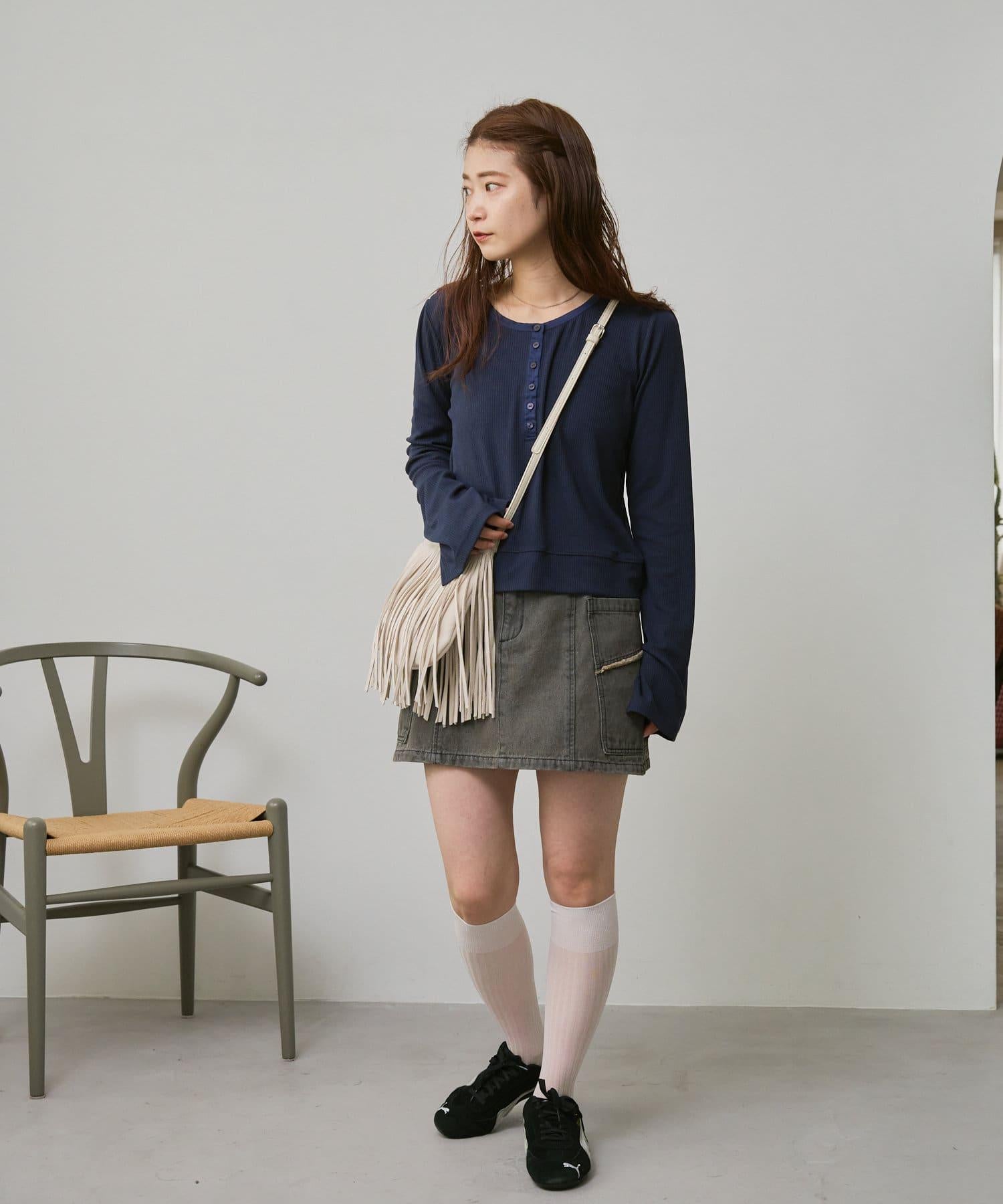 在牛仔褲或運動褲上疊加褶邊迷你裙,打造簡約而精緻的造型,盡顯女性的寬鬆感。