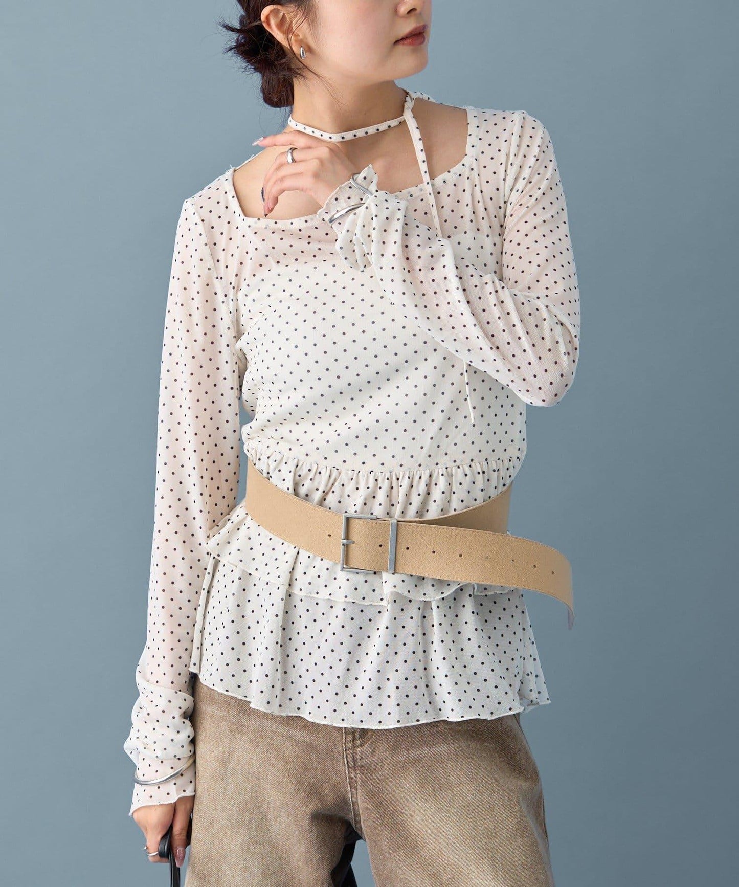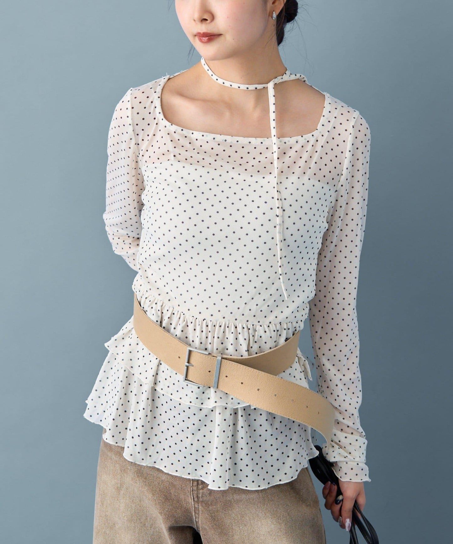 薄紗材質的透明感在點狀圖案的可愛中表現出女性的柔美。