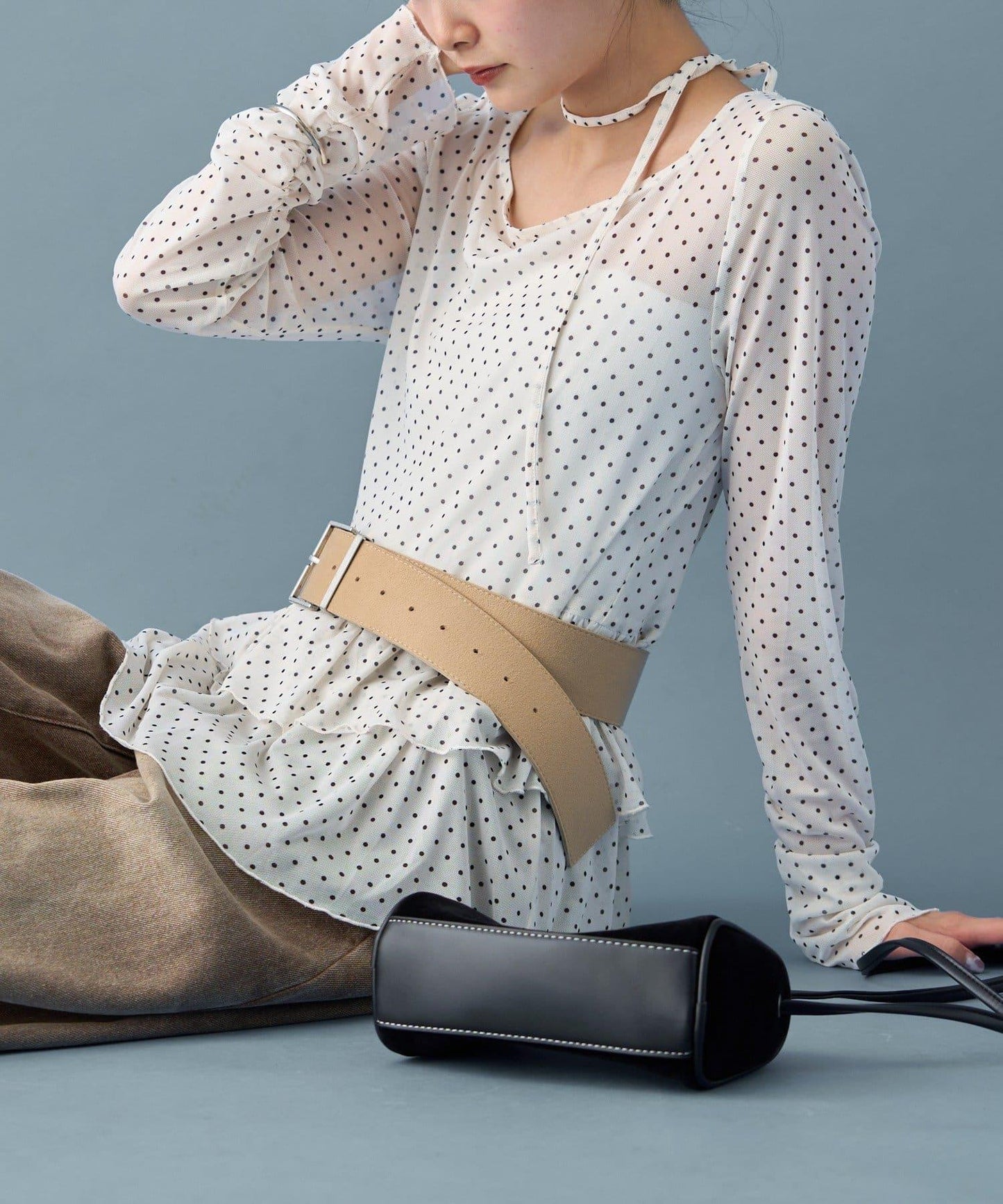 在層疊設計的切換部分系上腰帶,也是一種可愛的點綴。