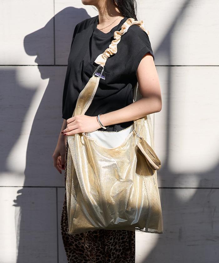 這款手袋可根據場合和心情以多種方式使用,既可將網袋和普通手提袋疊放在一起使用,也可單獨使用網袋。