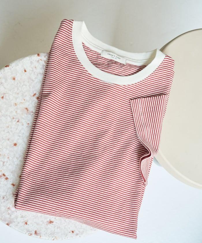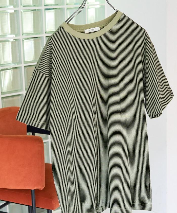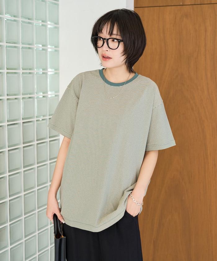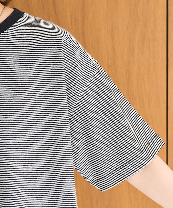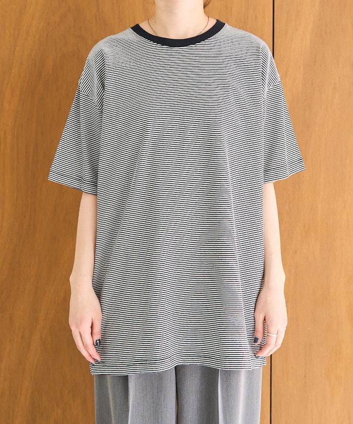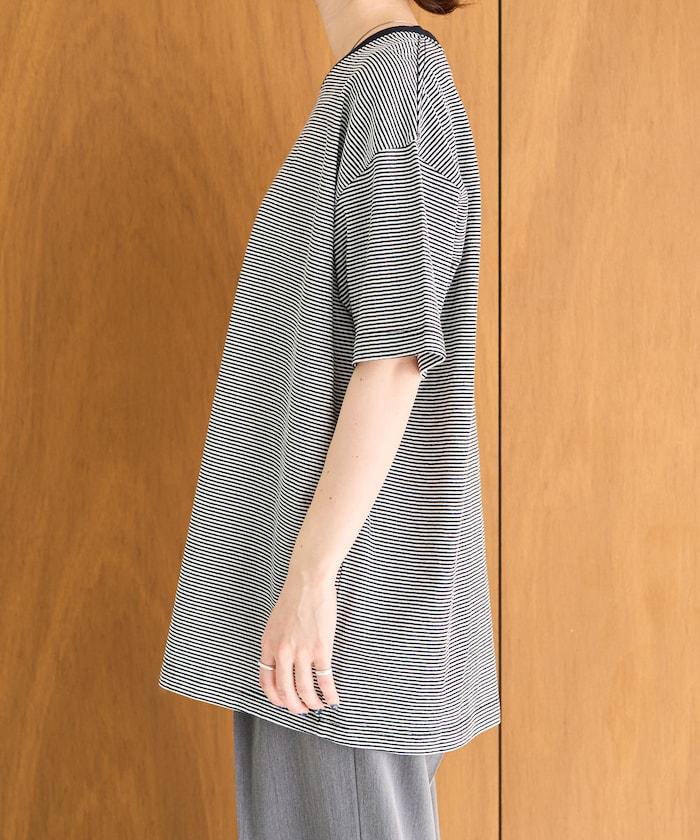 大尺寸剪裁 顏色 細條紋 短袖 T恤