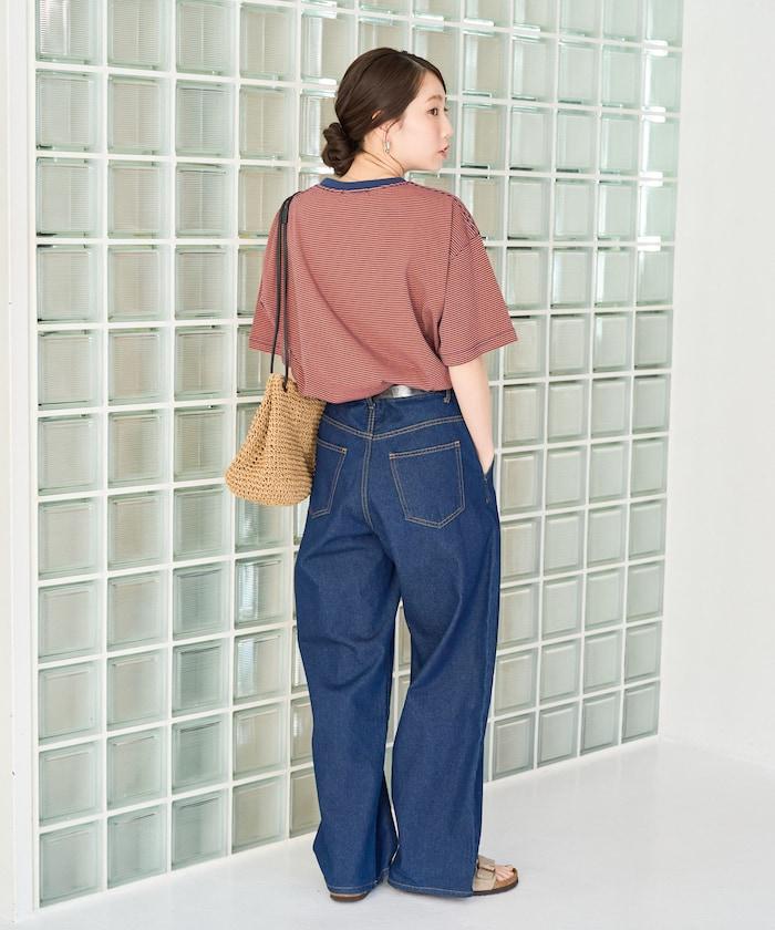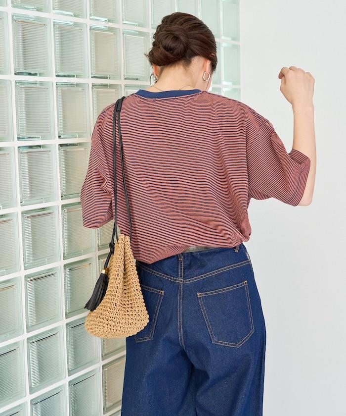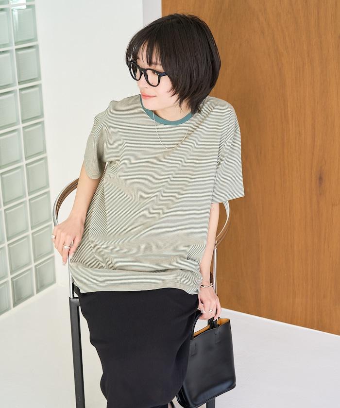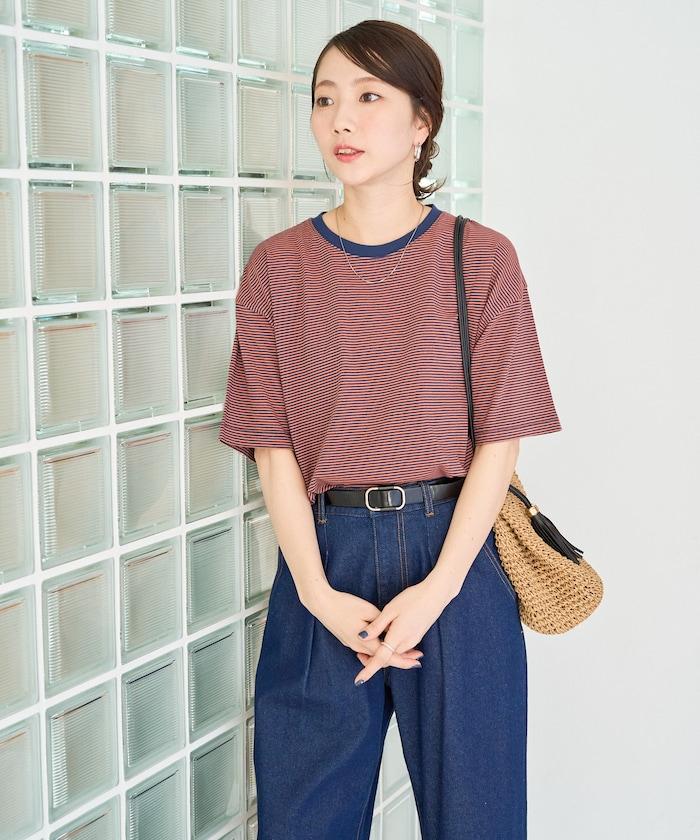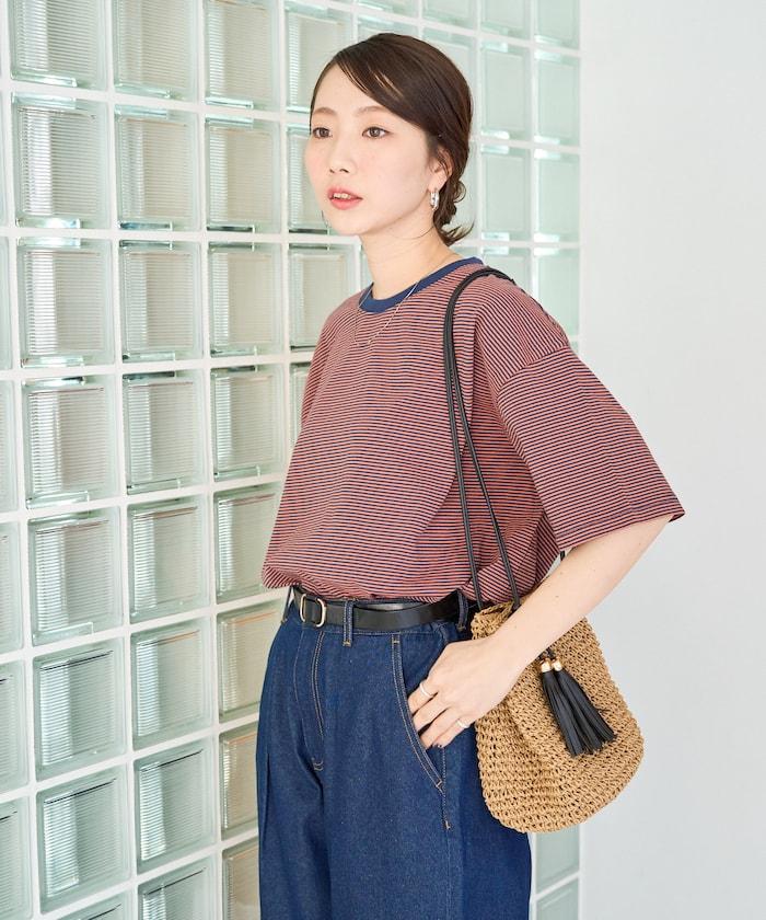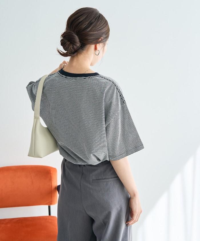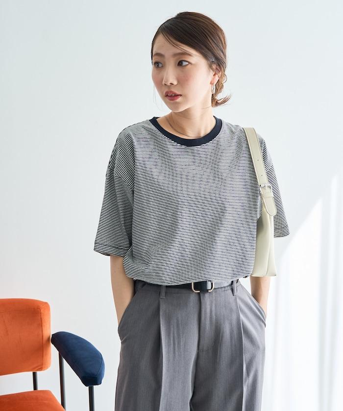 大尺寸剪裁 顏色 細條紋 短袖 T恤