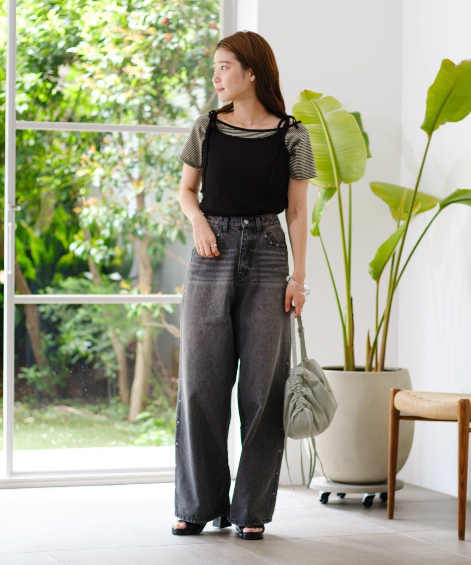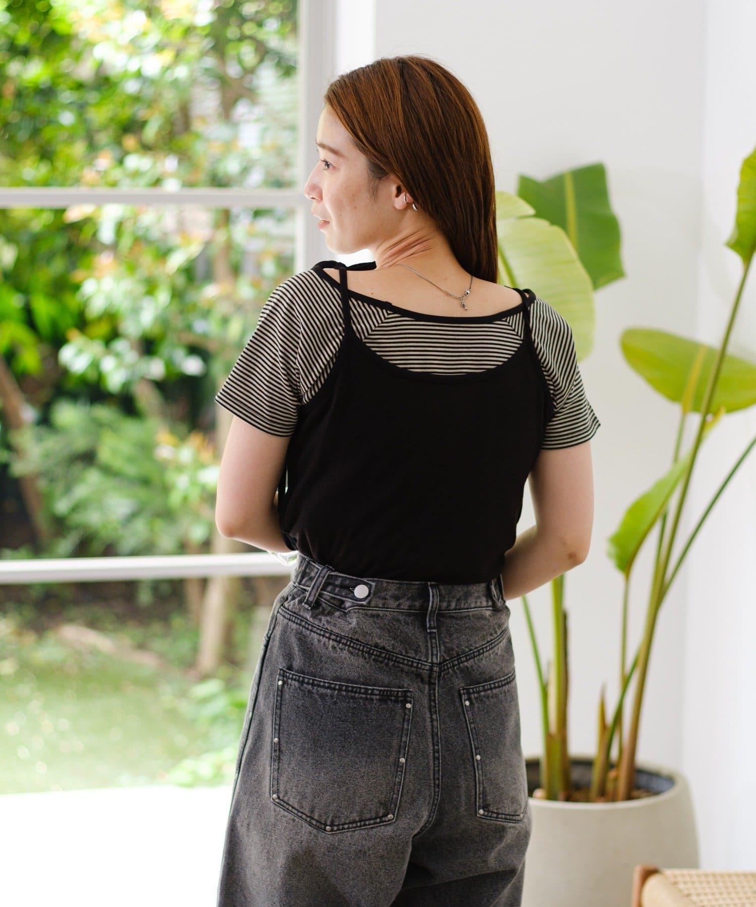 面料:(T恤)55% 棉,45% 聚酯,(吊帶衫)68% 聚酯,27% 人造絲,5% 聚氨酯