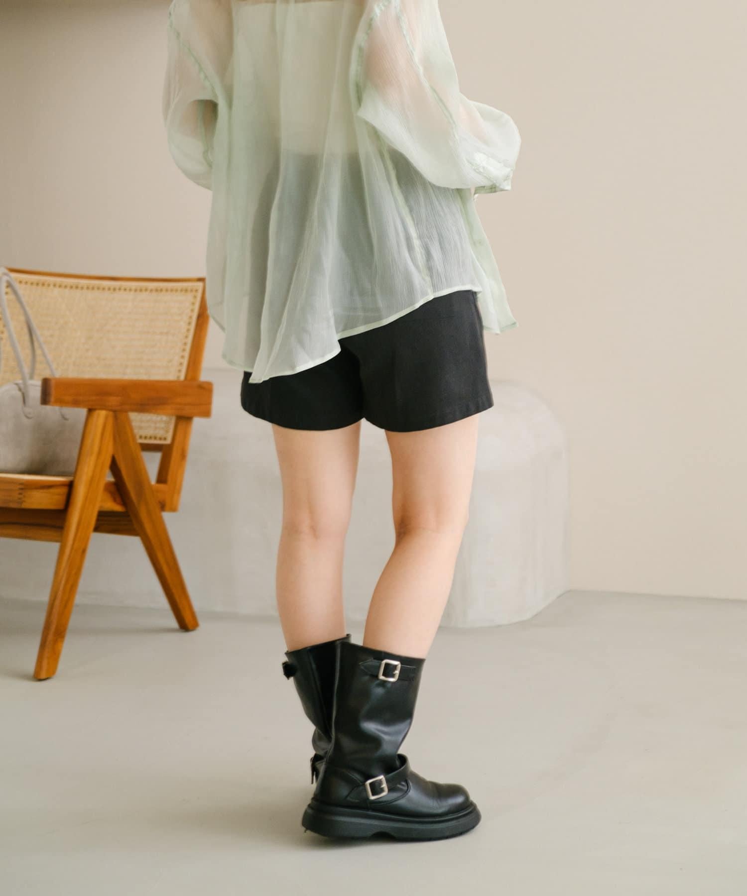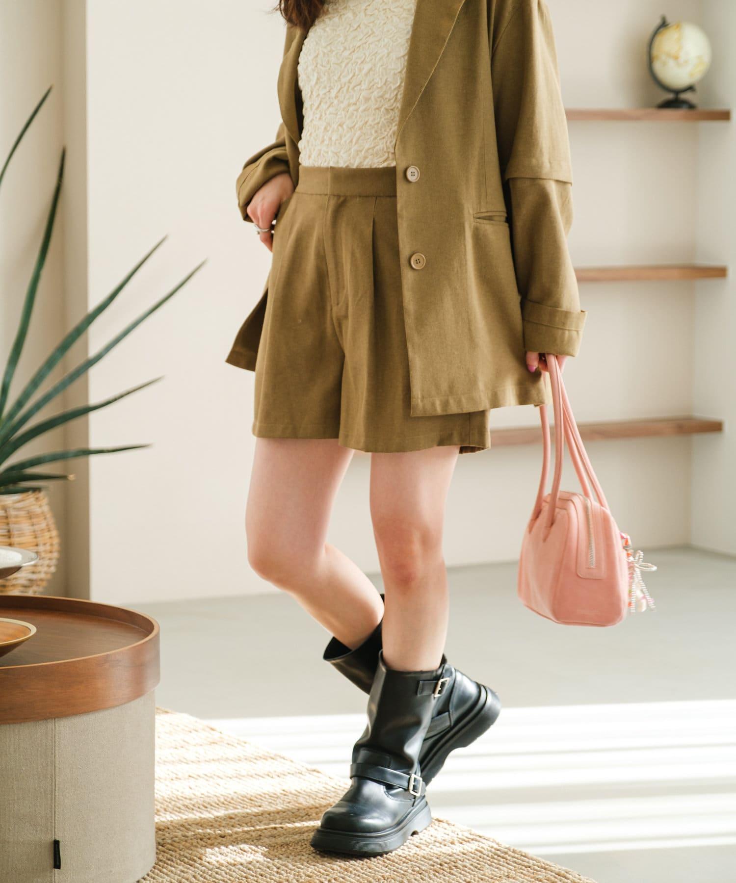 腰部內收,高腰設計起到很好的拉長腿部線條的效果。