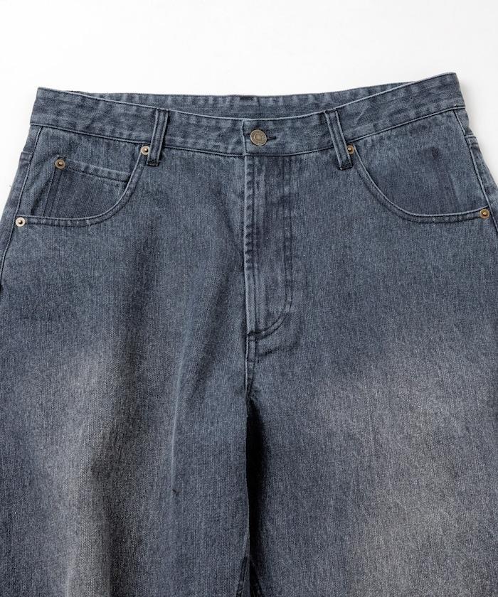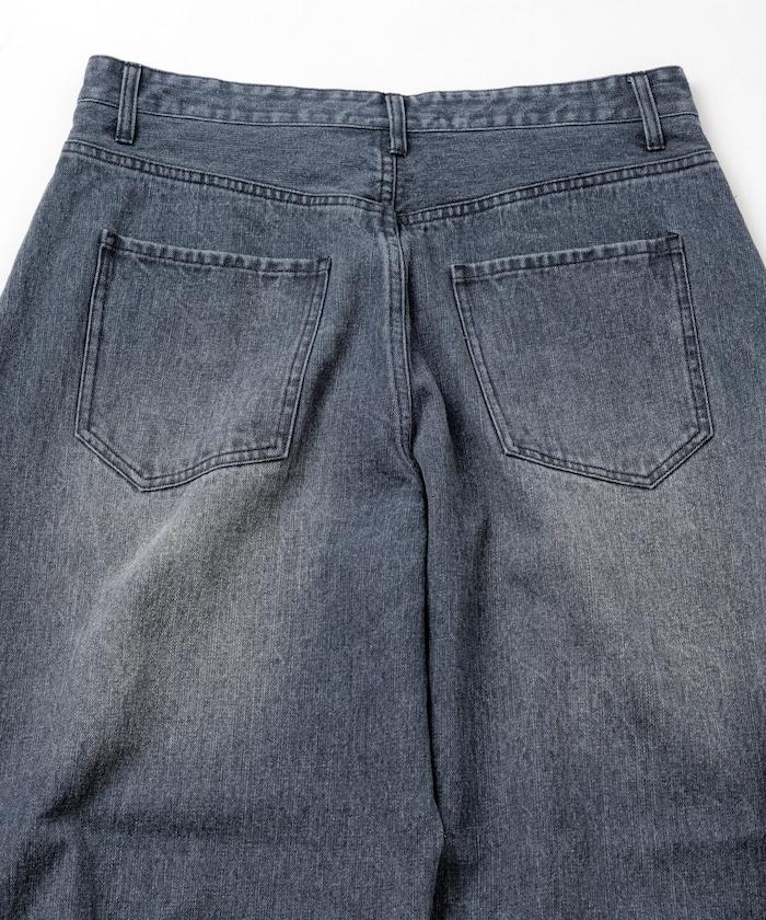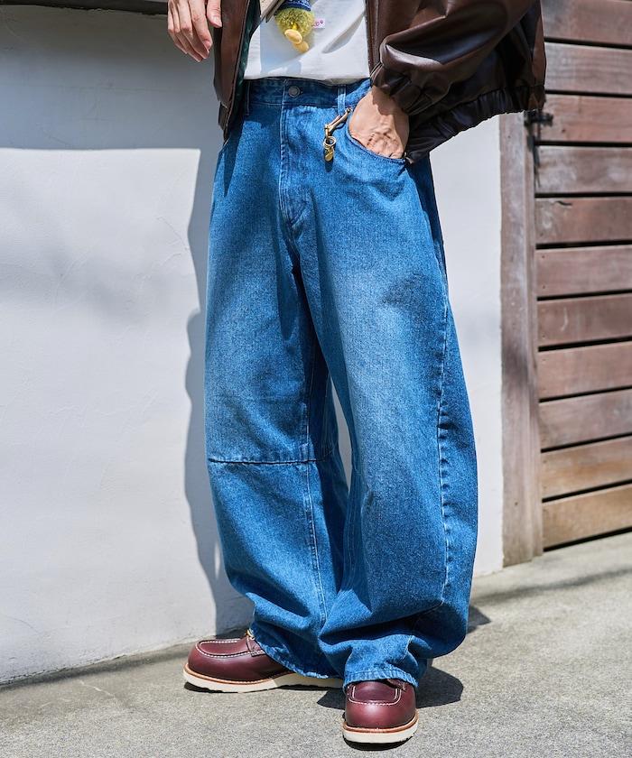 寬鬆版型弧形牛仔褲 單次水洗