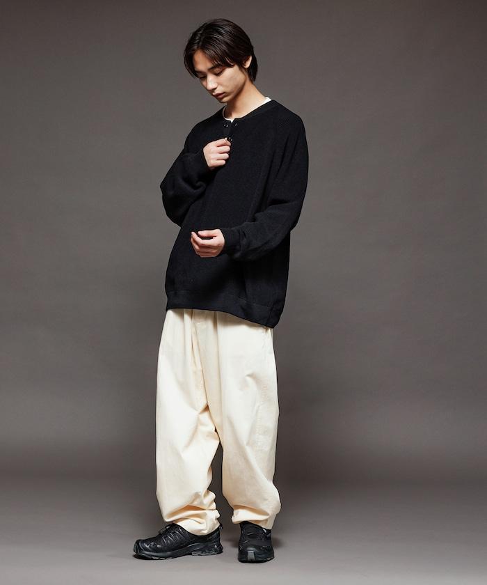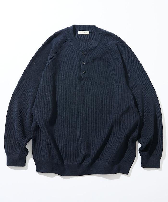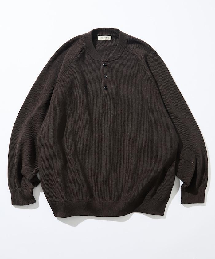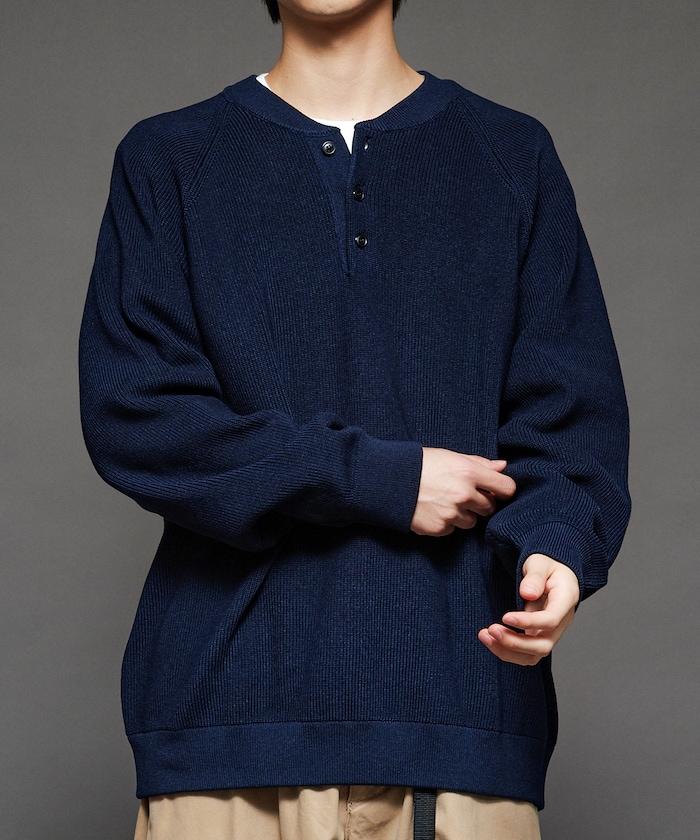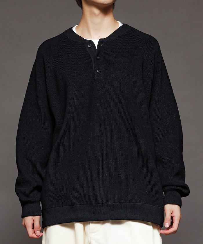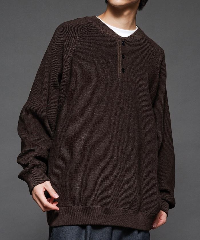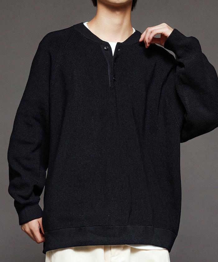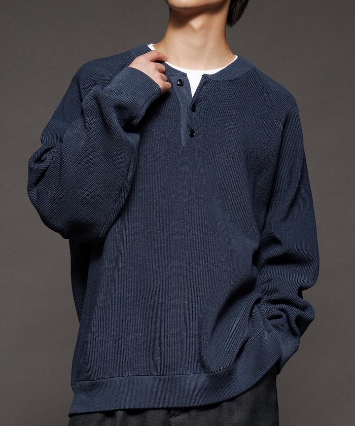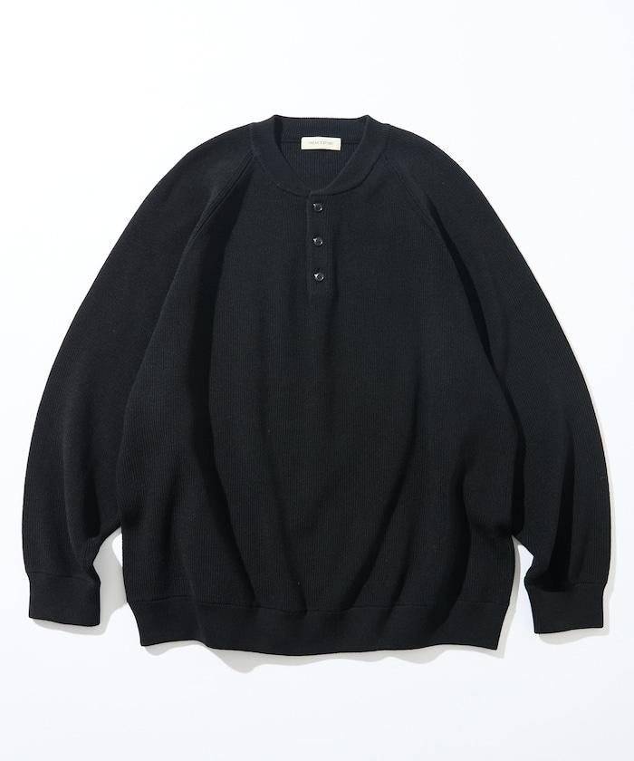 寬鬆版型 Henley 領針織衫,採用單針床針織技術