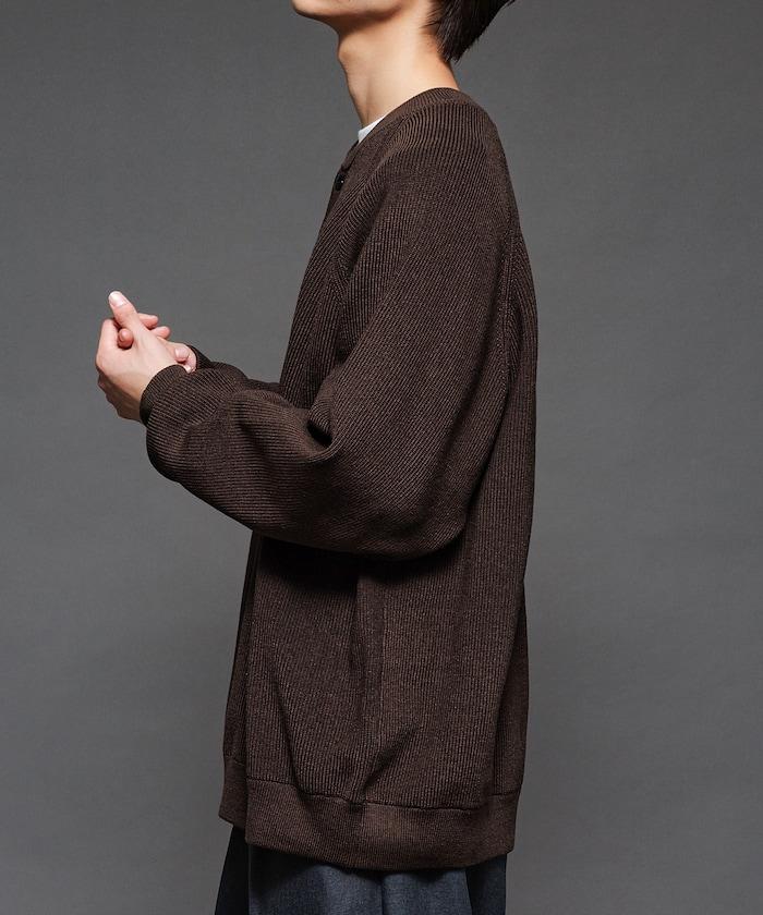 寬鬆版型 單面羅紋編織 亨利領 針織衫