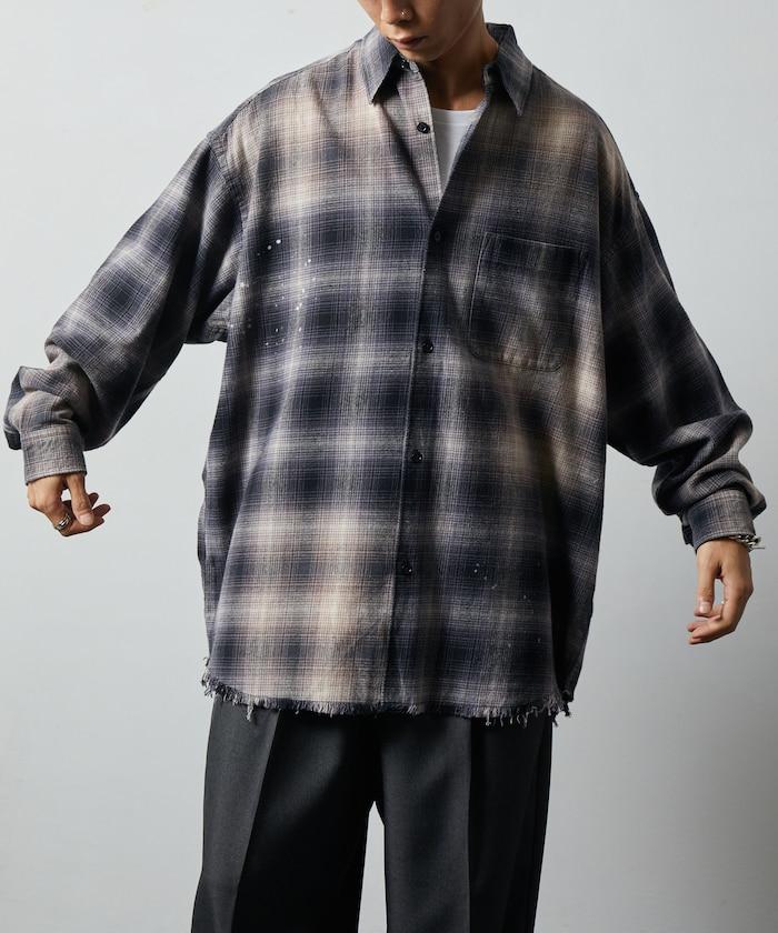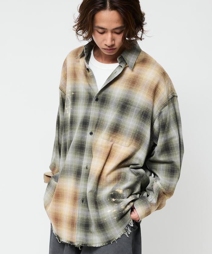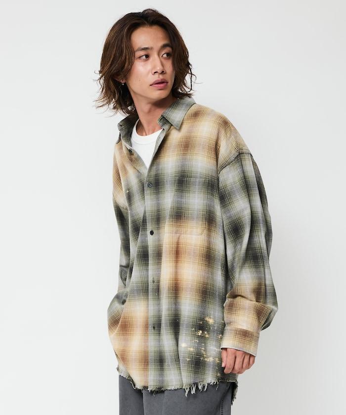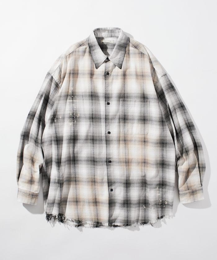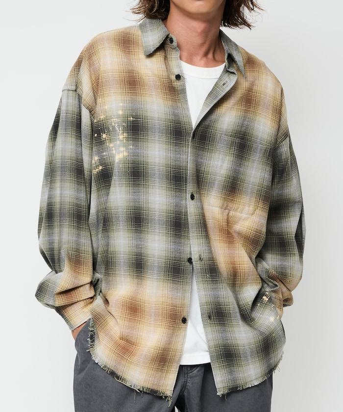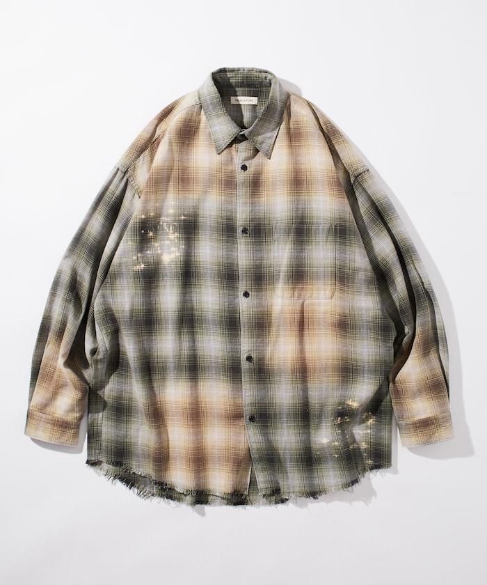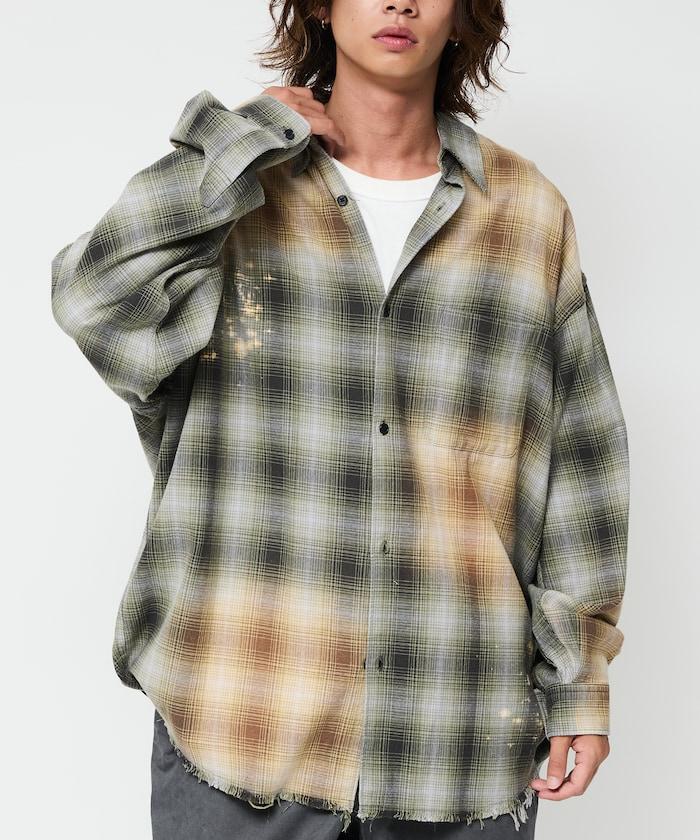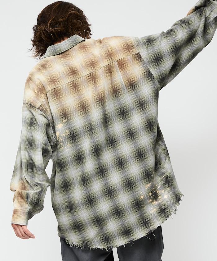寬鬆版型 漂白工藝 漸變格紋 法蘭絨襯衫