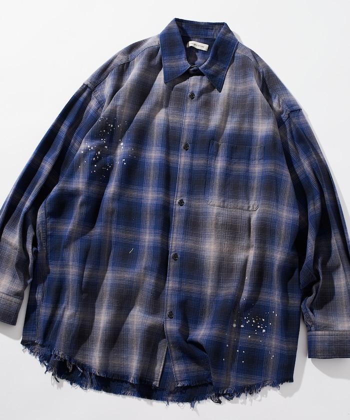 寬鬆版型漂白混色格子襯衫