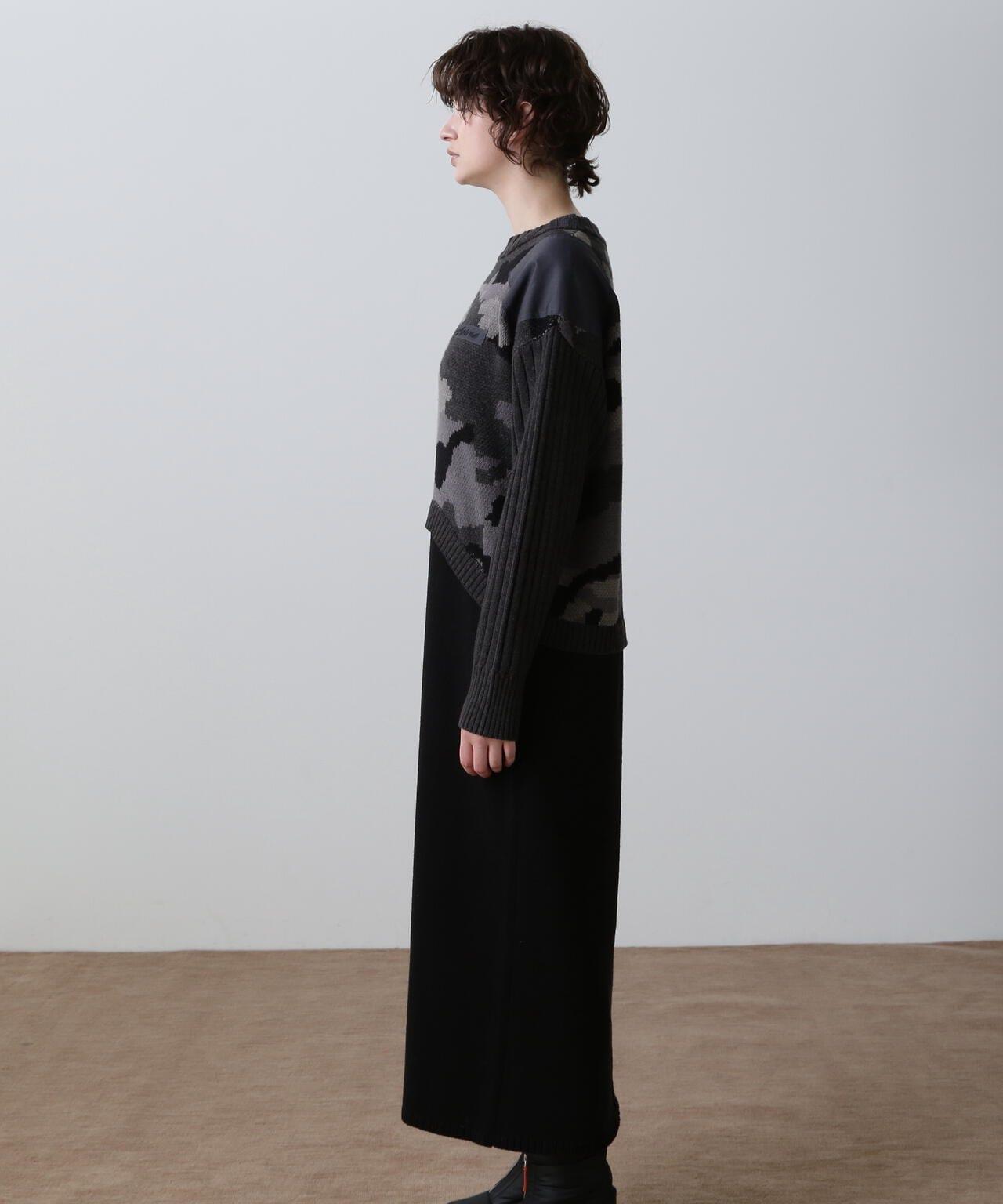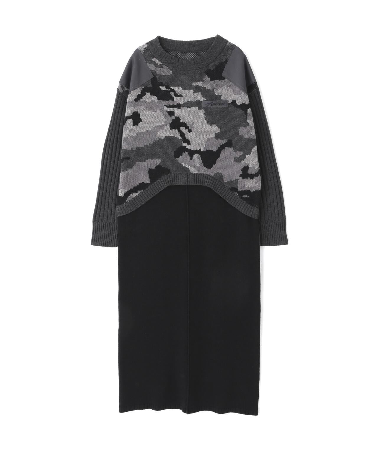2023AUTUMN&WINTER 單品層疊設計連衣裙,針織連衣裙採用層疊式設計,黑色和芥末色混搭迷彩圖案,具有酷酷的軍裝風格氣息,尤其是裙襬部分的廓形非常流暢。尤其是裙襬部分採用了簡潔的廓形處理,讓你的身體線條更加優美。相關商品7833240604:土鱉蟲針織上衣[AVIREX Belle] 該系列將純正軍裝的功能性和設計感投射到女性休閒裝上。作為一個具有個性和永恆性的女裝品牌,它為聰慧、自由、好奇、端莊、活潑的成年職業女性提供休閒女裝。