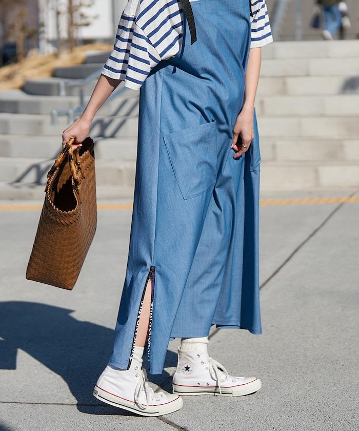 使用 THOUSAND MILE 的高功能性原創材料,從零開始設計的吊帶連身裙。
