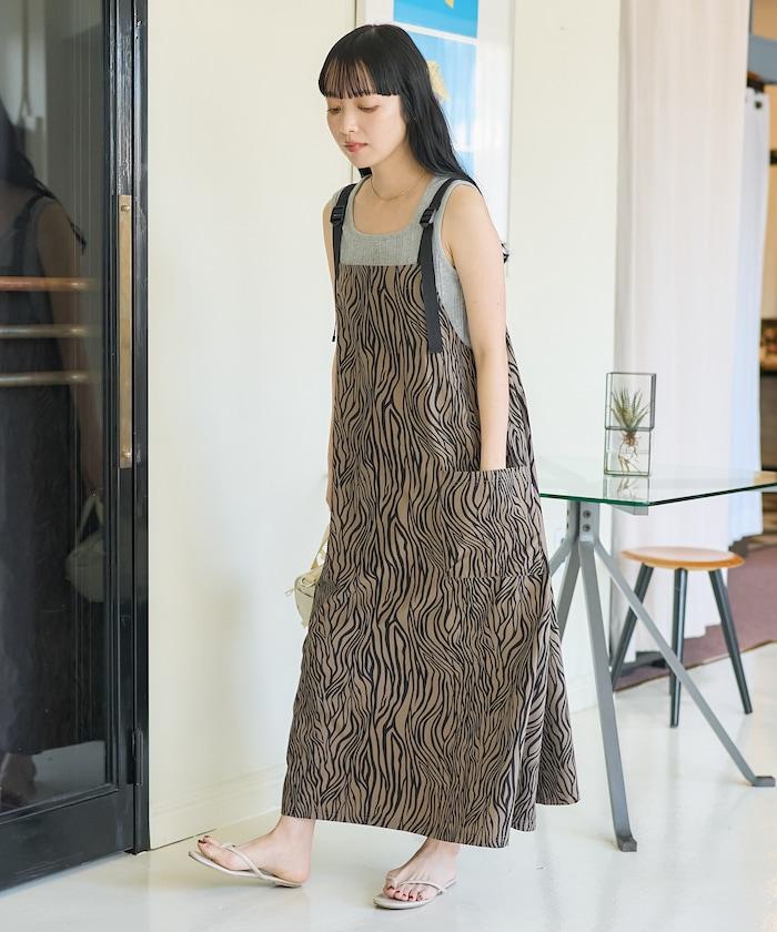 工裝連身裙 / 斑馬紋 / 牛仔風